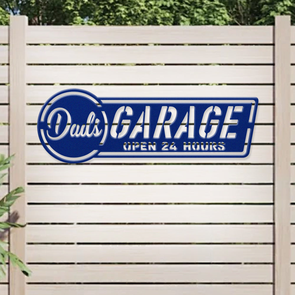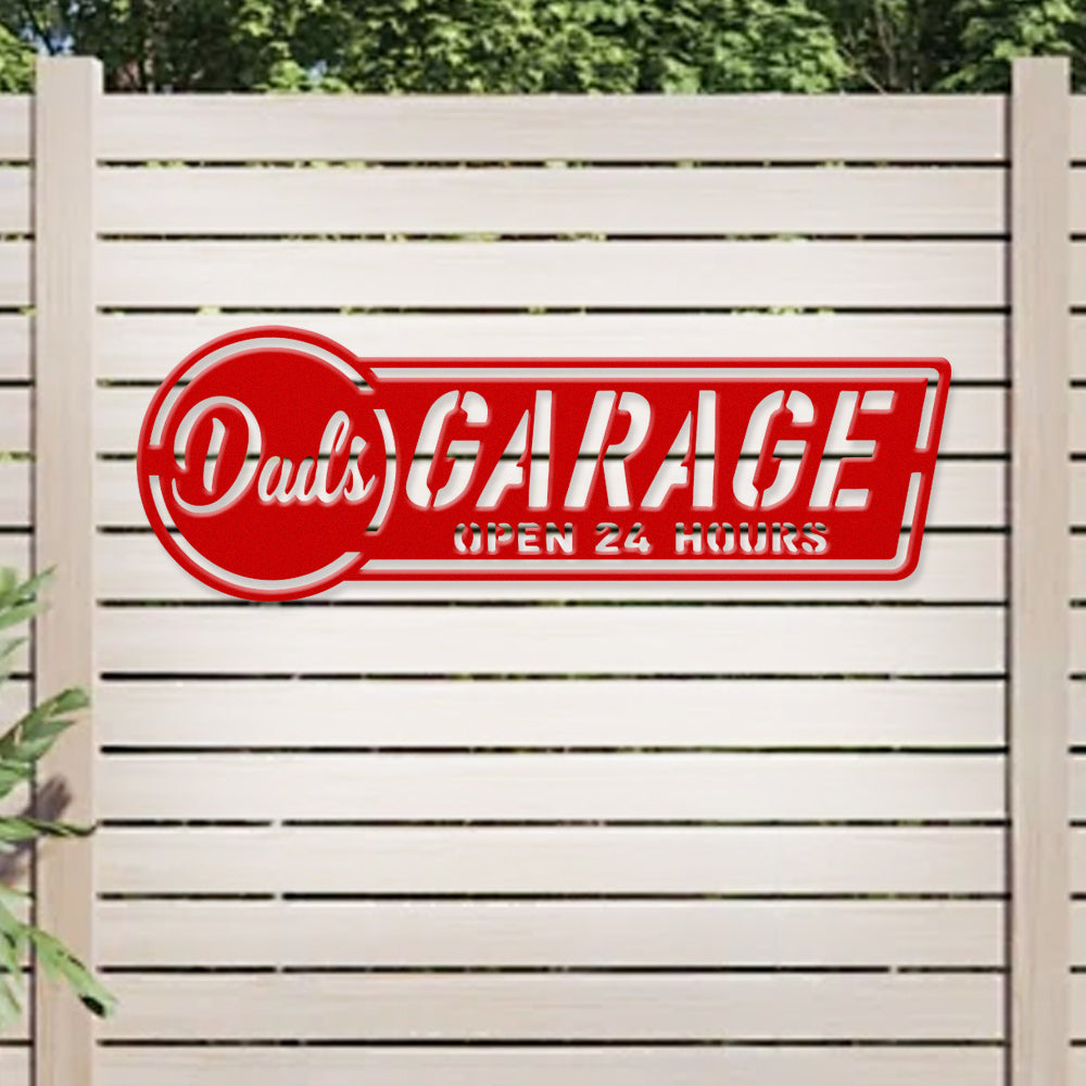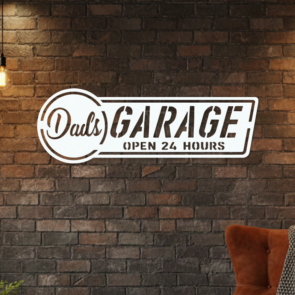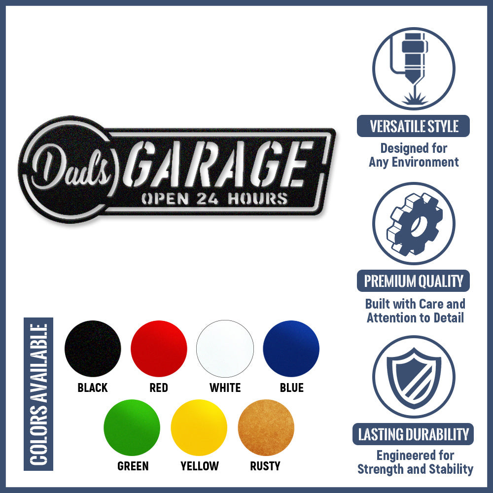Dad’s Garage Metal Wall Art – Open 24 Hours Metal Garage Sign