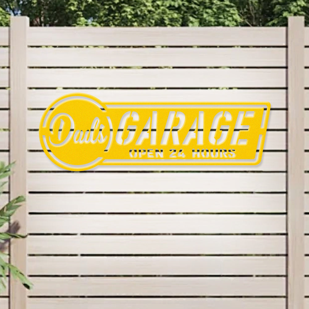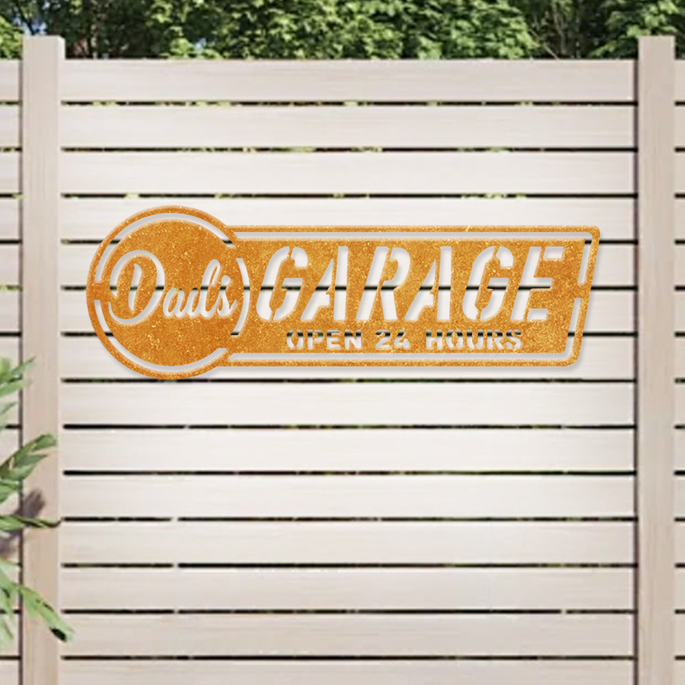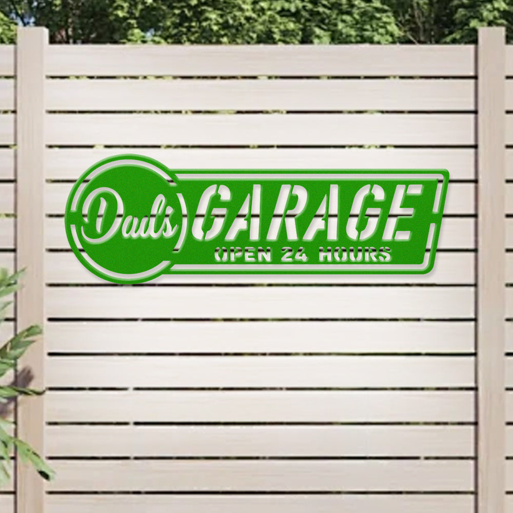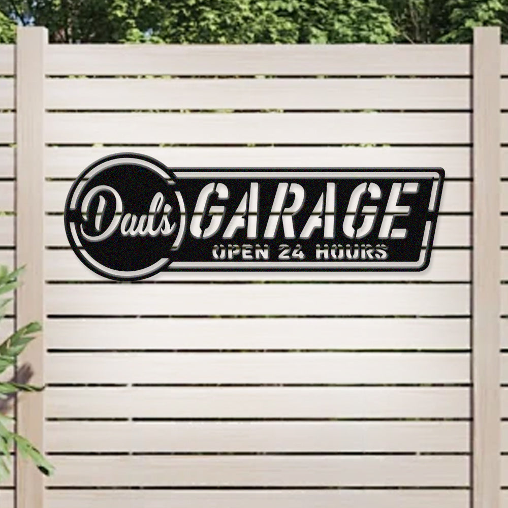 Dad’s Garage Metal Wall Art – Open 24 Hours Metal Garage Sign