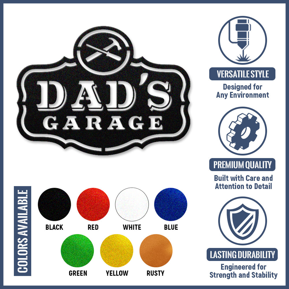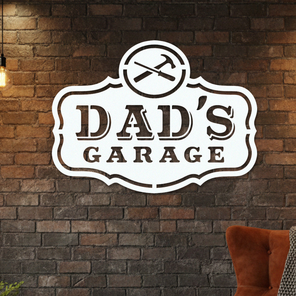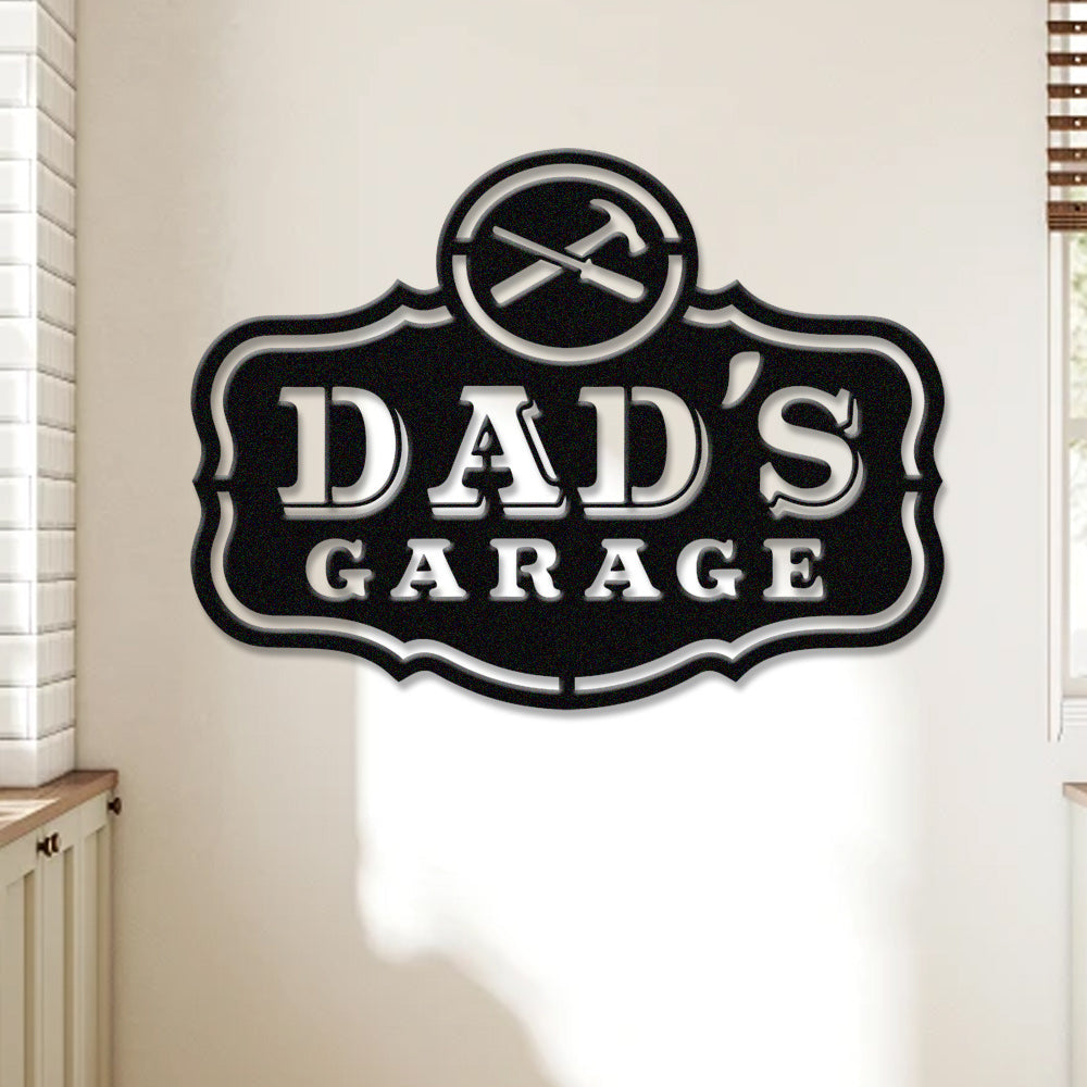 Dad’s Garage Metal Wall Art – Vintage Metal Garage Sign with Tool Design