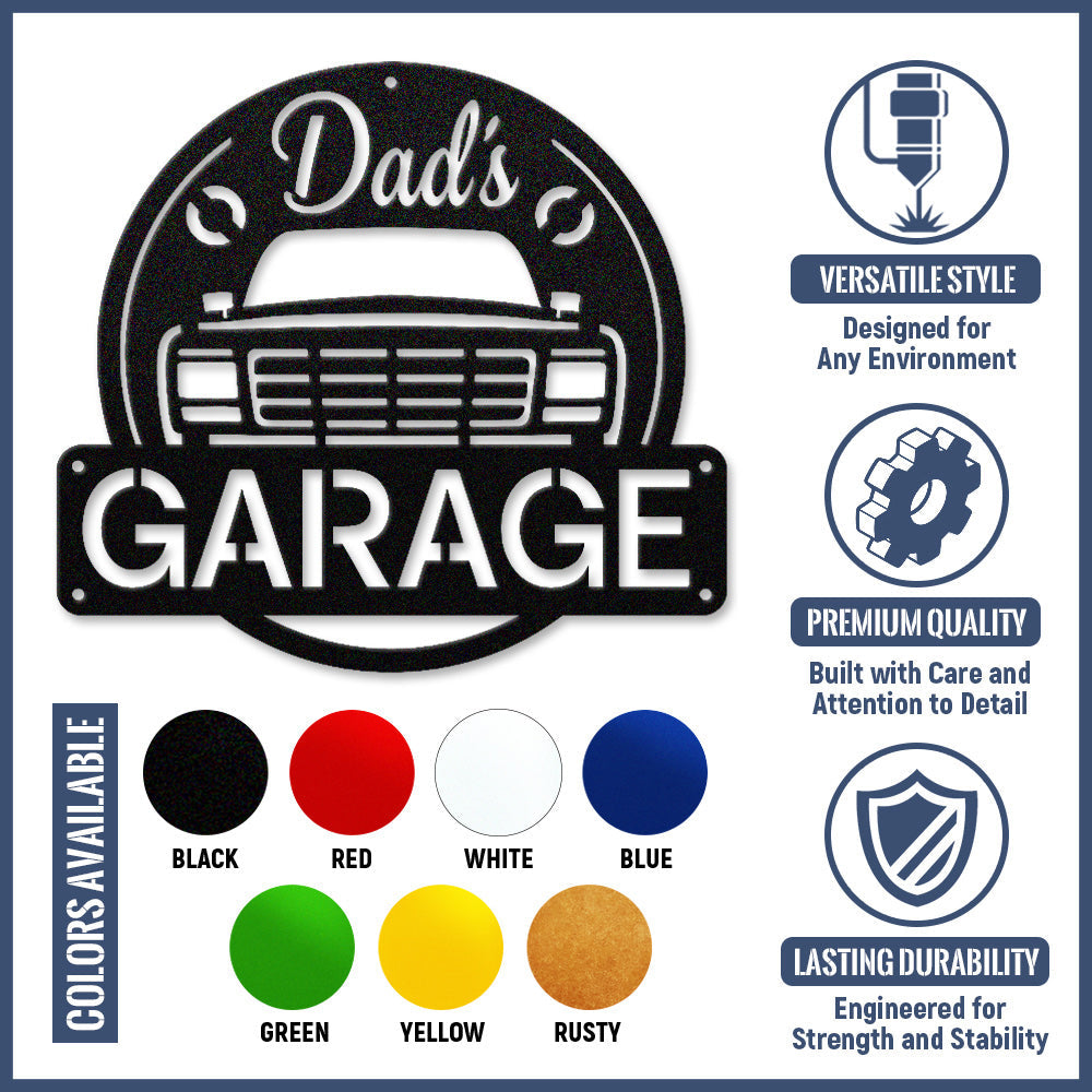 Dad’s Garage Metal Wall Art – Vintage Truck Metal Garage Sign