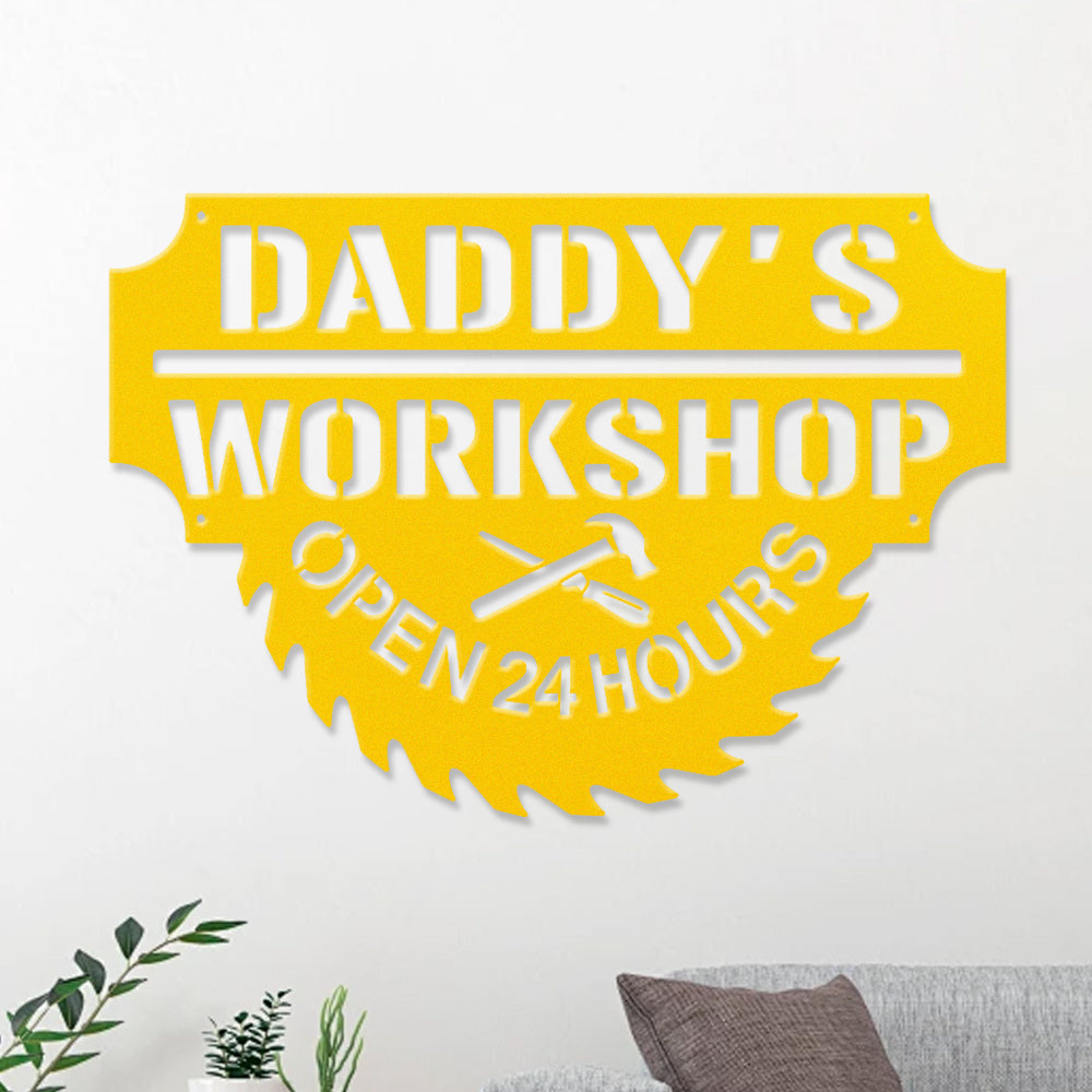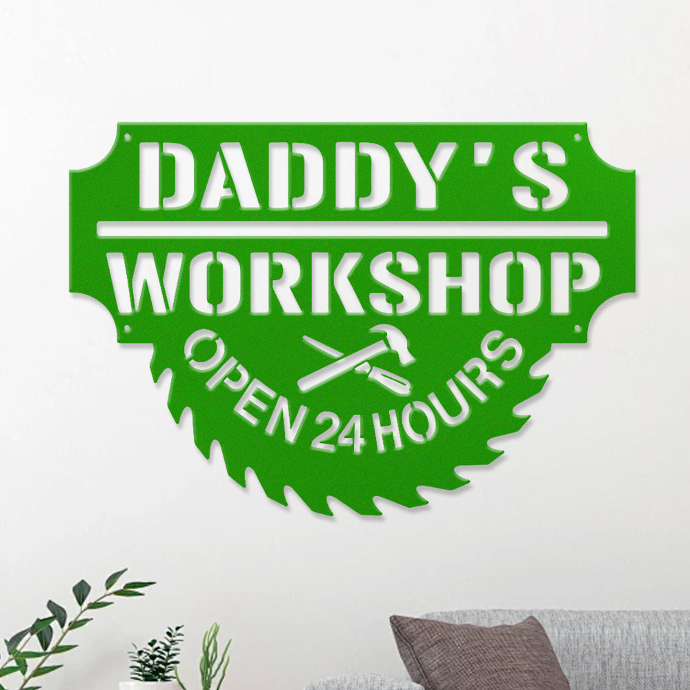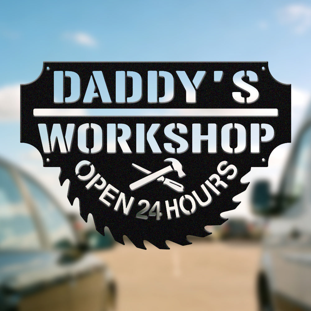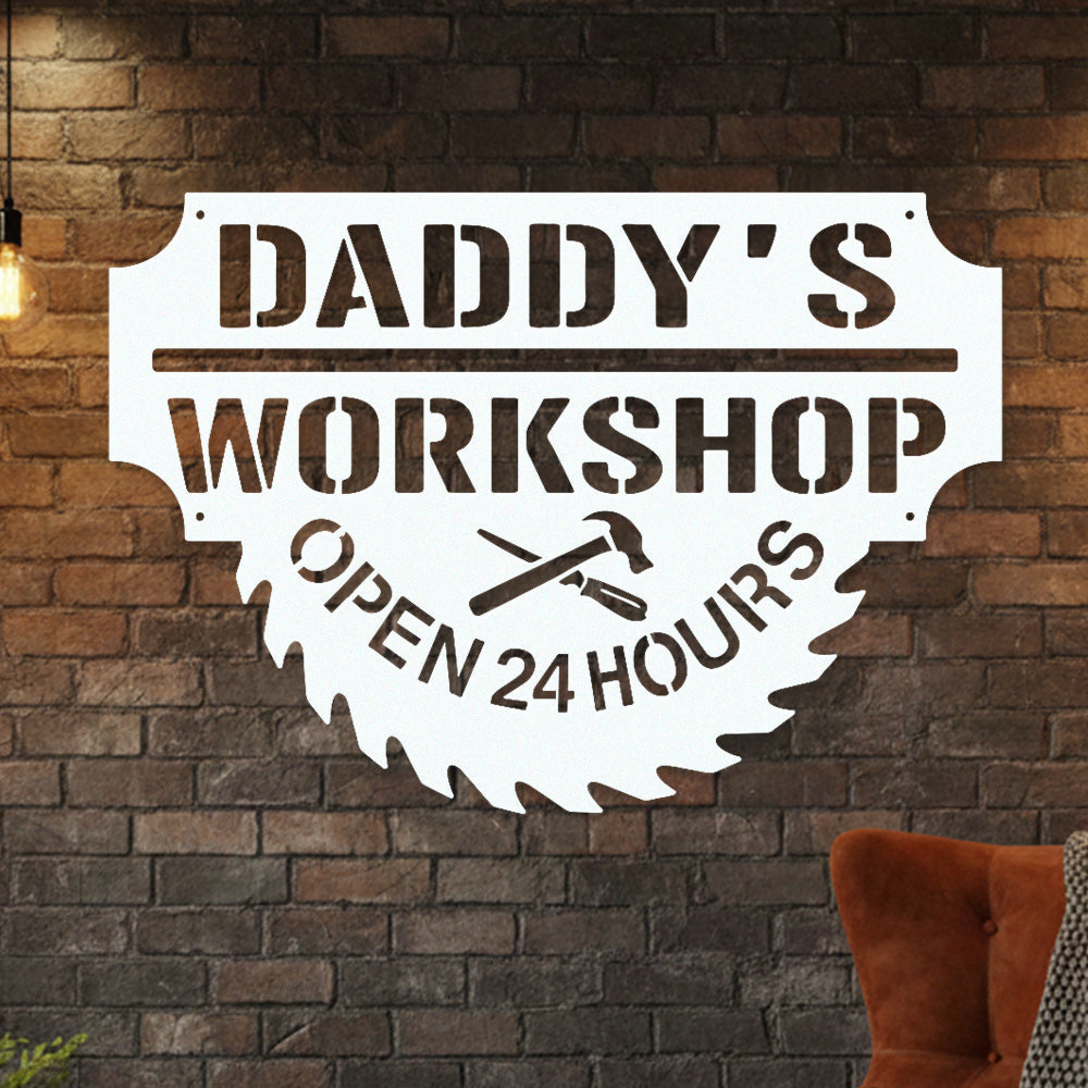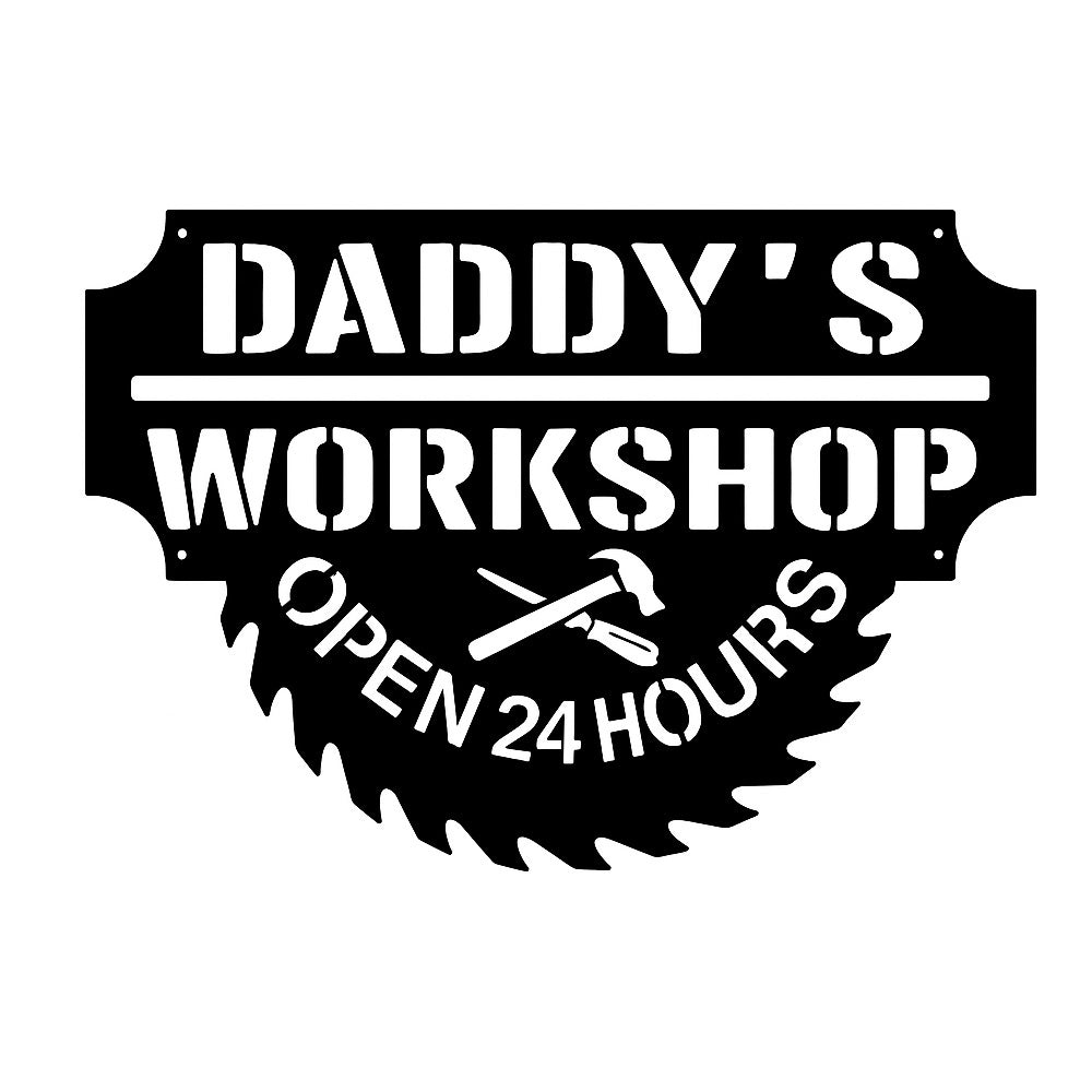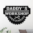 Daddy’s Workshop Metal Wall Art – Saw Blade Style Metal Garage Sign