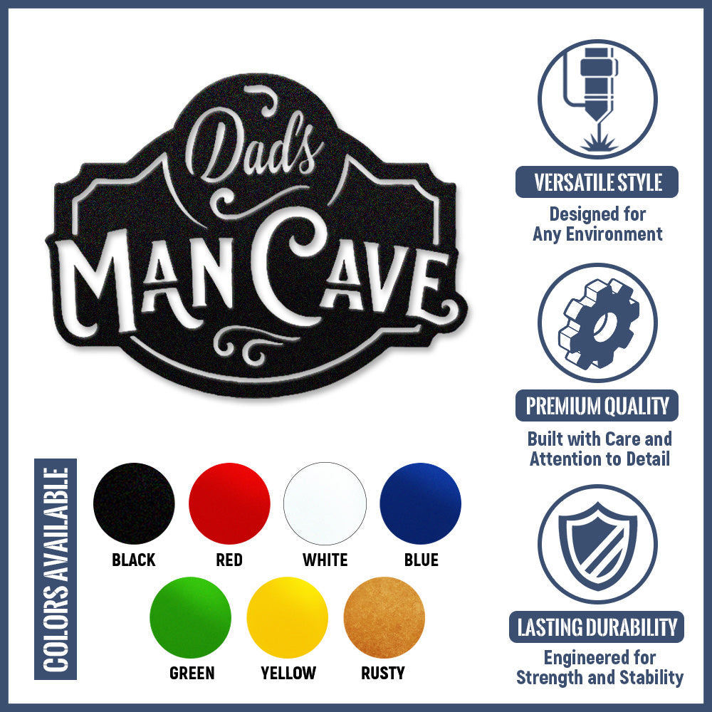 Dads Man Cave Metal Wall Art - Personalized Iron Sign for Father's Day
