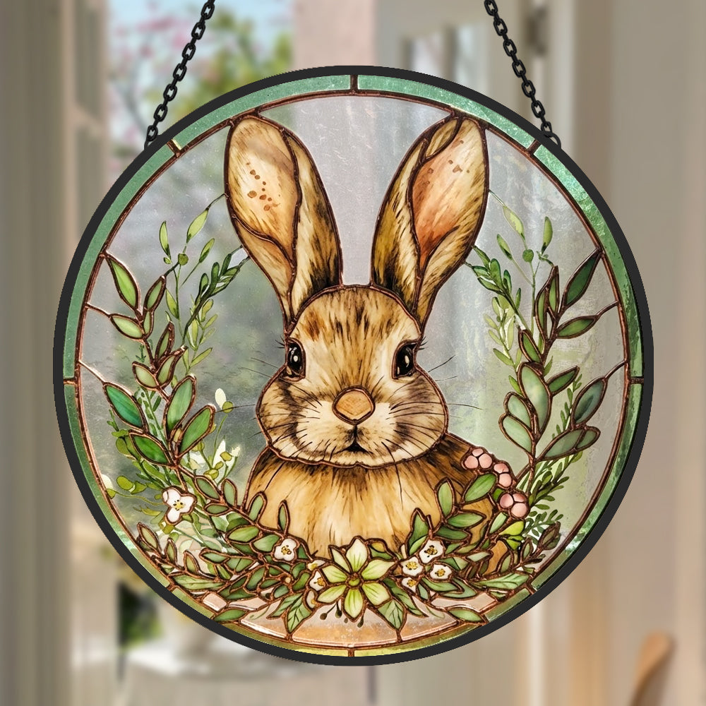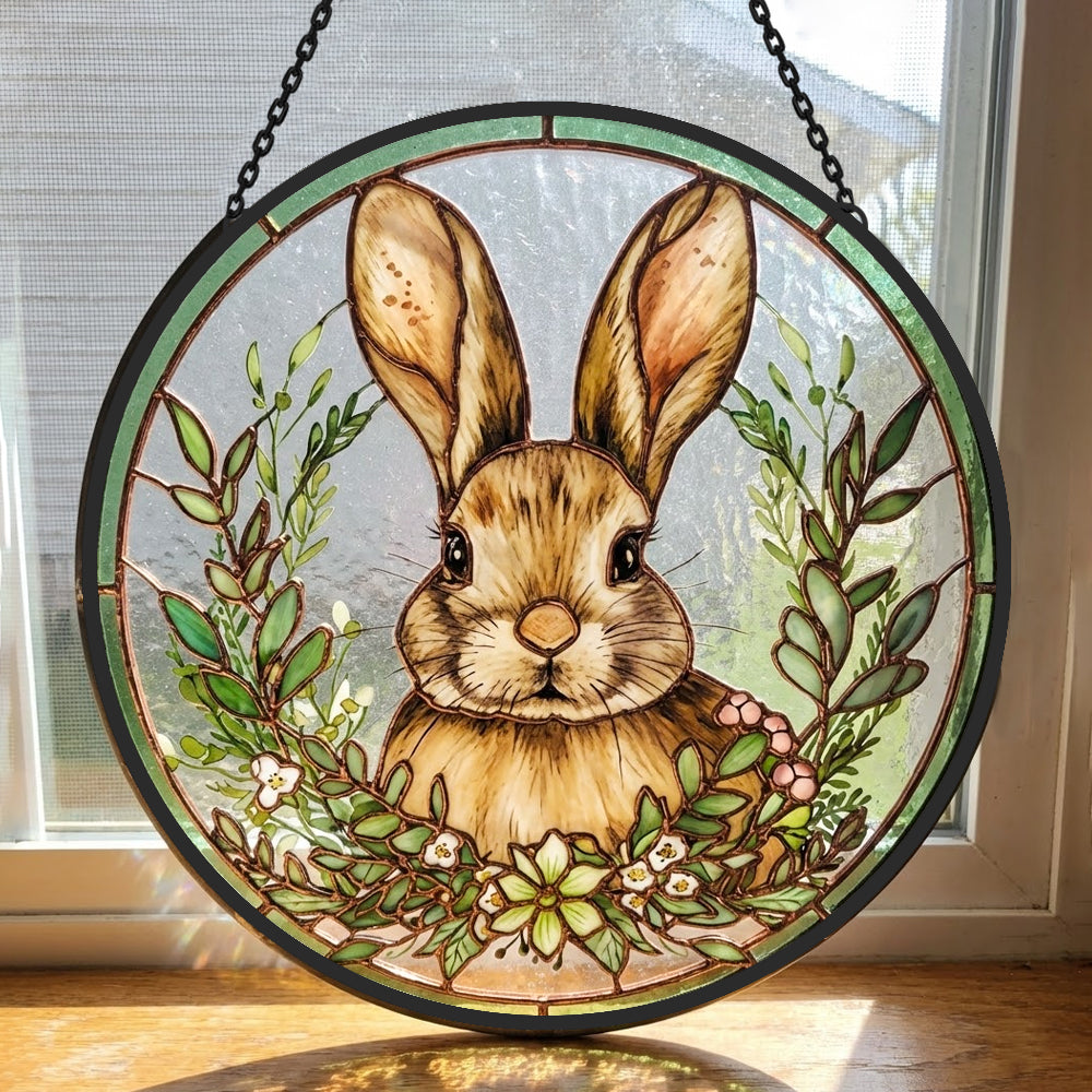 Easter Bunny and Flower Stained Glass Sun Catcher - Window Hanging Decoration