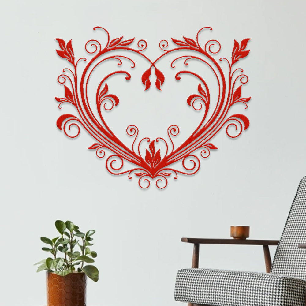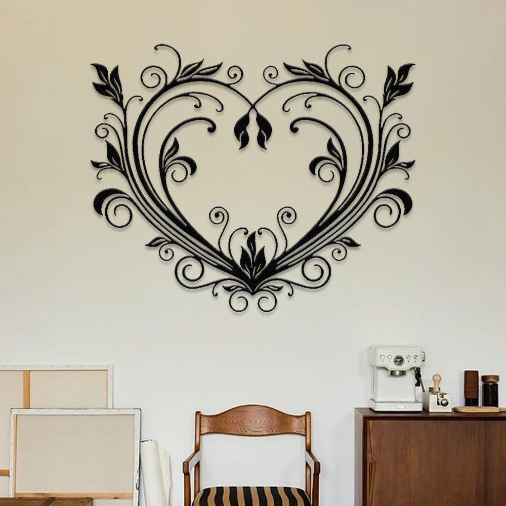 Elegant Scroll Vine Heart Metal Wall Art