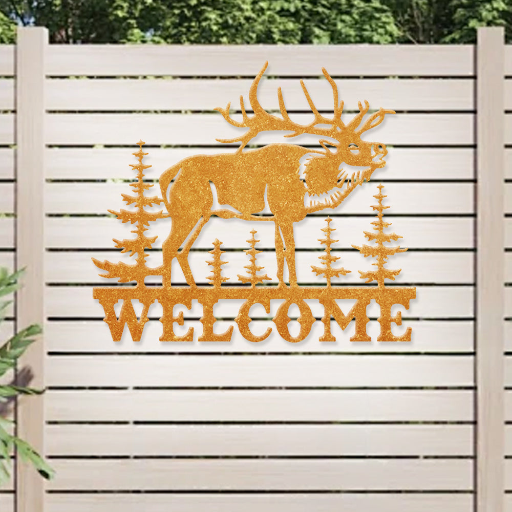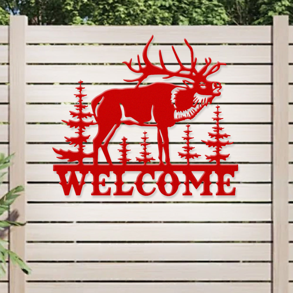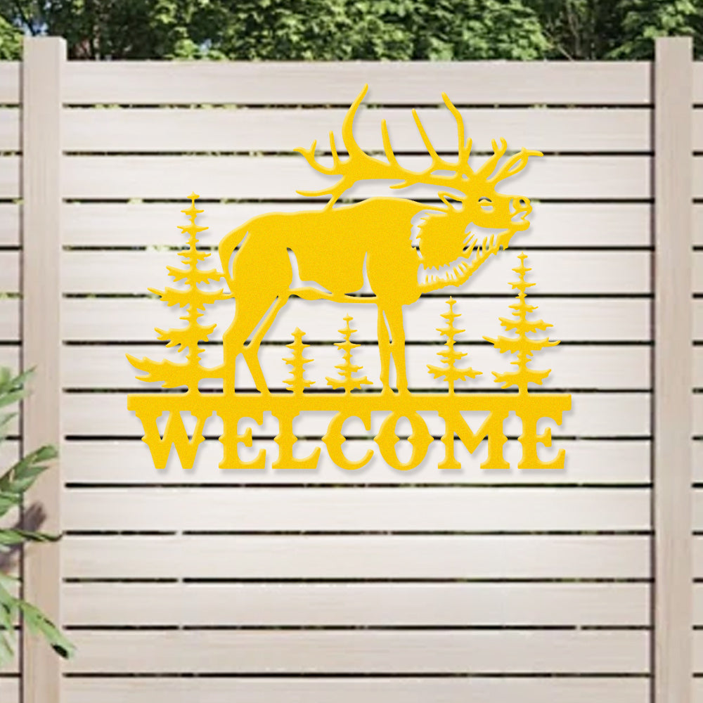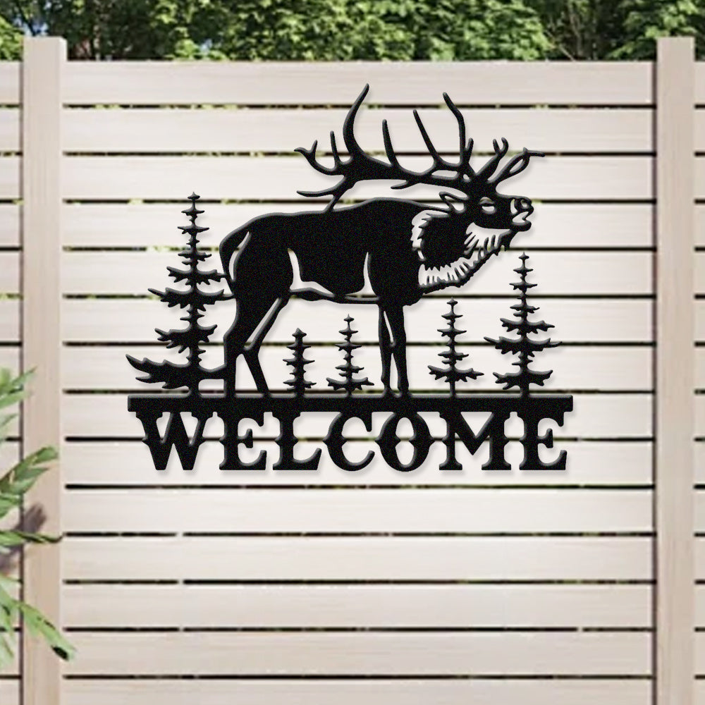 Elk Forest Welcome Metal Wall Art
