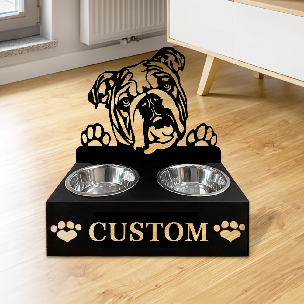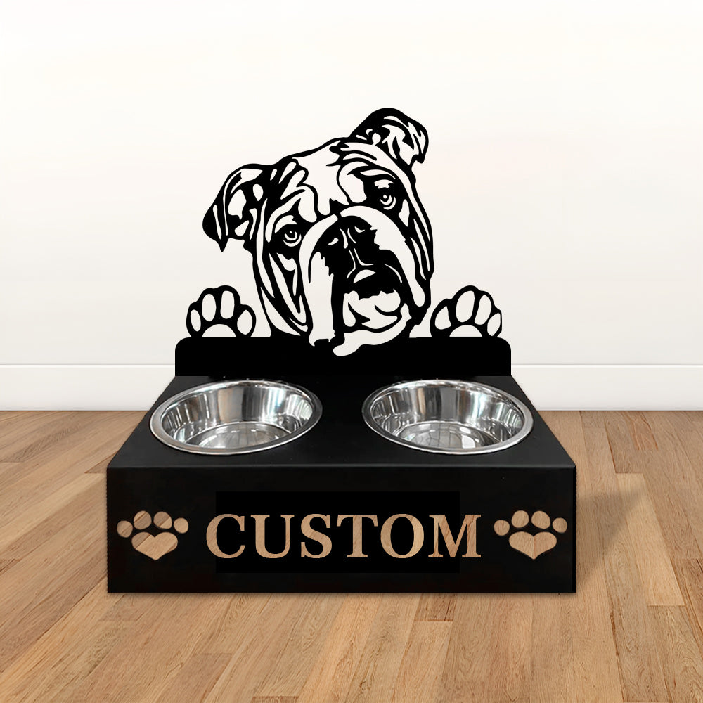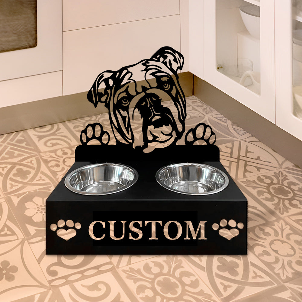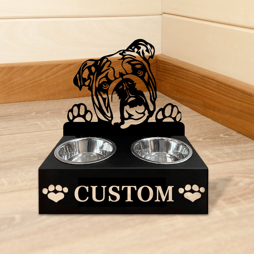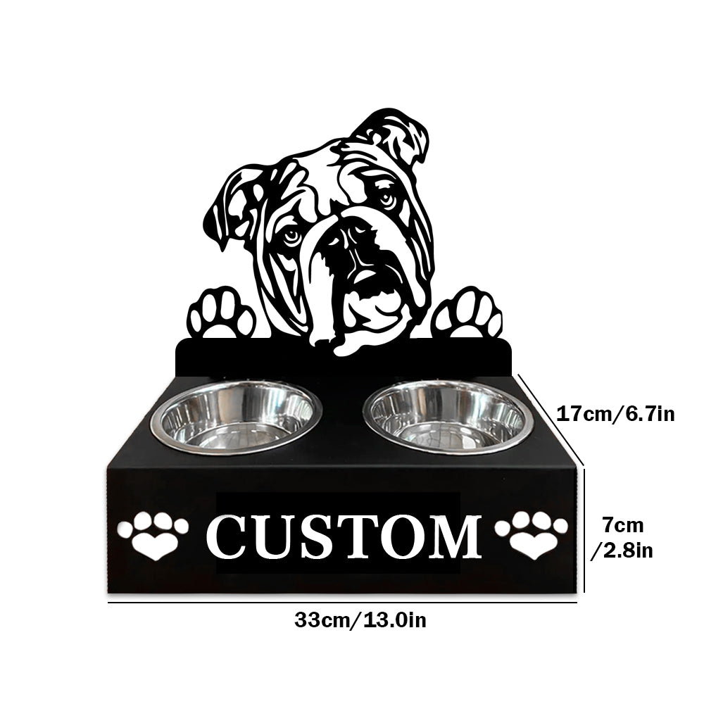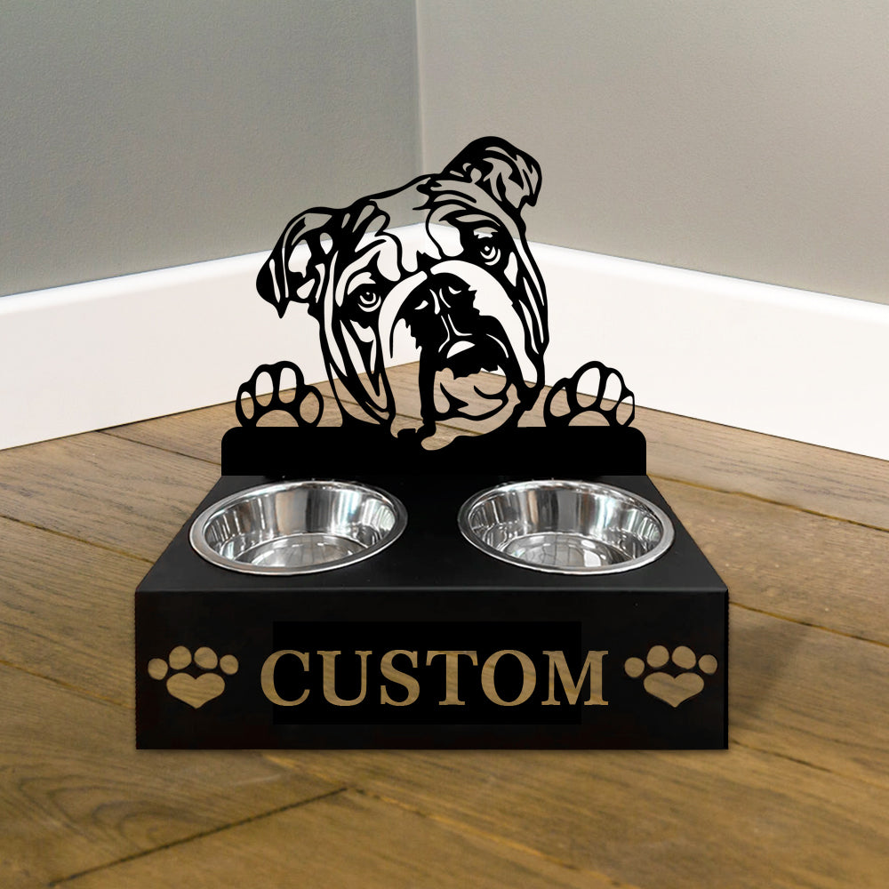 English Bull Dog Personalized Name Pet Food Bowl Holder