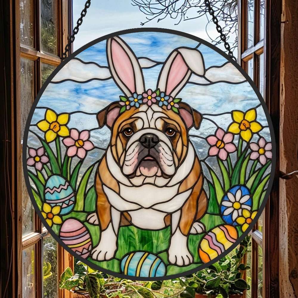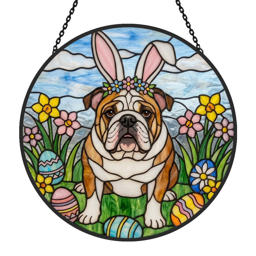 English Bulldog Stained Glass Sun Catcher - Window Hanging Decoration