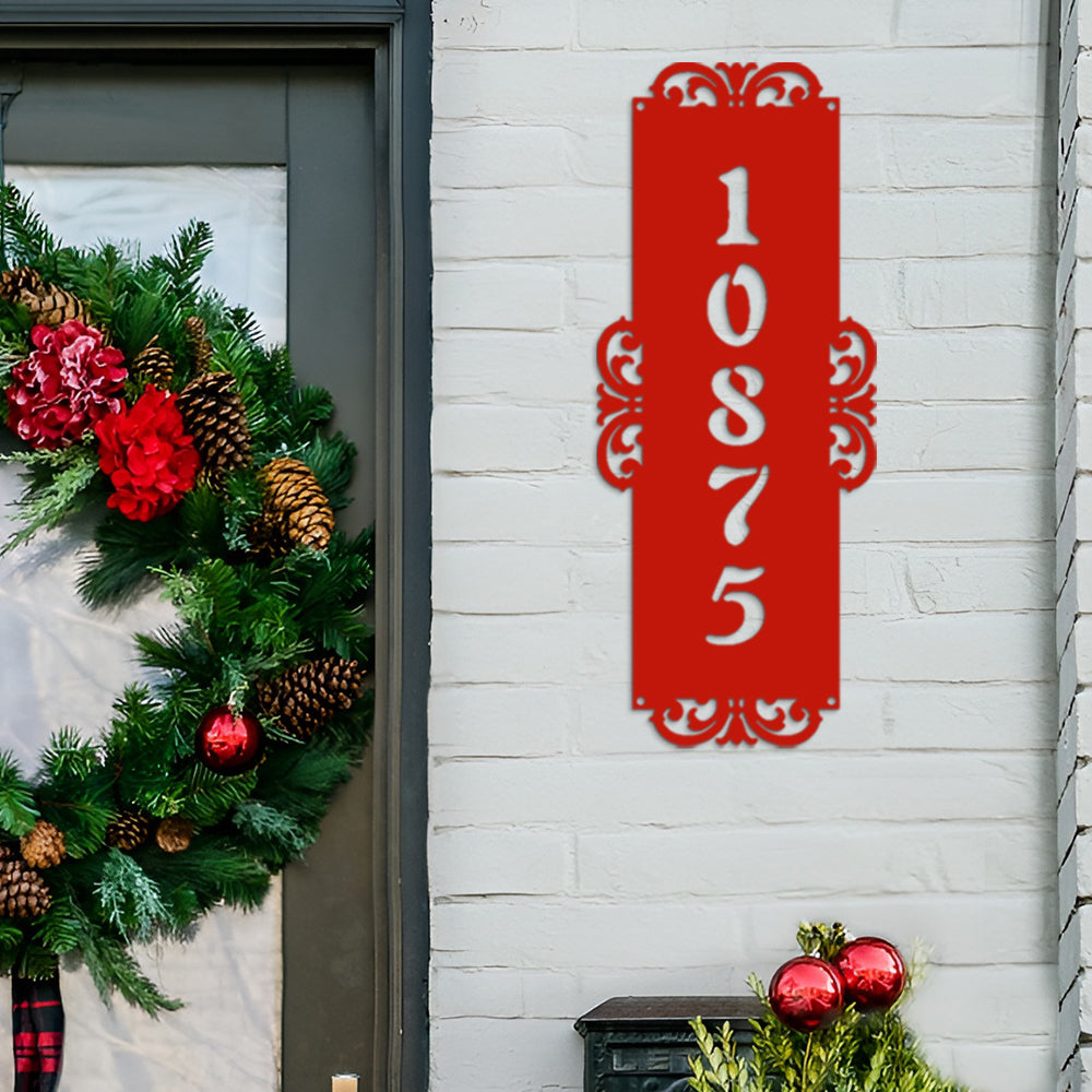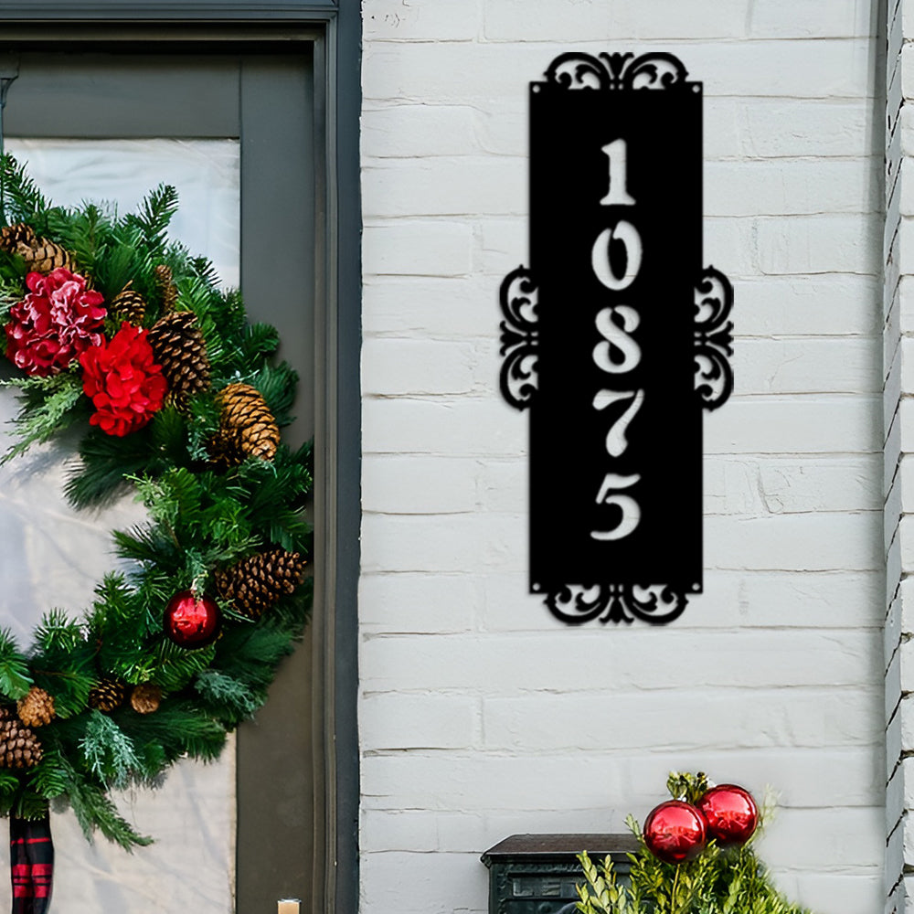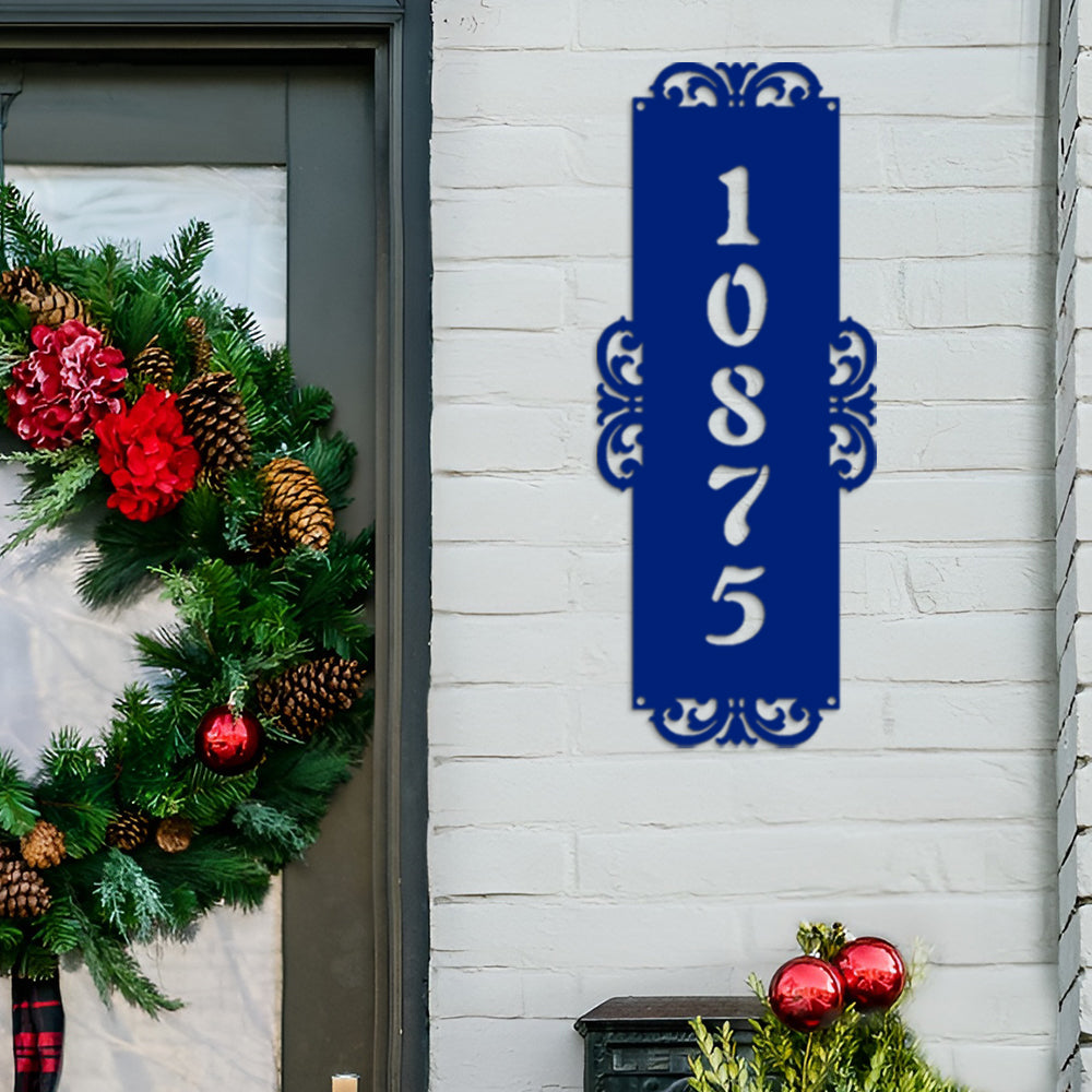 Fancy-Vertical Number Monogram Address Metal Sign Custom