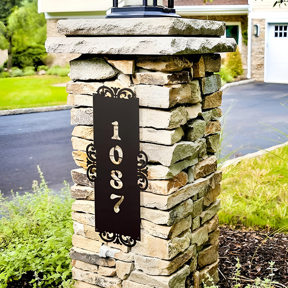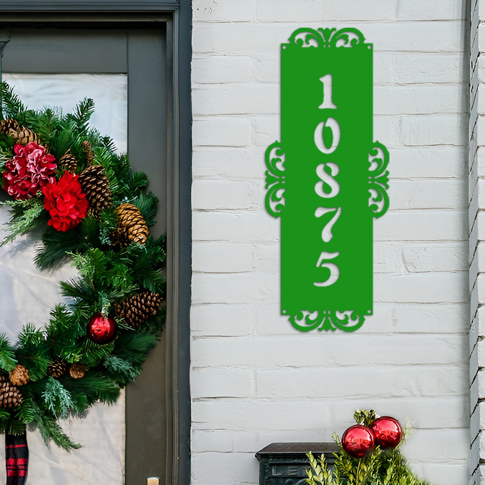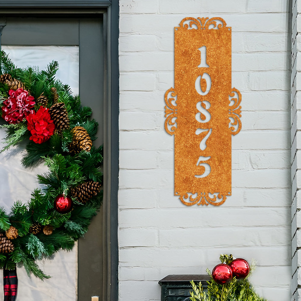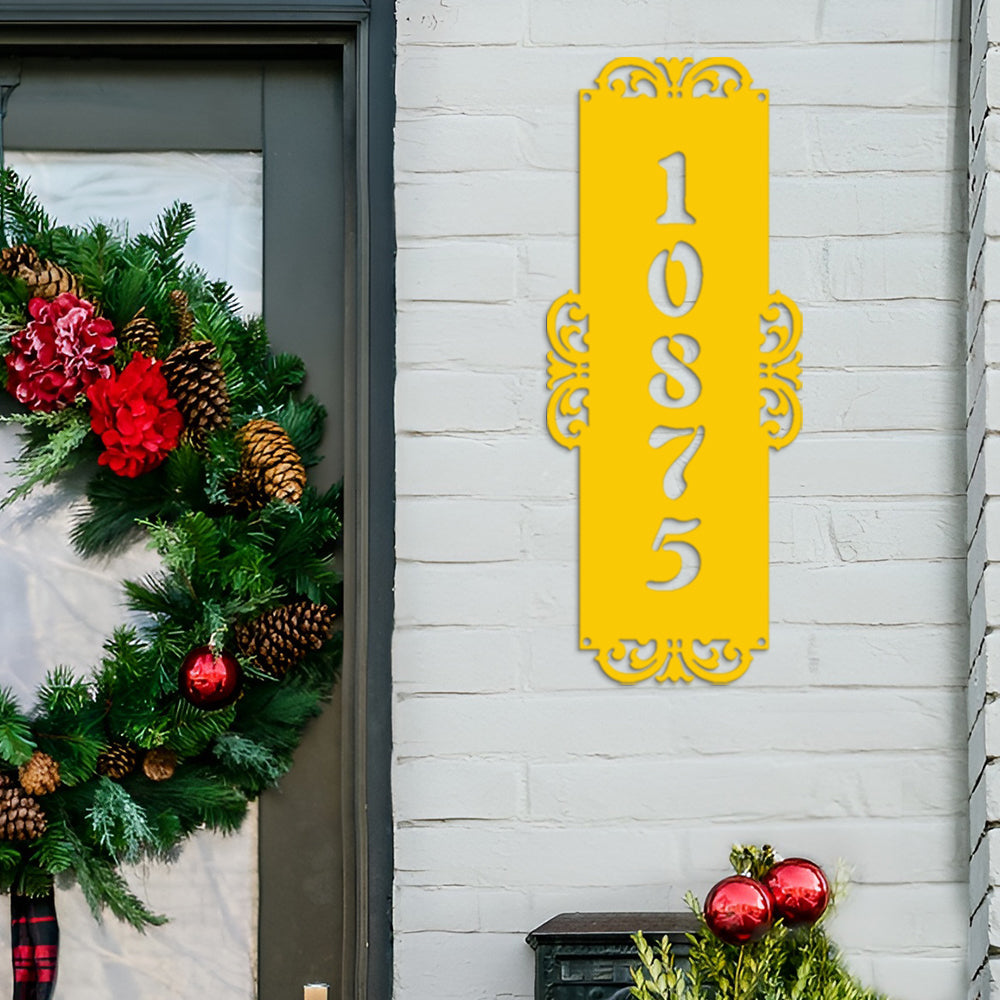 Fancy-Vertical Number Monogram Address Metal Sign Custom