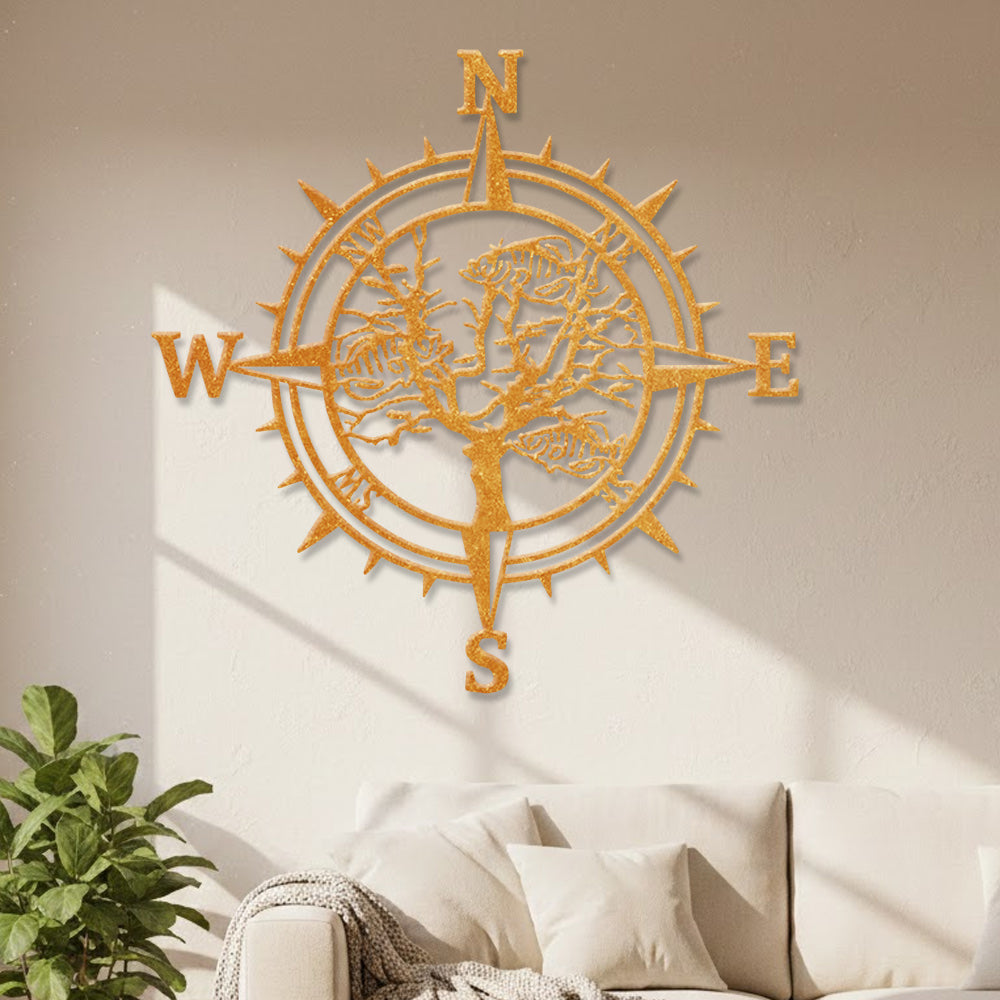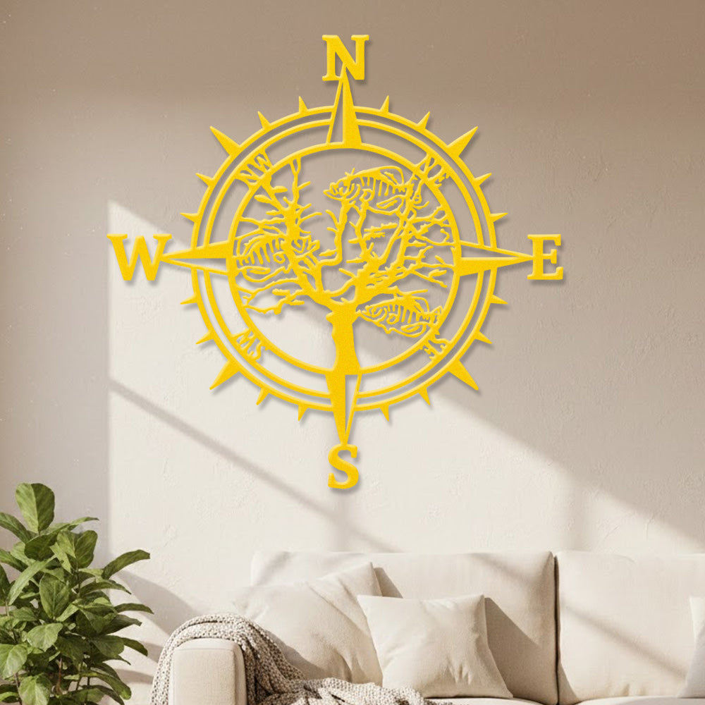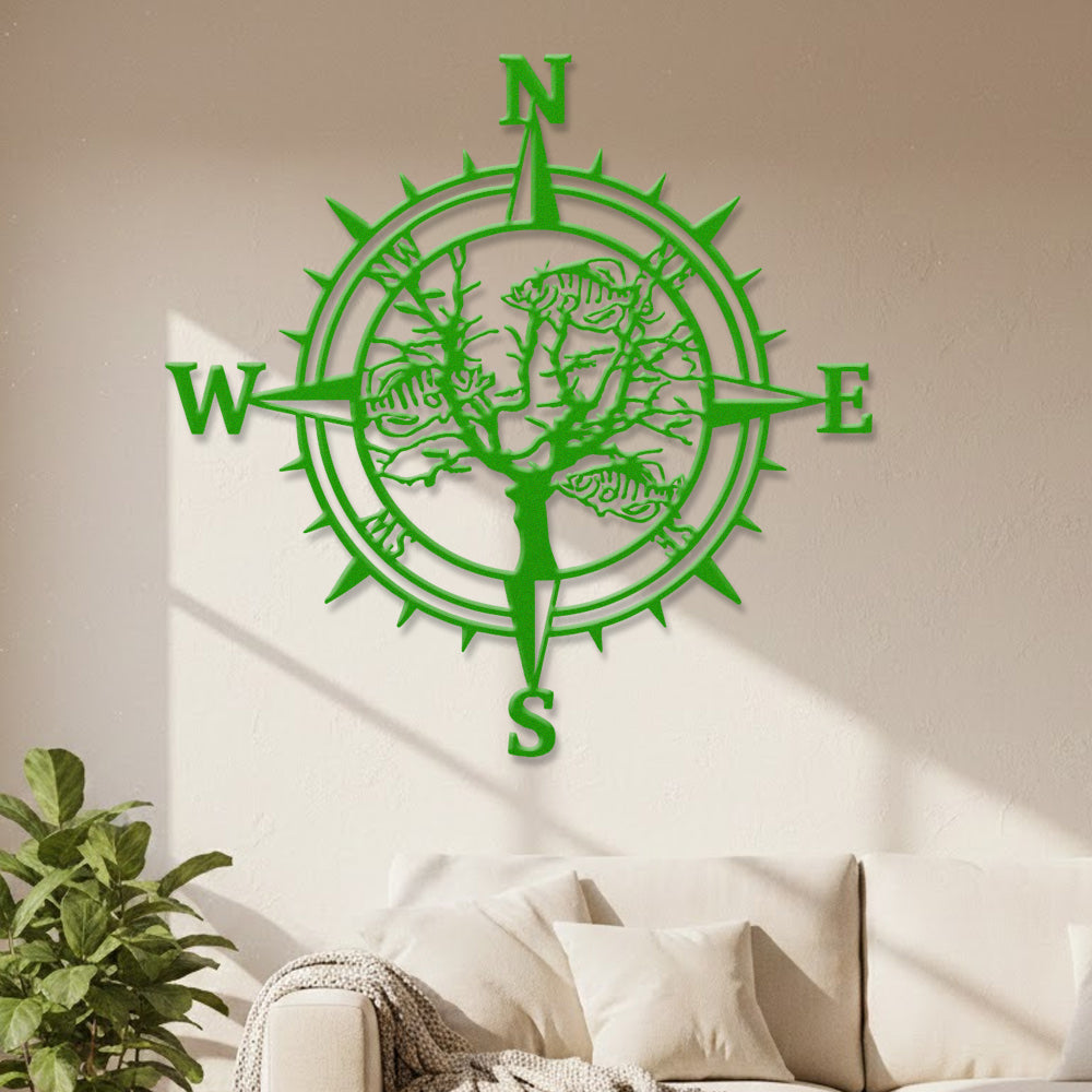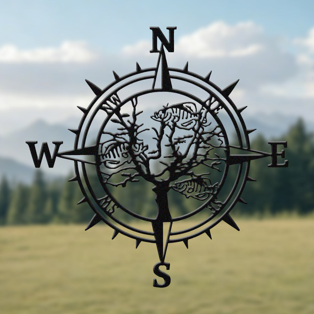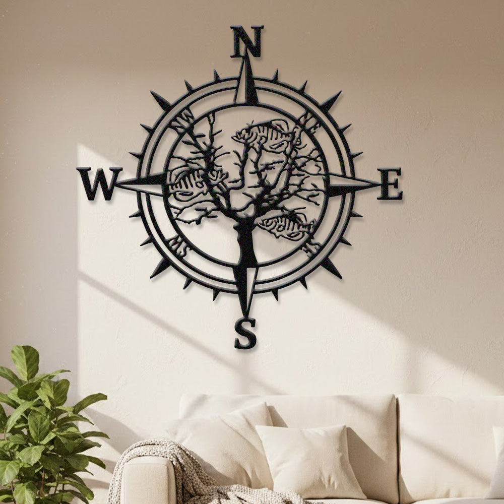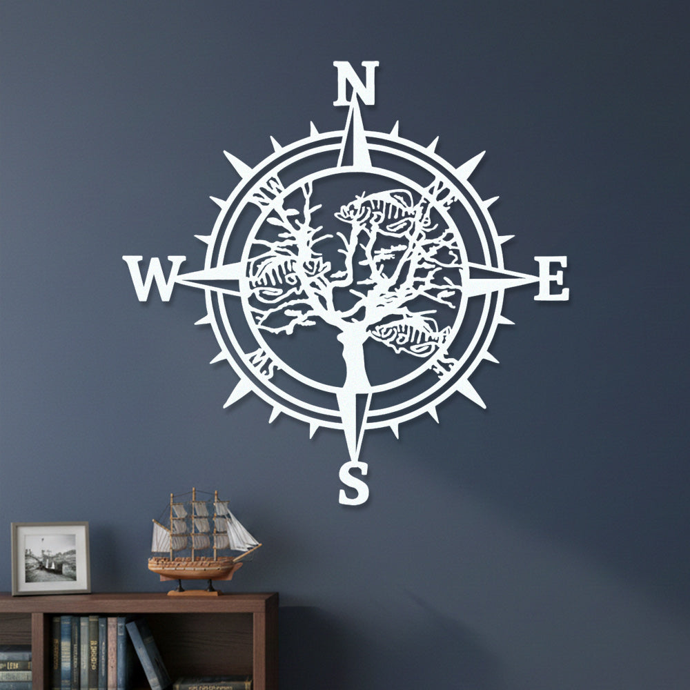 Fish Skeleton Tree Compass Metal Wall Art – Rustic Iron Decor
