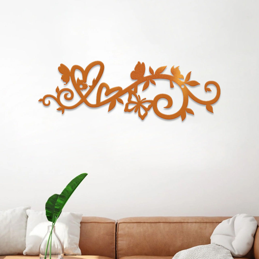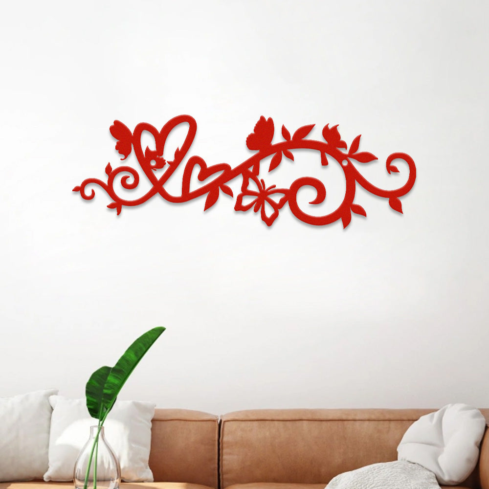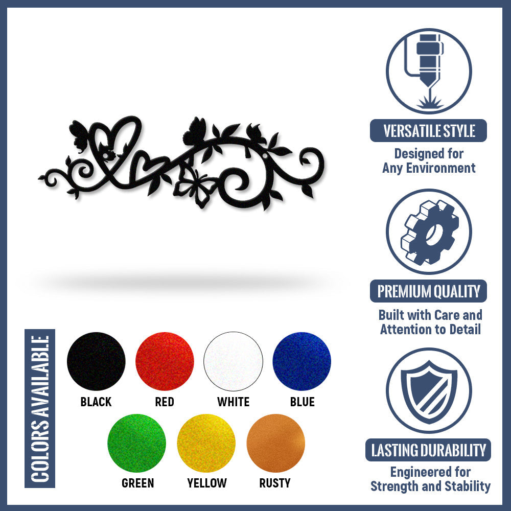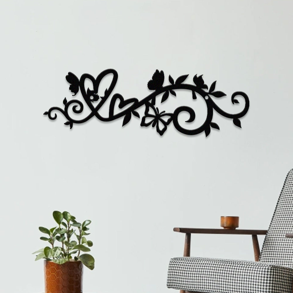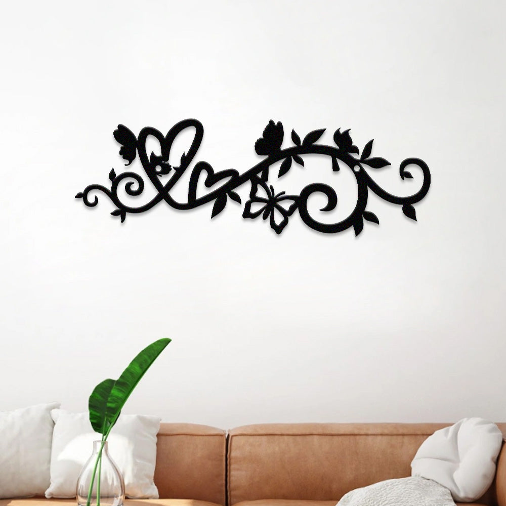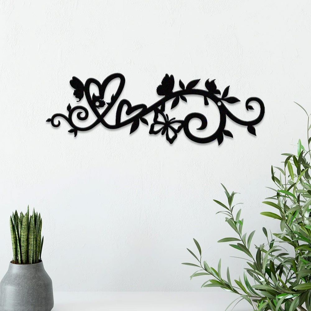 Floral Vine Heart Butterfly Metal Wall Art