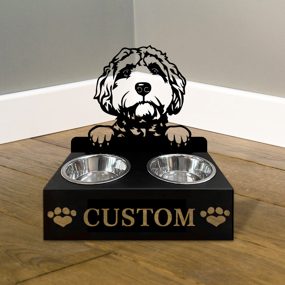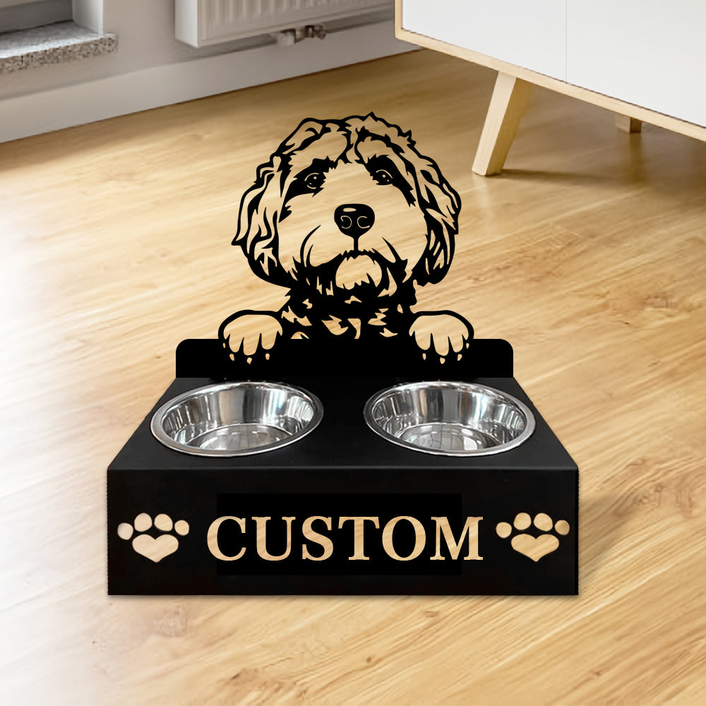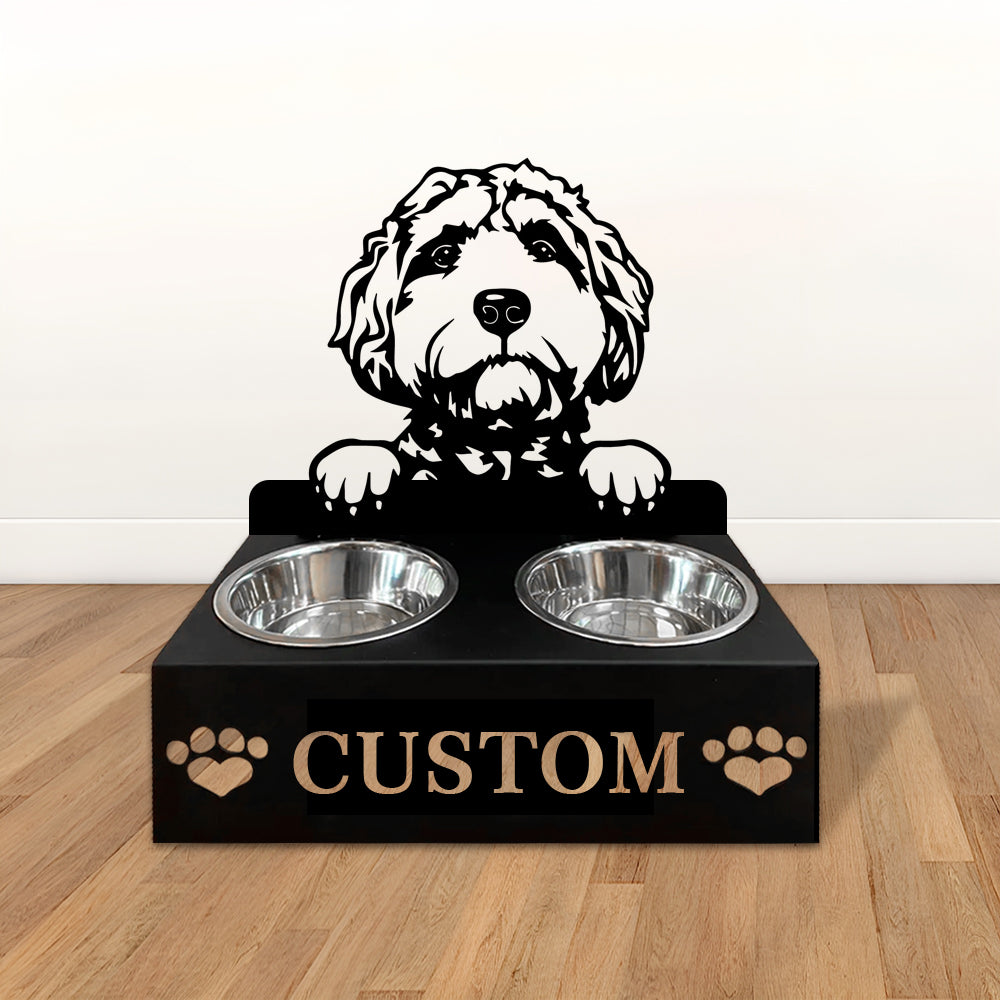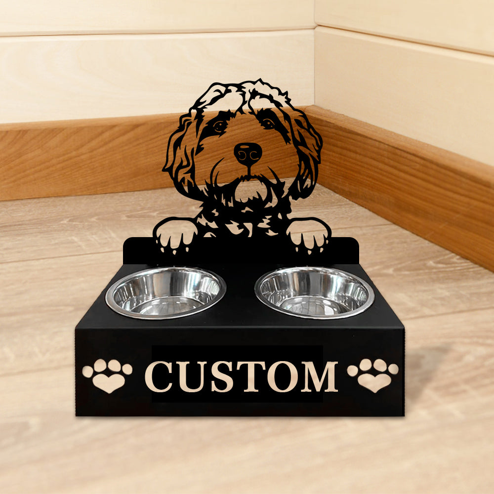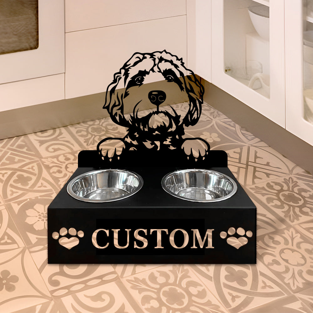 Golden Doodle Personalized Name Pet Food Bowl Holder