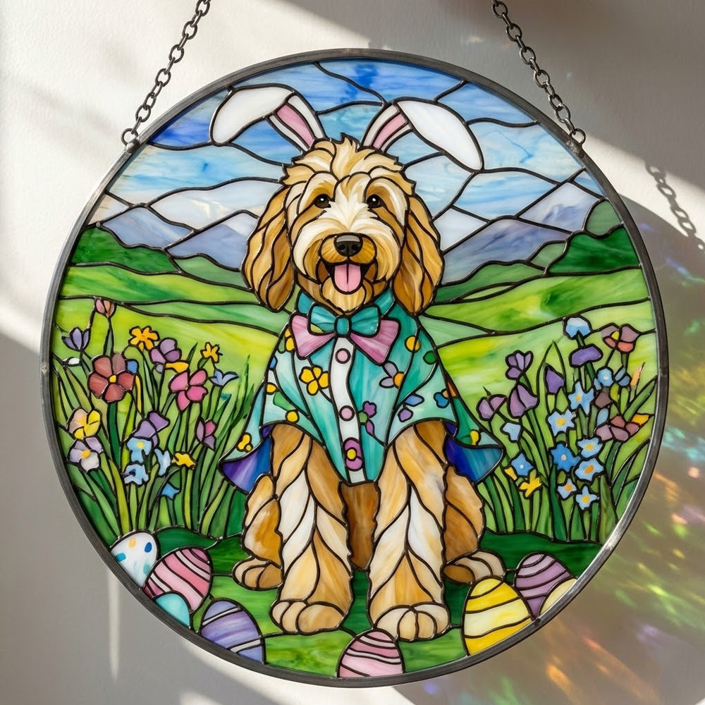 Goldendoodle Stained Glass Sun Catcher - Window Hanging Decoration