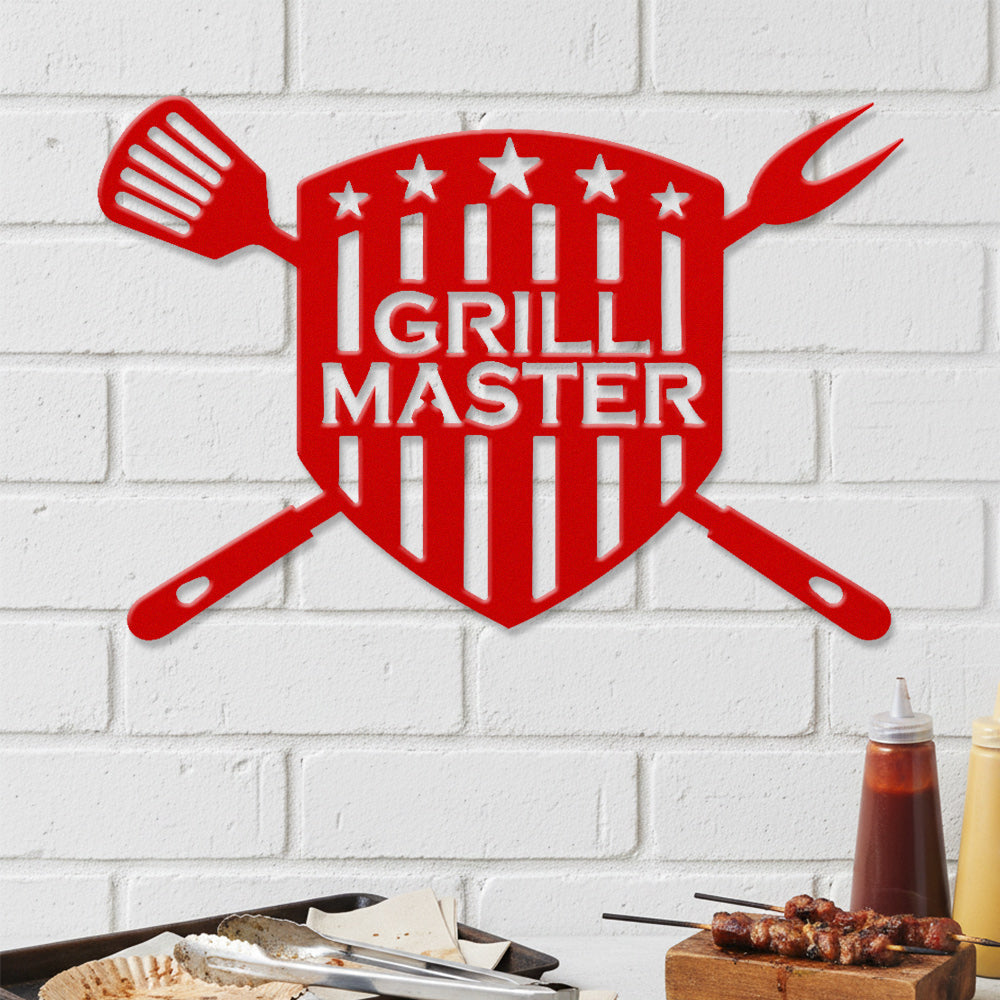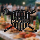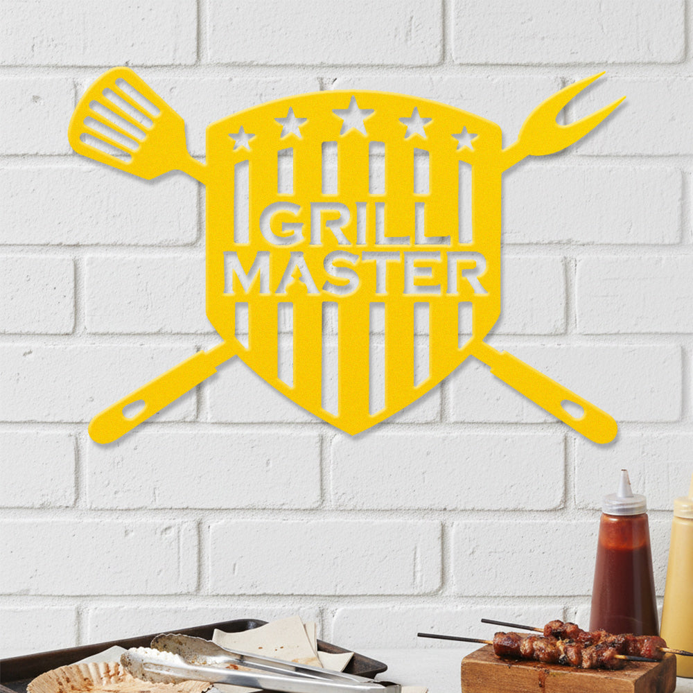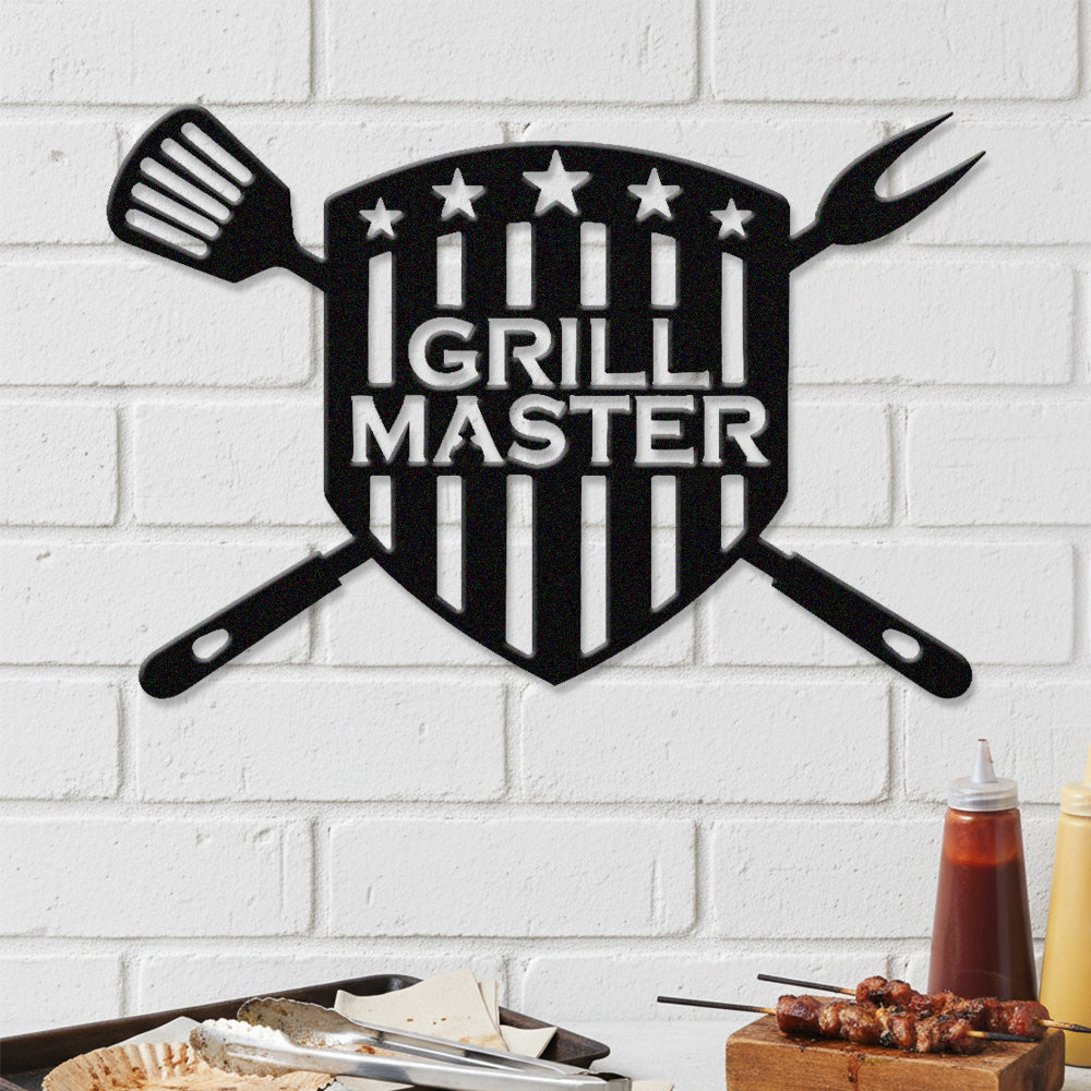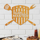 GRILL MASTER Metal Wall Art - Iron BBQ Shield Decor with Grill Tools