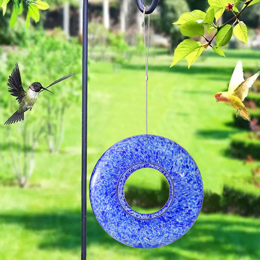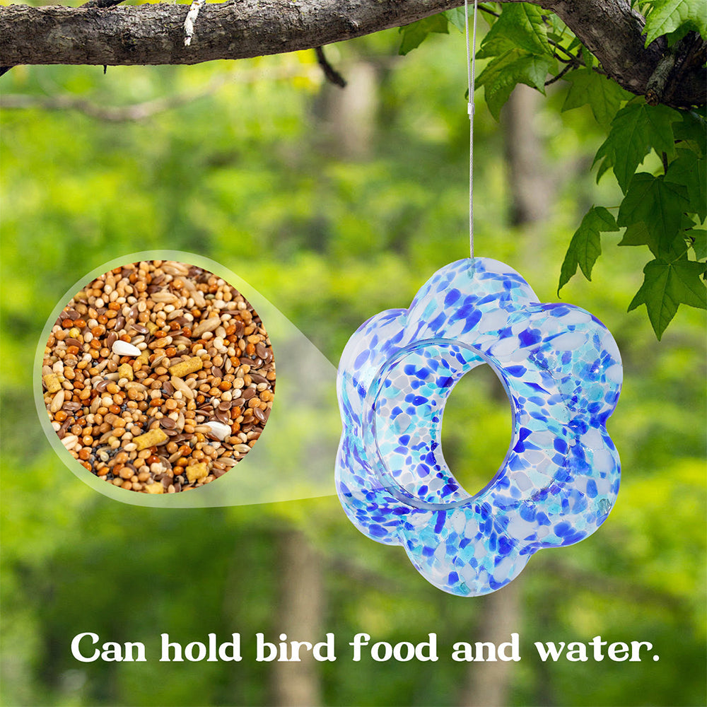 - 🌟 Handmade Stained Glass: The bottle is inlaid with handmade colored glass particles. Under sunlight, the colors are crystal clear and refract vibrant light, precisely attracting birds while ensuring the colors won't fade over time.