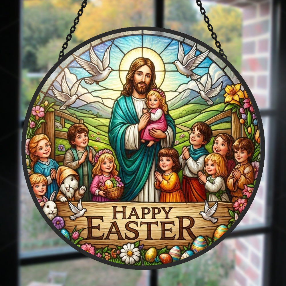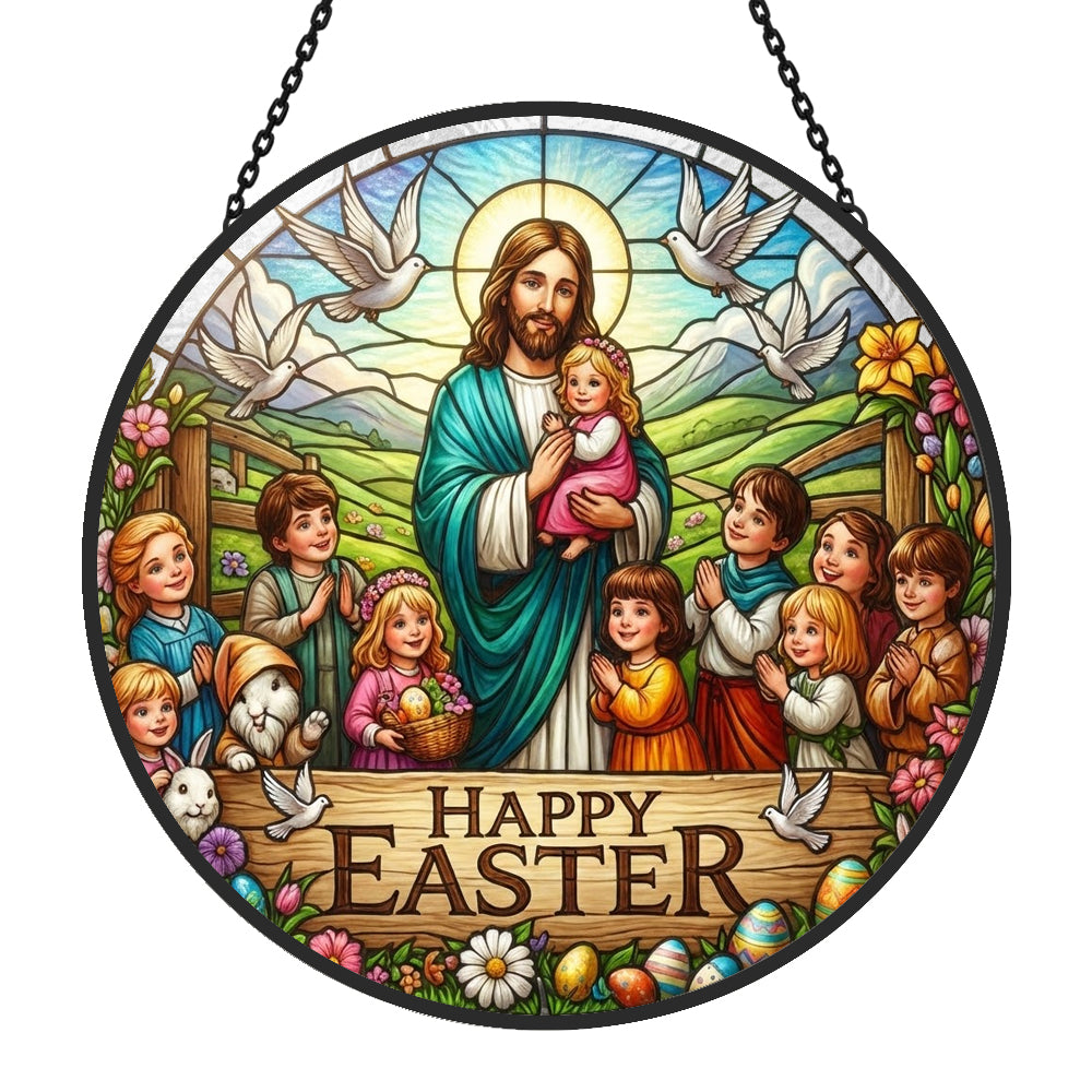 Happy Easter Stained Glass Sun Catcher - Window Hanging Decoration