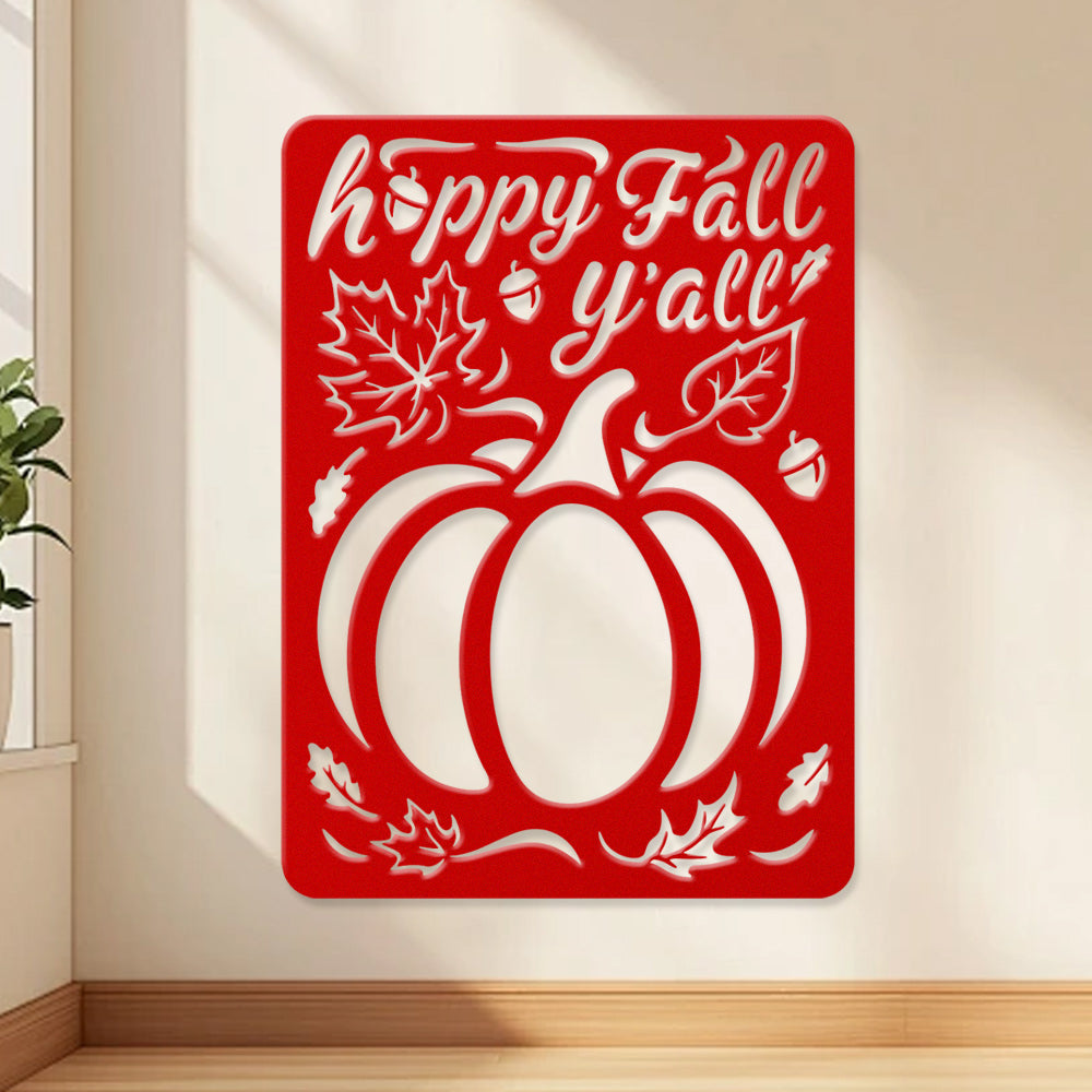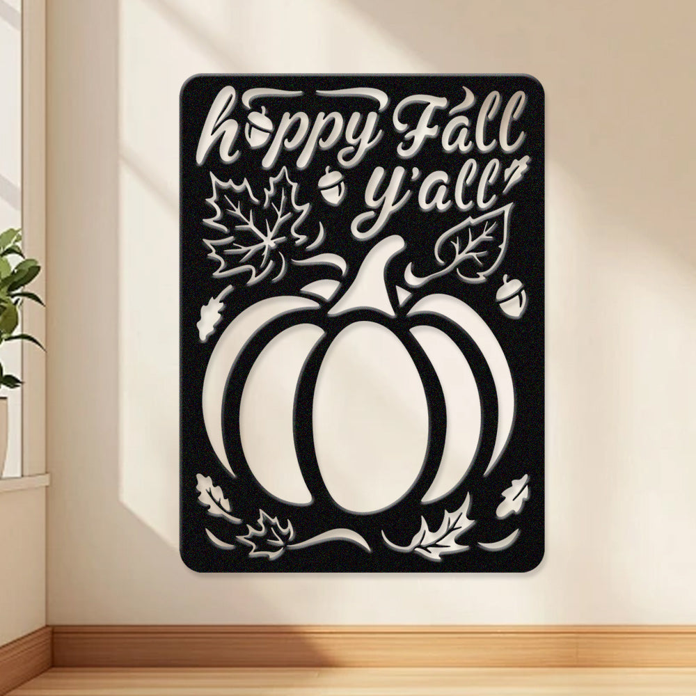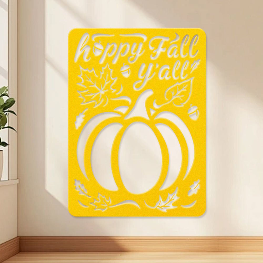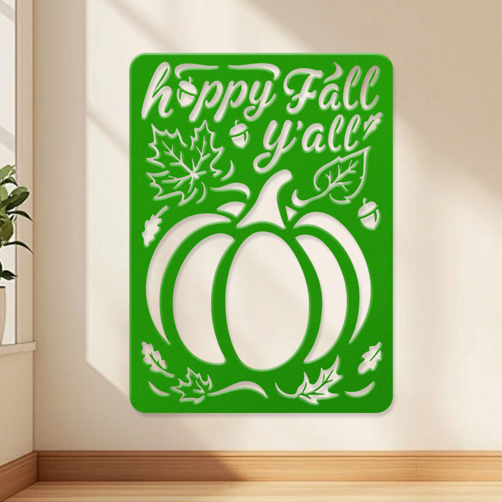 Happy Fall Metal Wall Art - Autumn Pumpkin Iron Decor with Leaves and Acorns