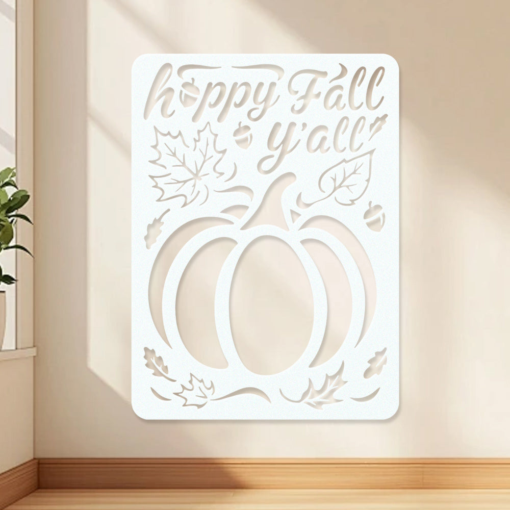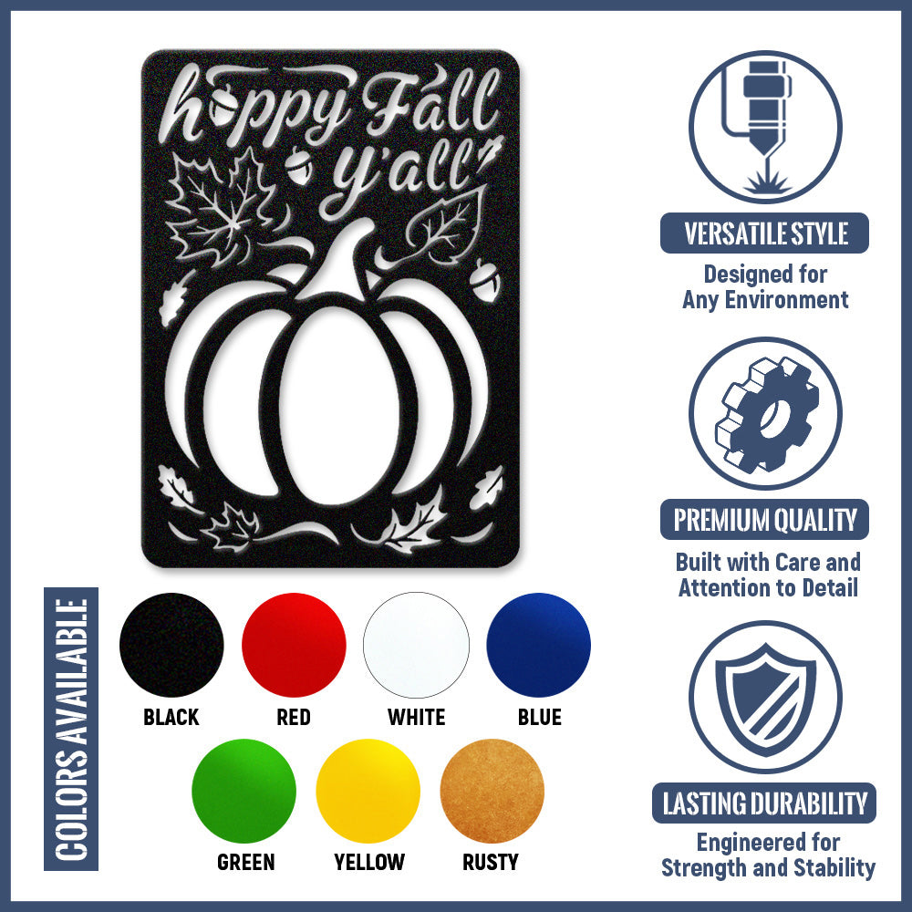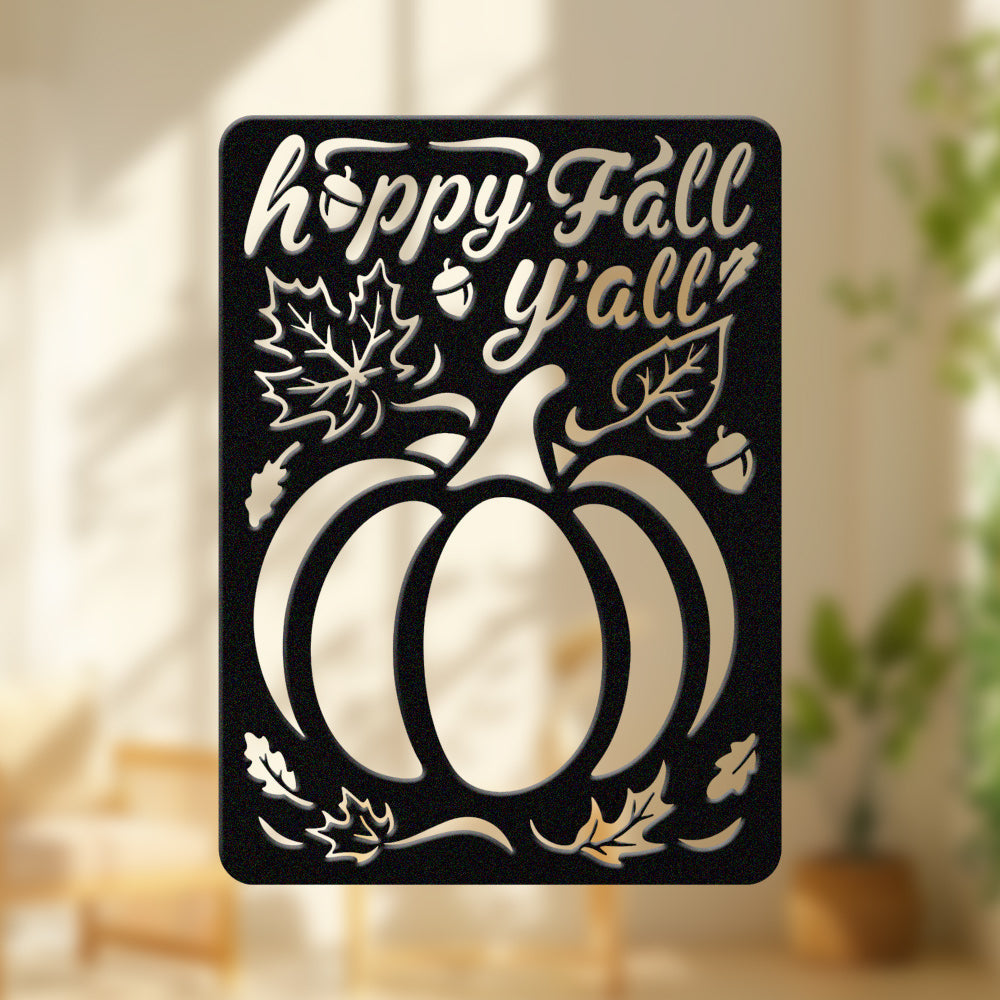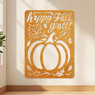 Happy Fall Metal Wall Art - Autumn Pumpkin Iron Decor with Leaves and Acorns