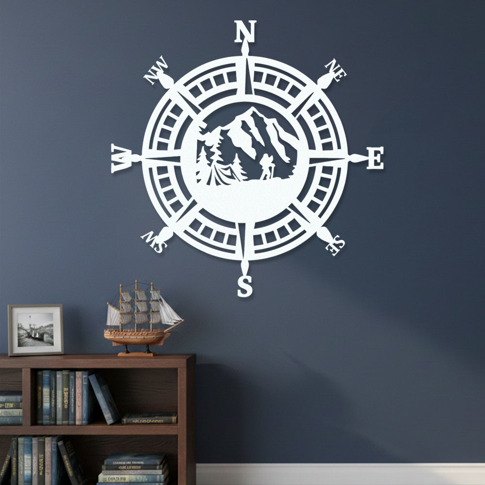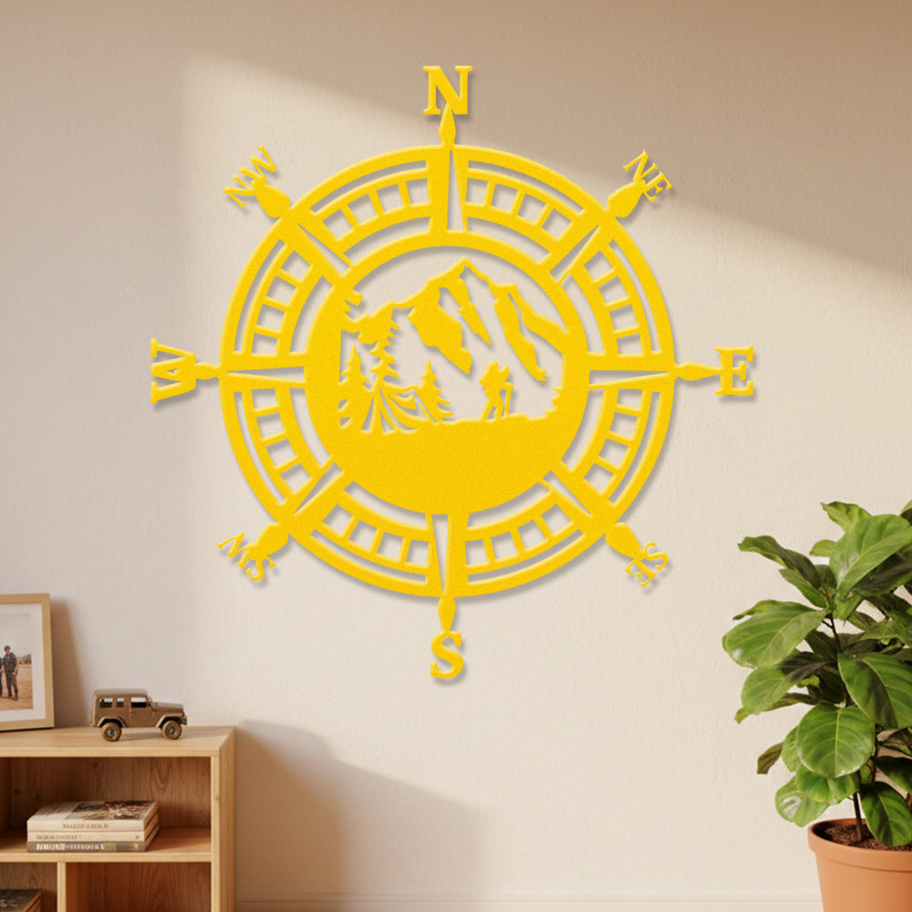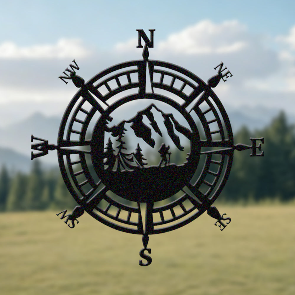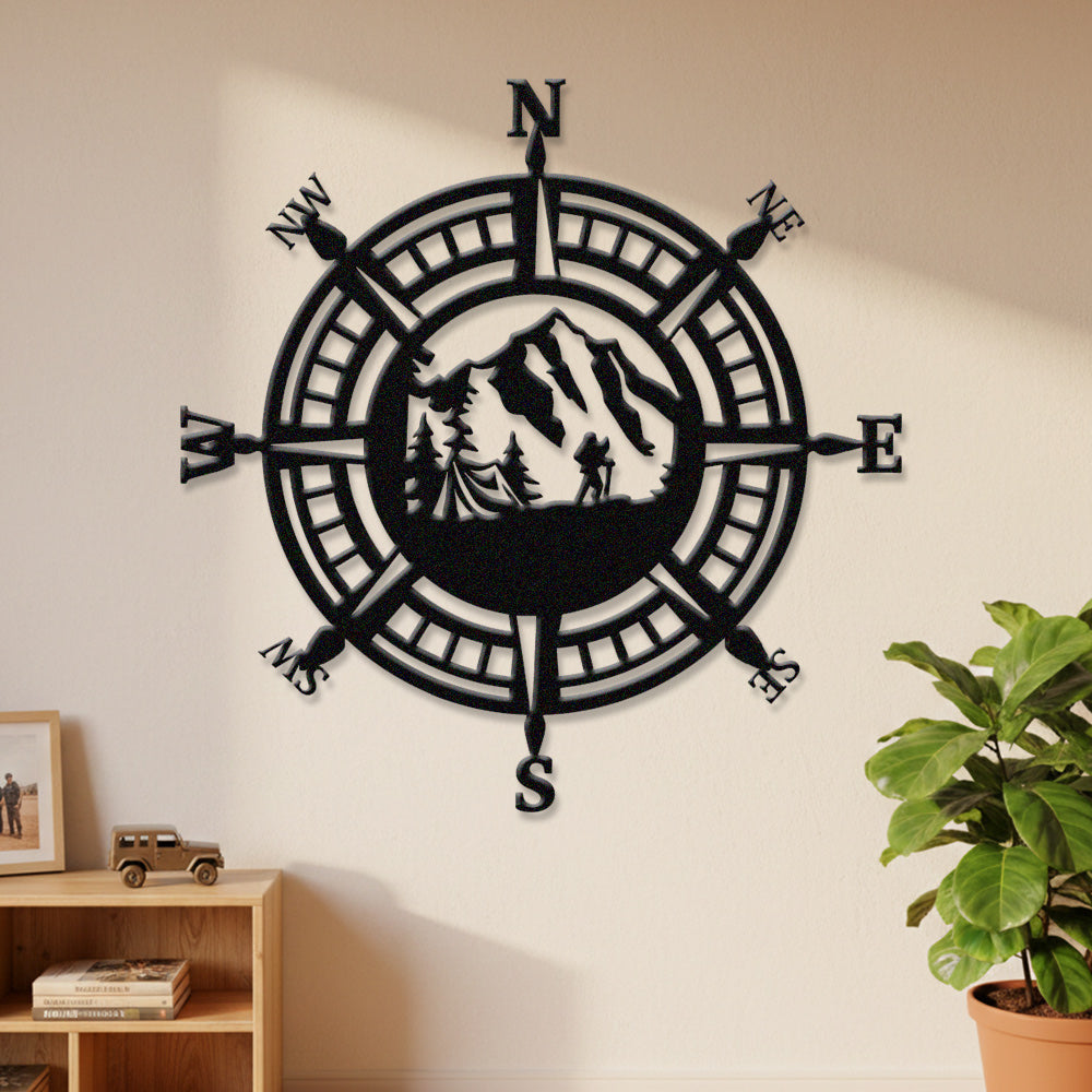 Hiker Compass Metal Wall Art – Mountain Adventure Decor
