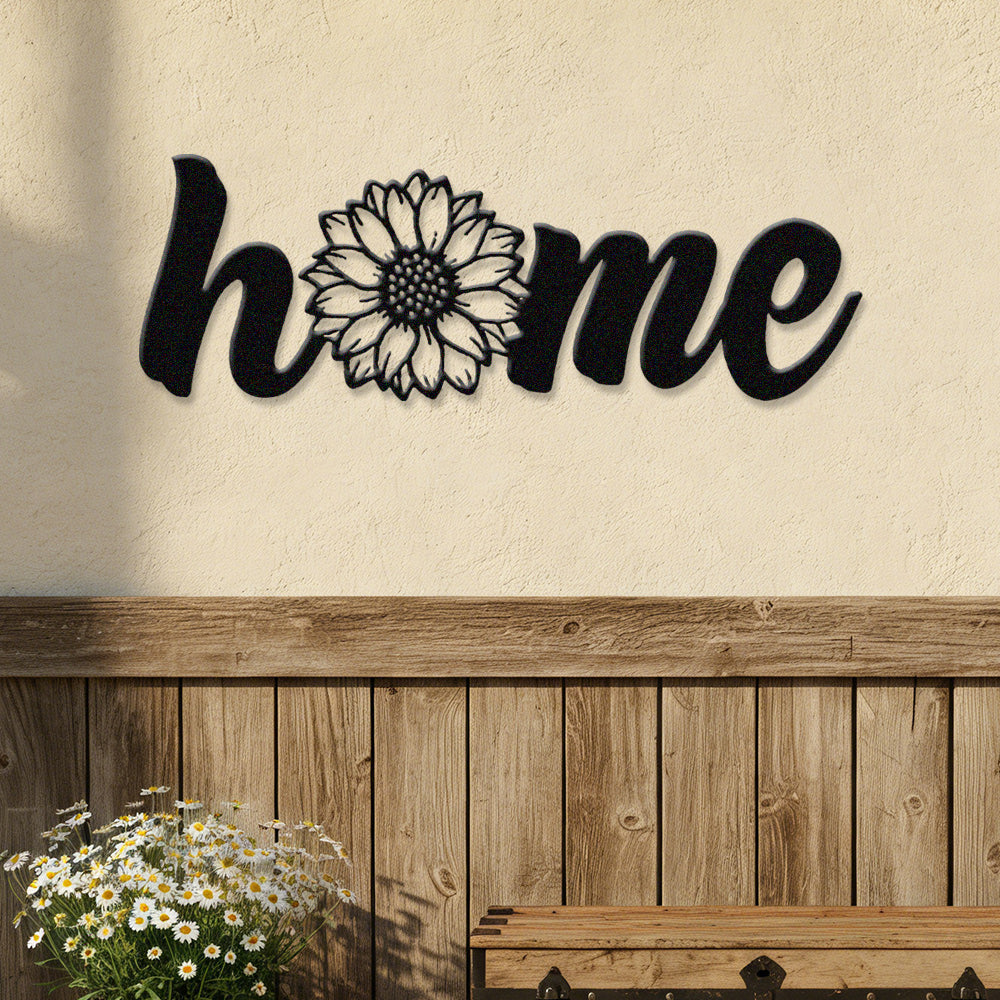 Home Sunflower Metal Wall Art – Iron Metal Family Word Sign Decor