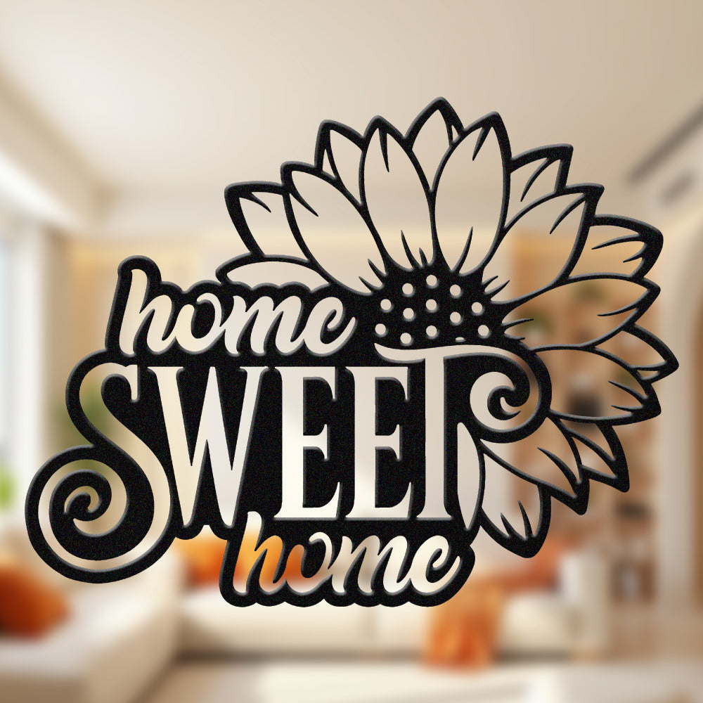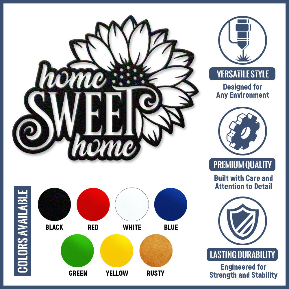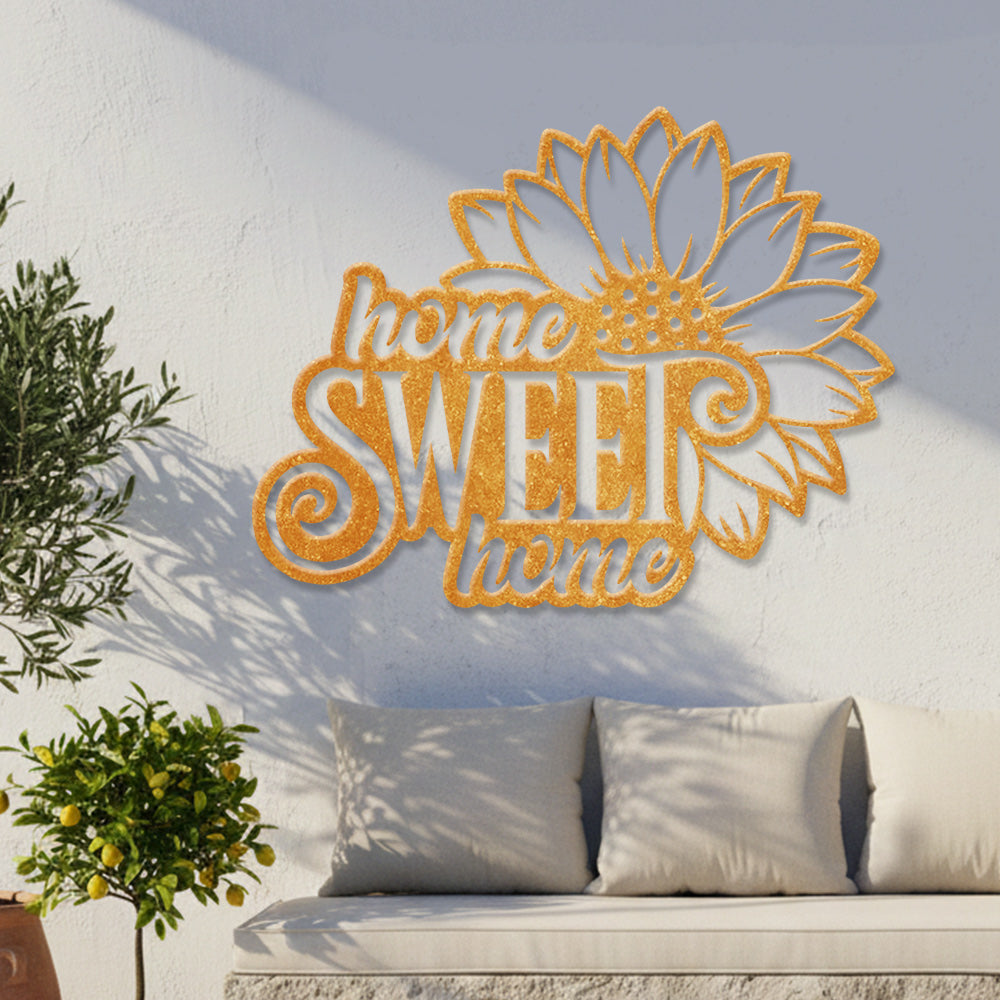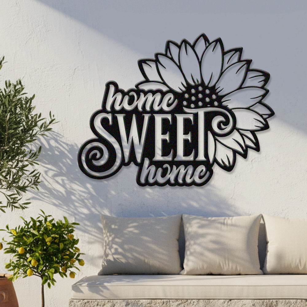 Home Sweet Home Sunflower Metal Wall Art – Iron Metal Farmhouse Family Sign