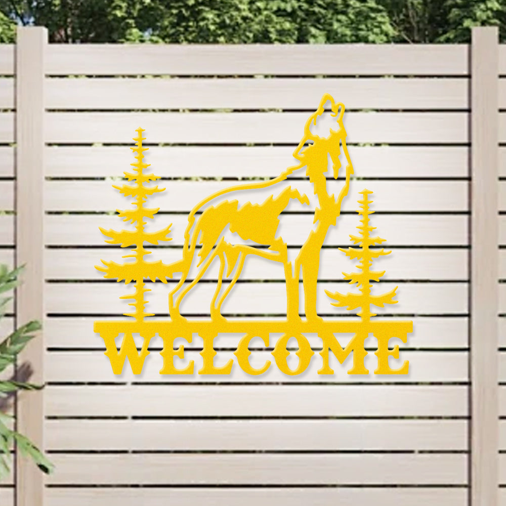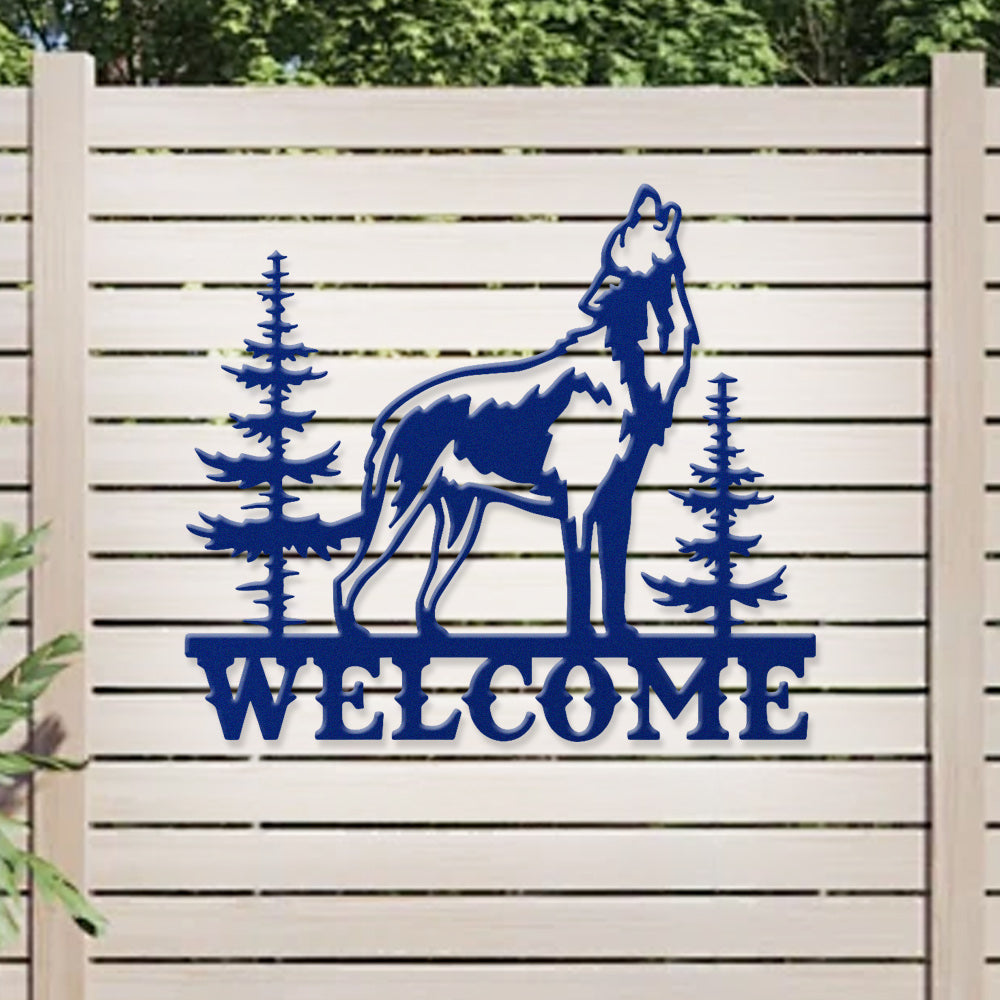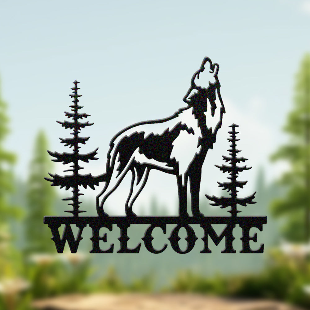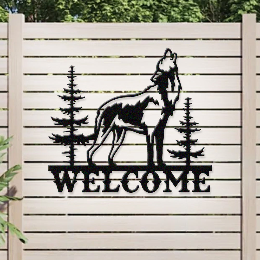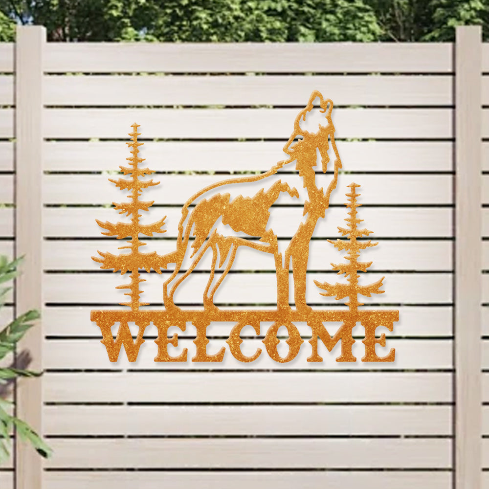 Howling Wolf Welcome Metal Wall Art