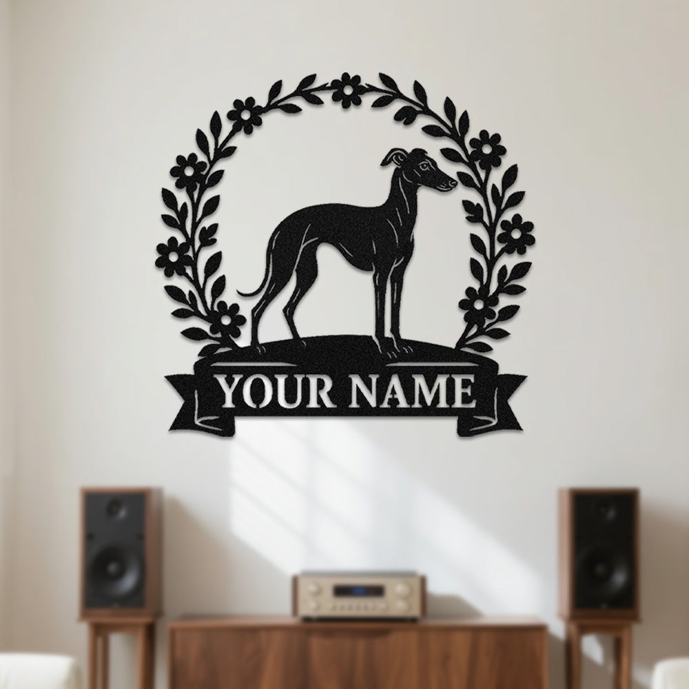 Italian Greyhound Wreath Metal Wall Art Dog Lover Personalized Memorial Metal Sign