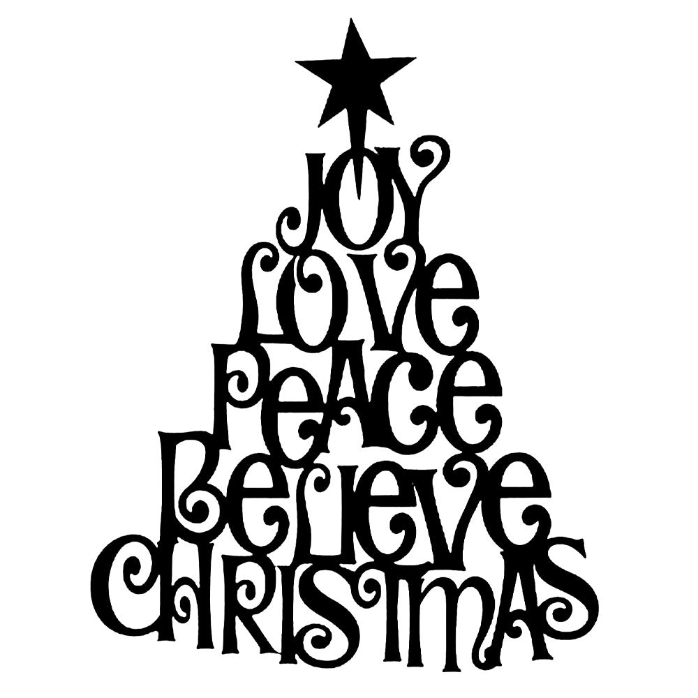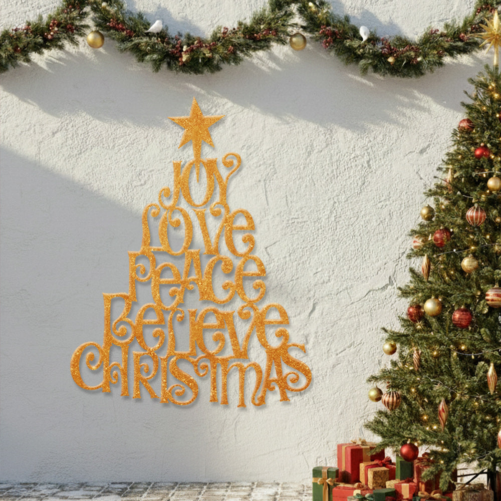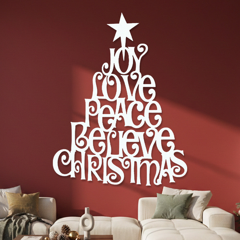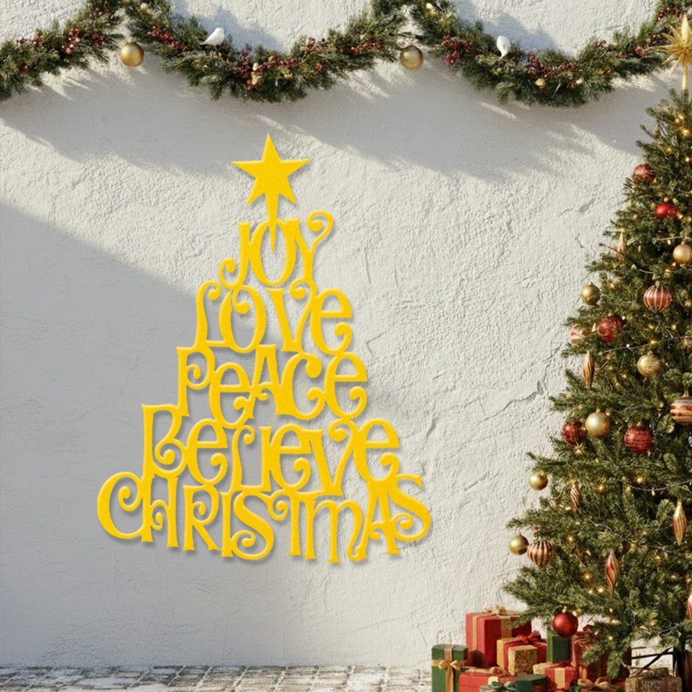 Joy Love Peace Believe Christmas Metal Wall Art – Tree Shape Holiday Metal Decor
