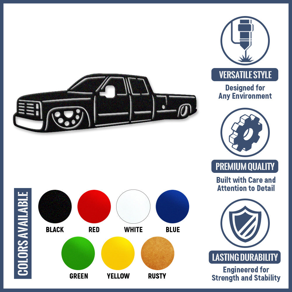 Lowrider Pickup Truck Metal Wall Art - Iron Custom Car Sign Decor