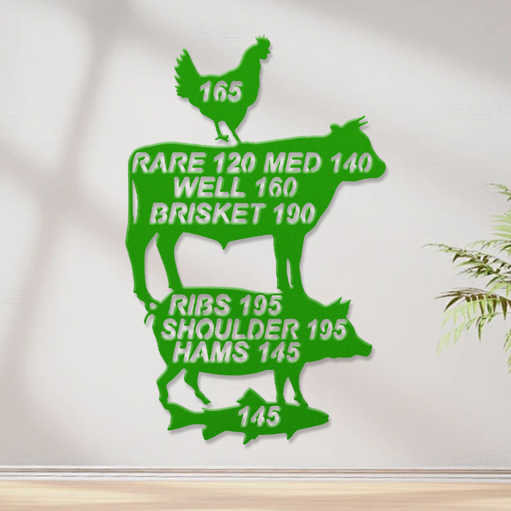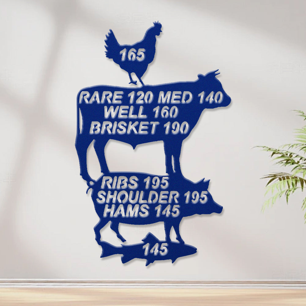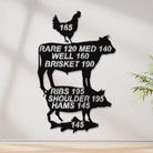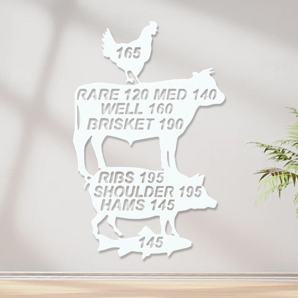 Meat Cooking Temperature Chart Metal Wall Art - Iron BBQ Kitchen Decor