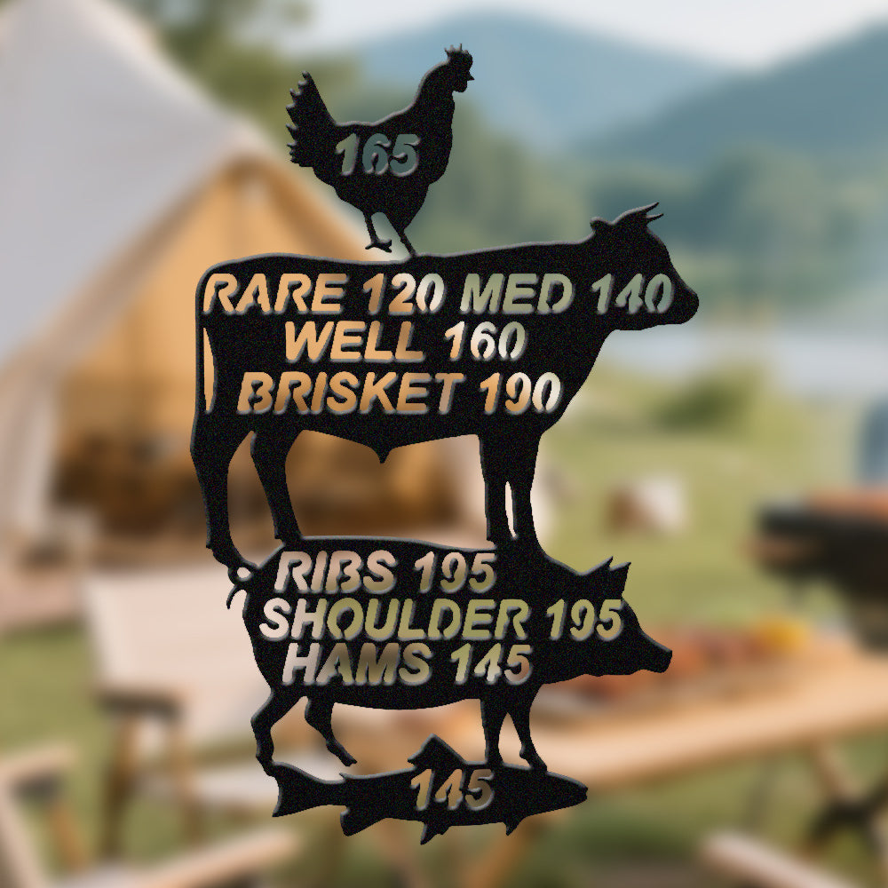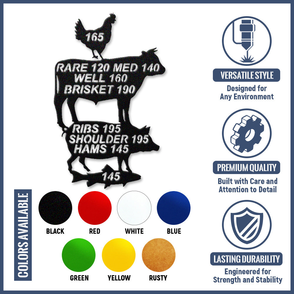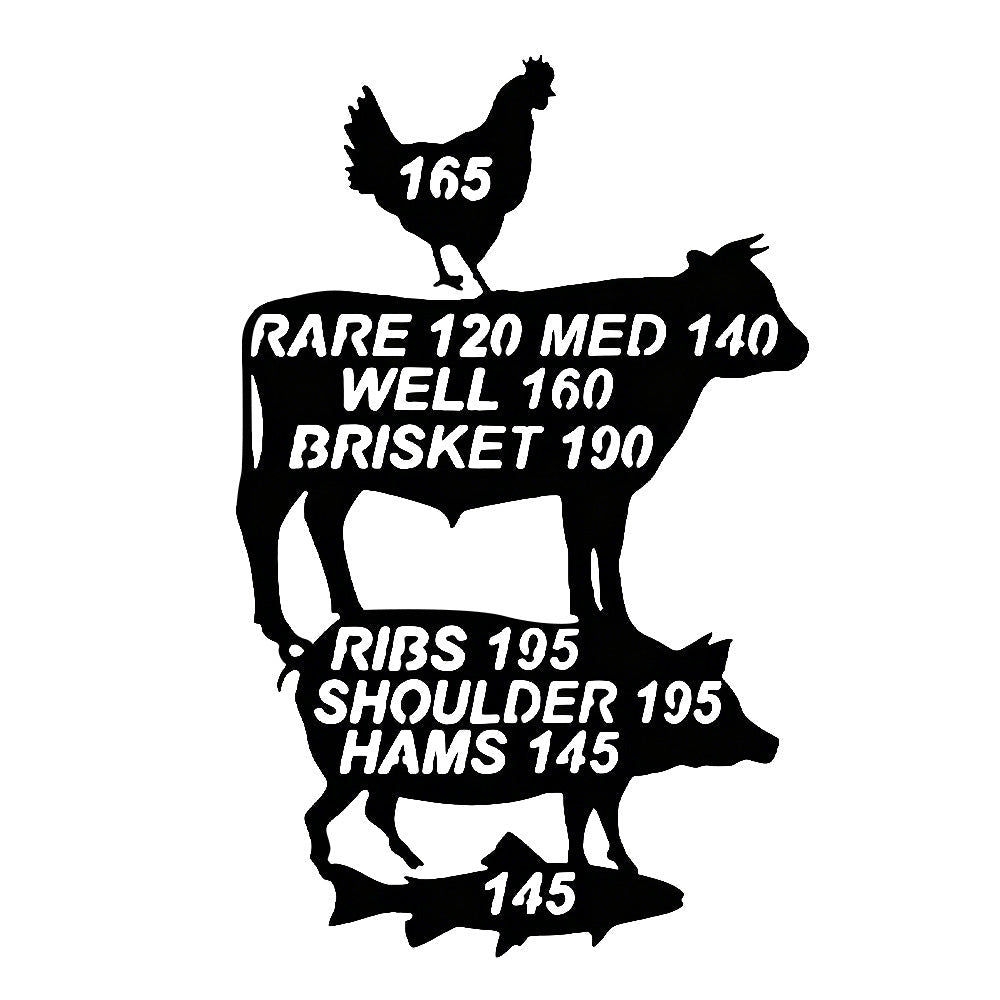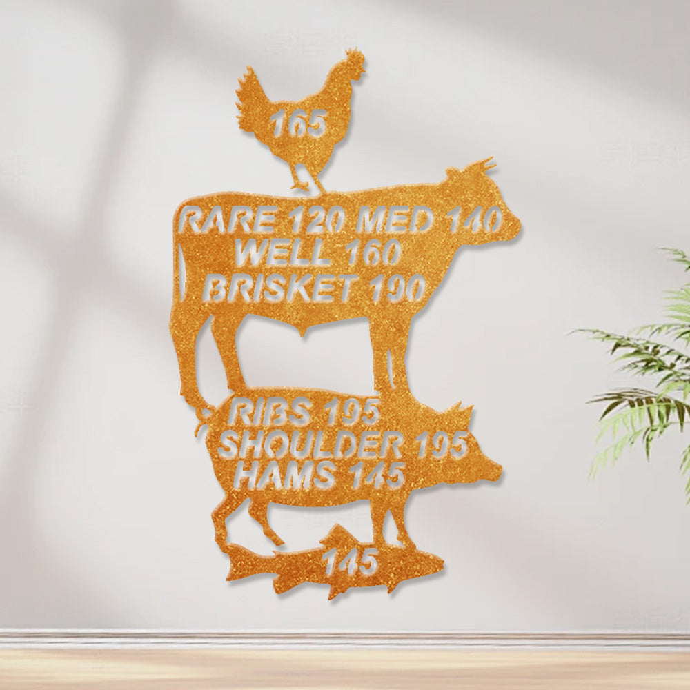 Meat Cooking Temperature Chart Metal Wall Art - Iron BBQ Kitchen Decor
