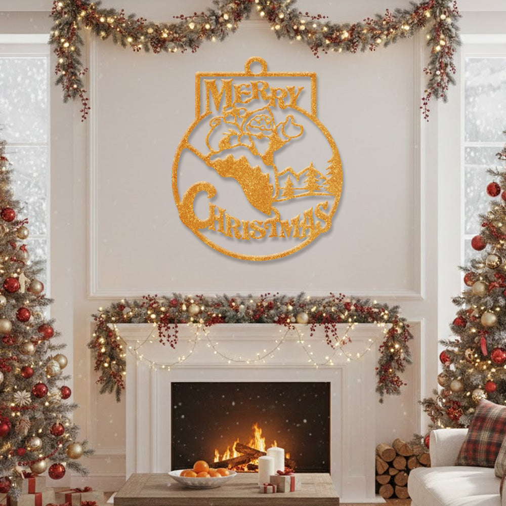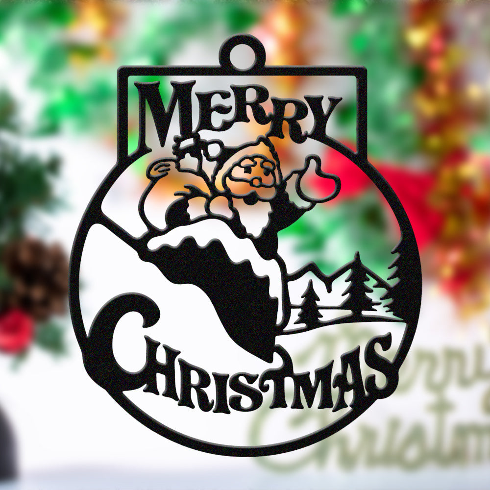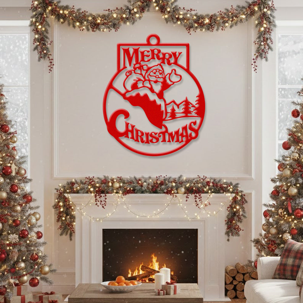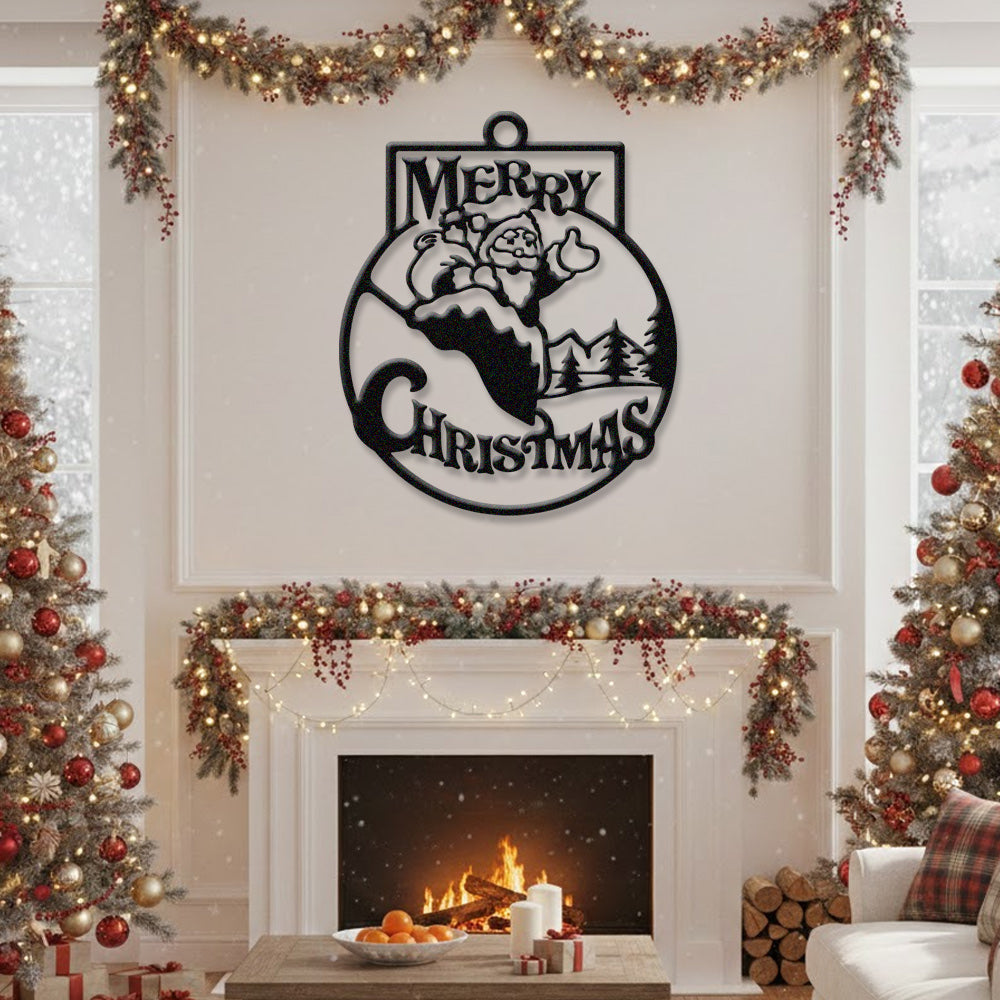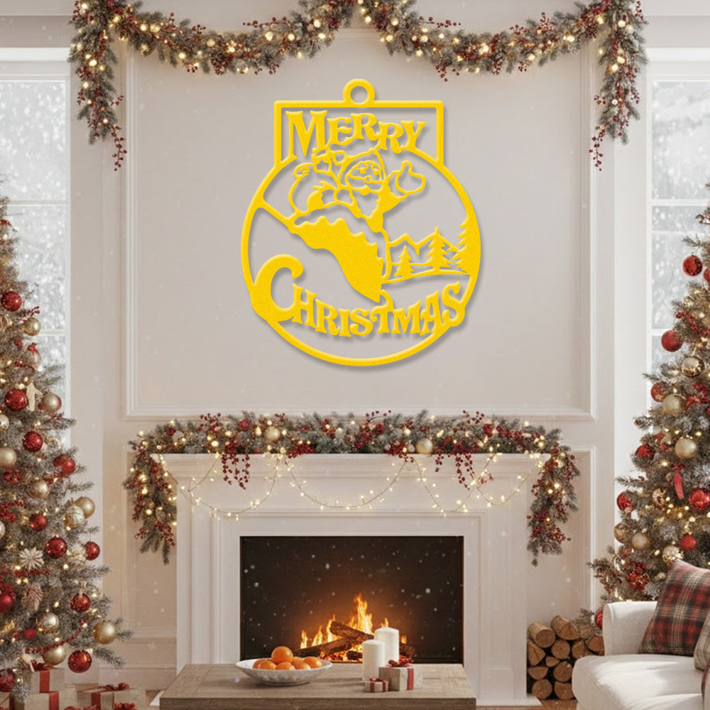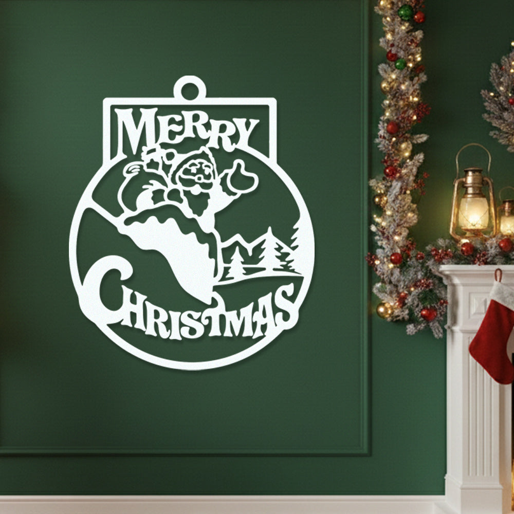 Merry Christmas Metal Wall Art – Santa Snow Scene Holiday Metal Decor Sign