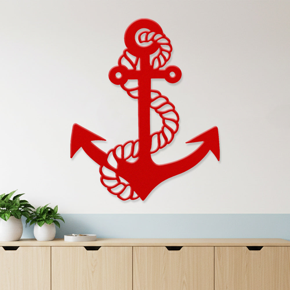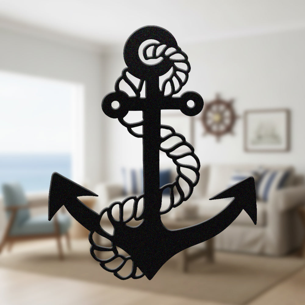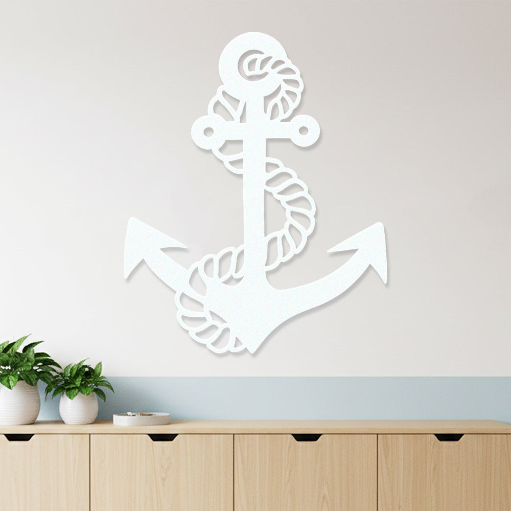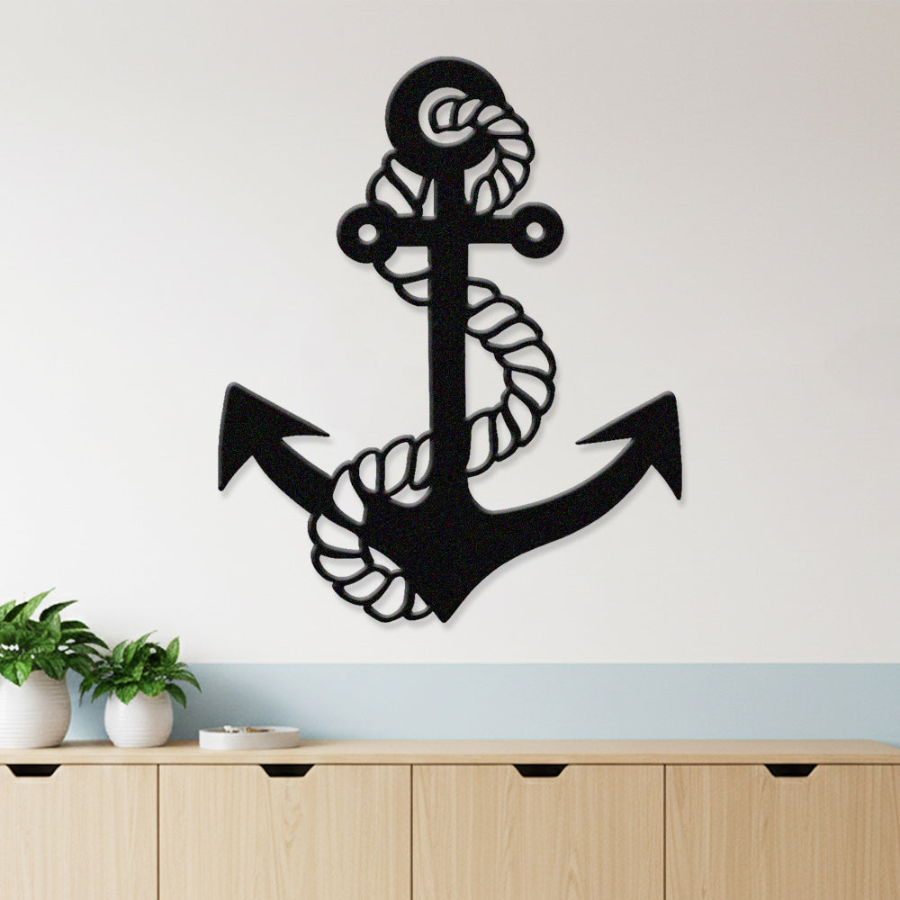 Metal Anchor Wall Art - Iron Sign with Rope Accents for Nautical Decor