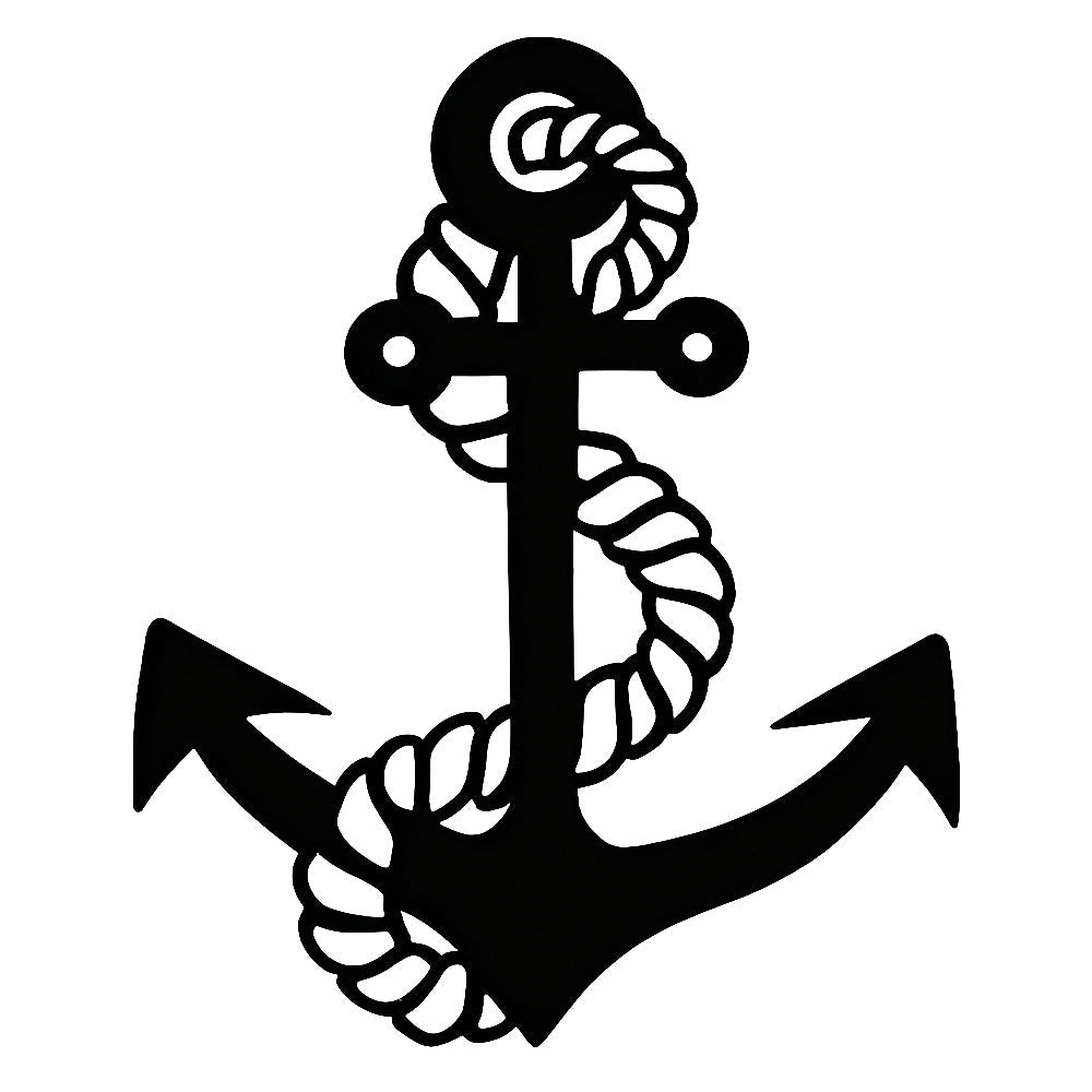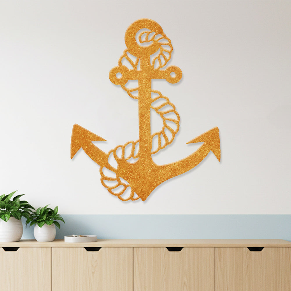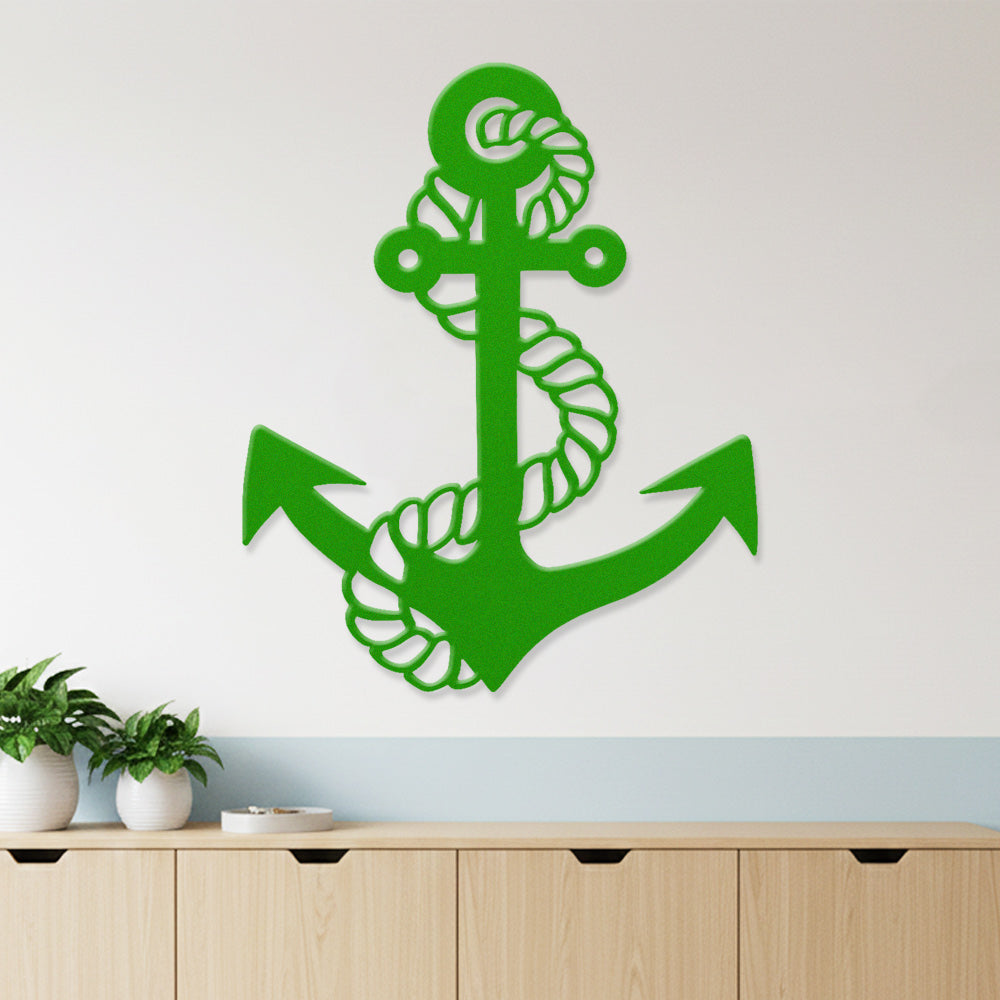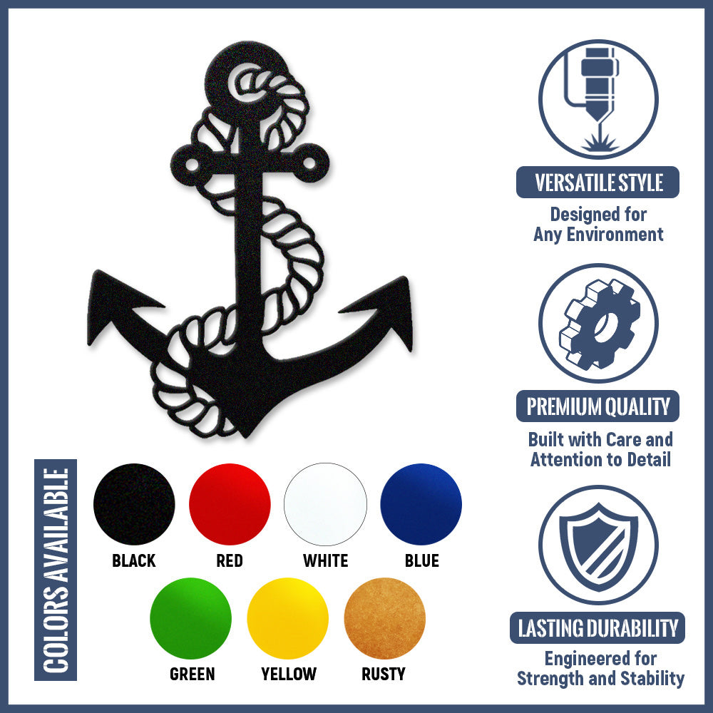 Metal Anchor Wall Art - Iron Sign with Rope Accents for Nautical Decor