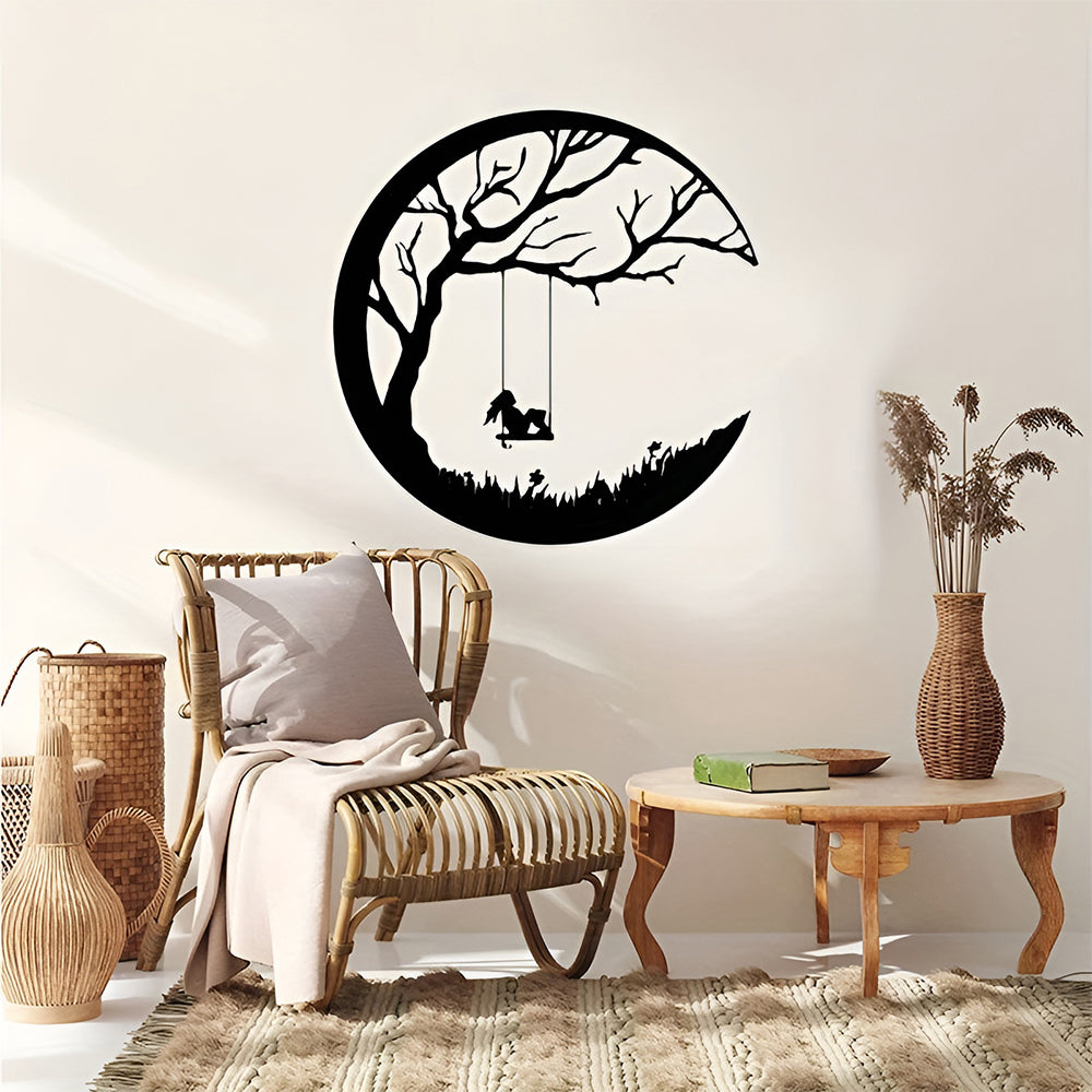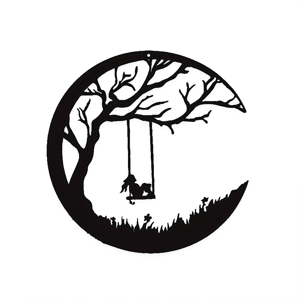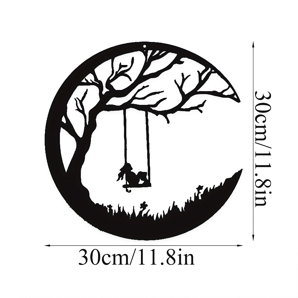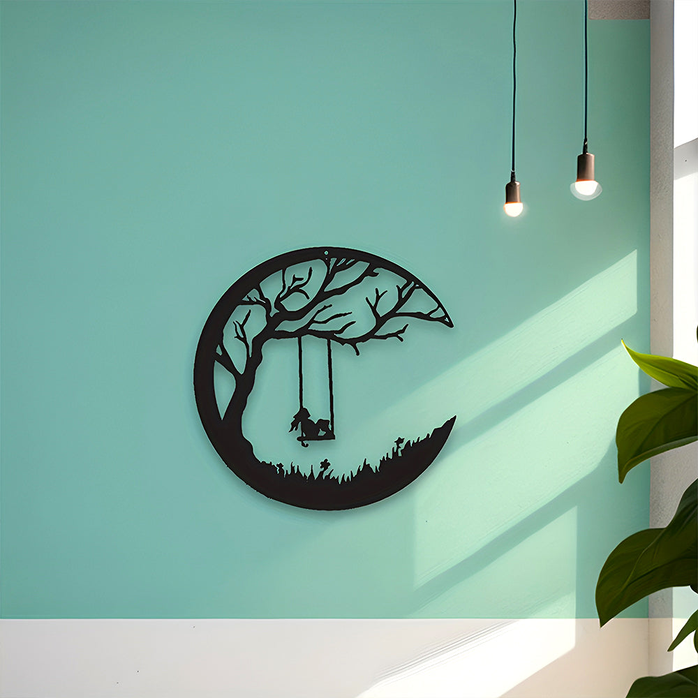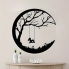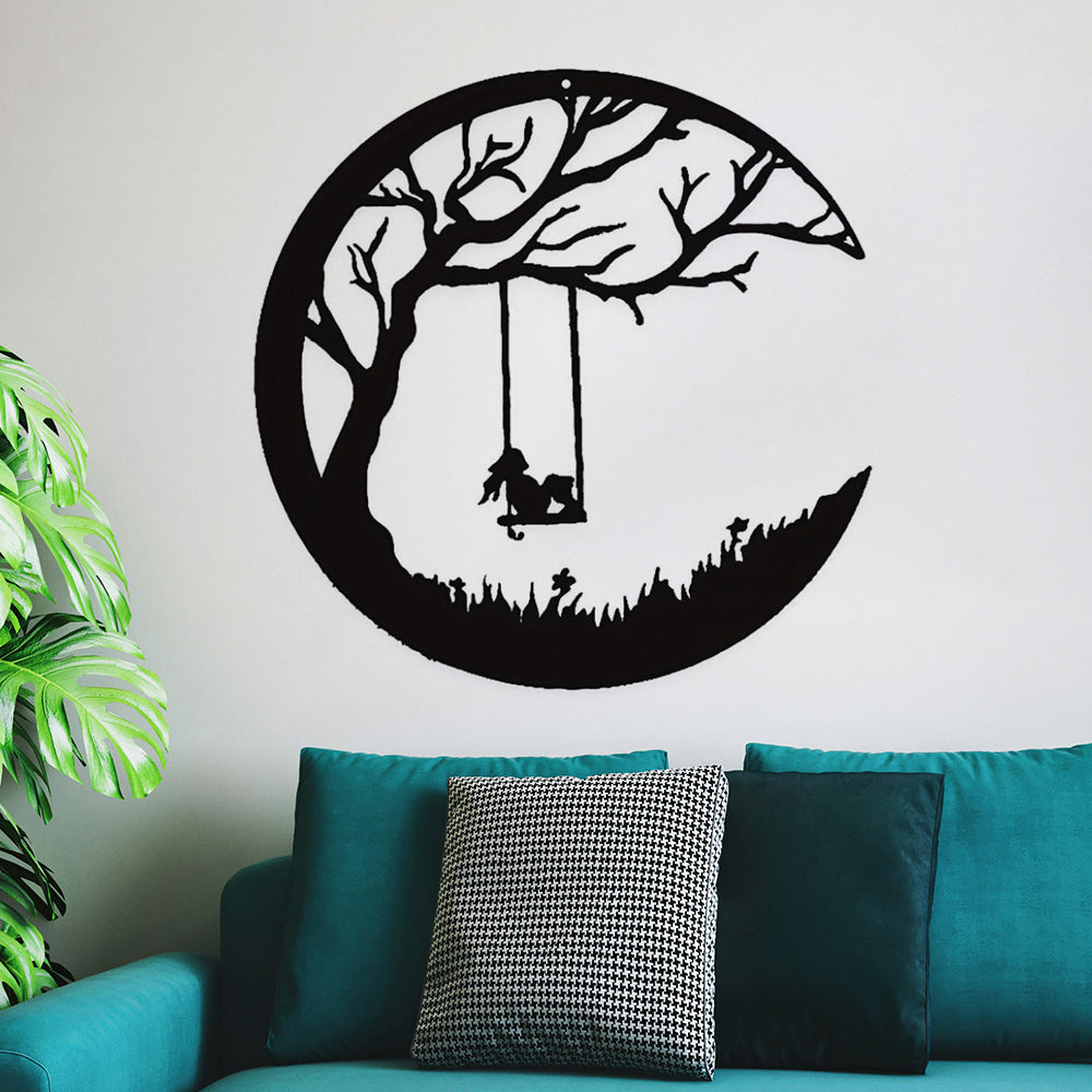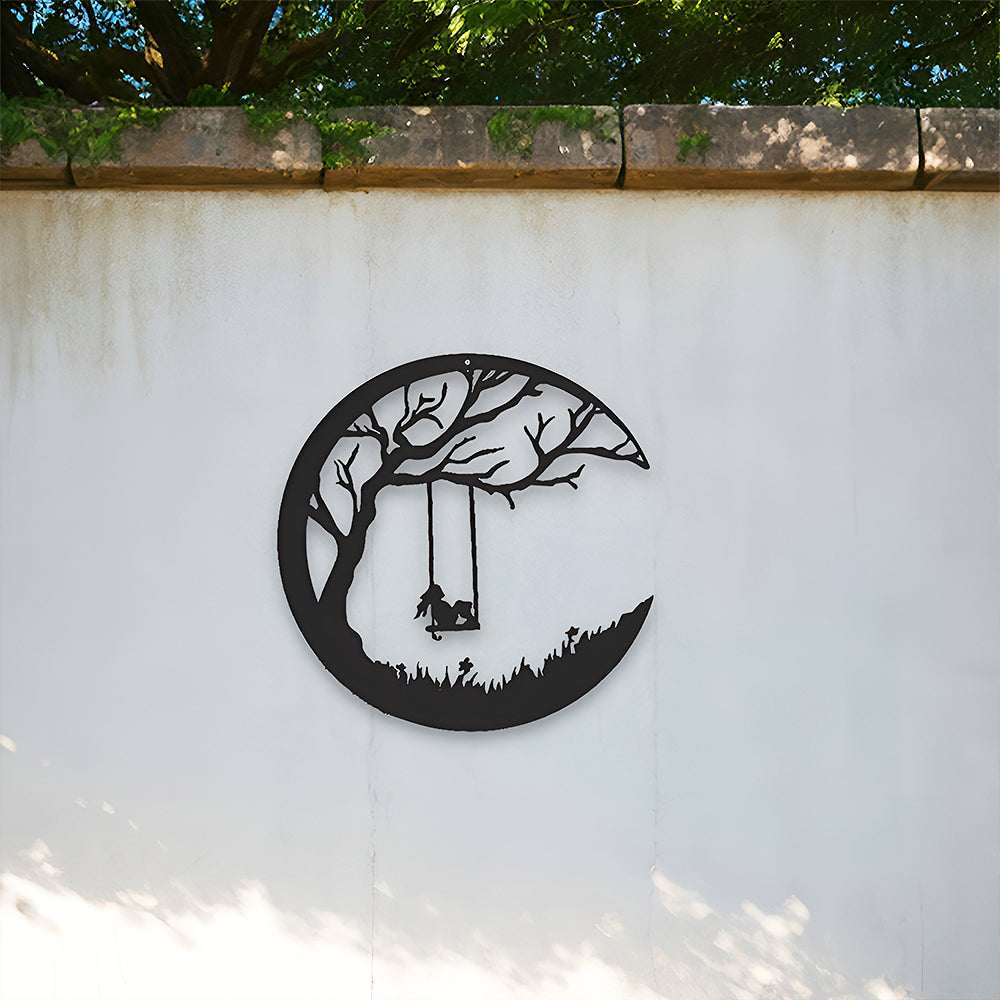 Moon And Lawn Tree With Swing Girl Metal Wall Art Decoration