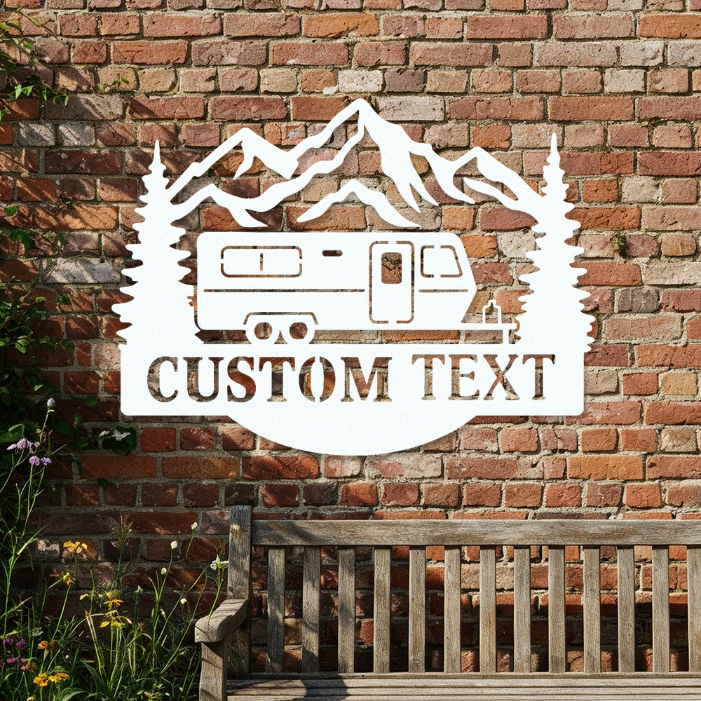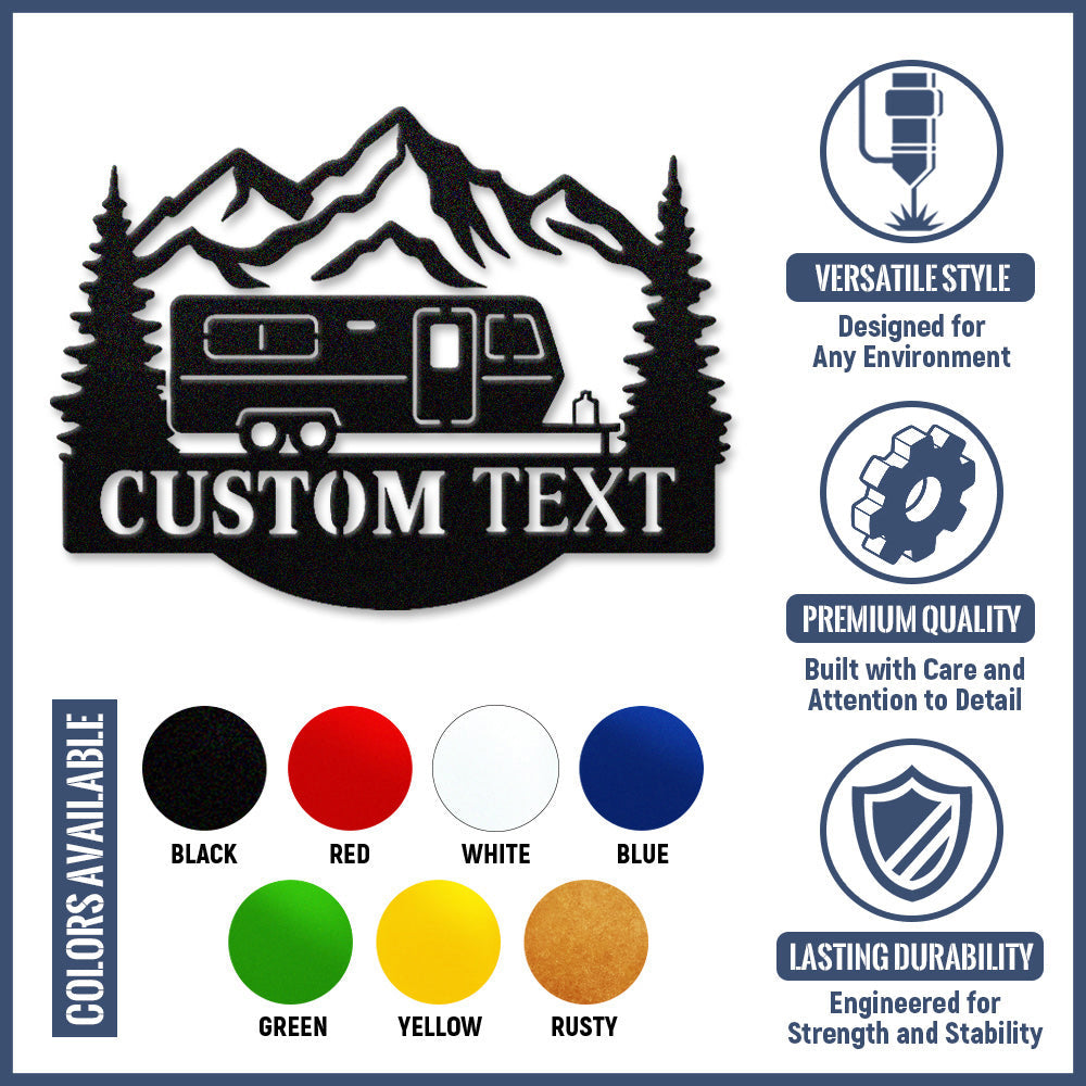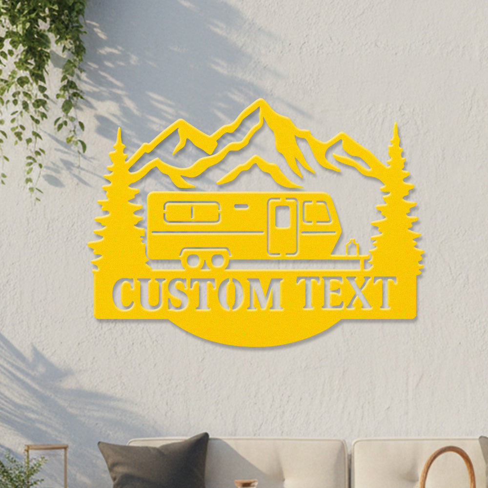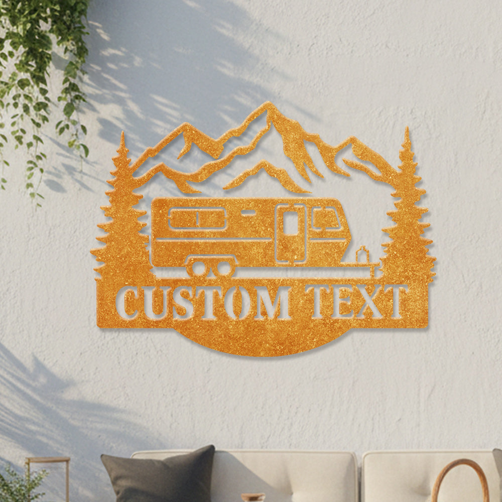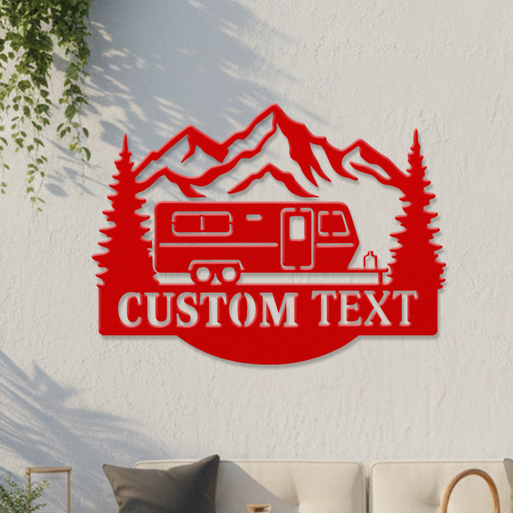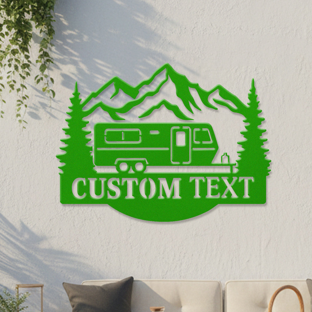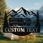 Mountain RV Camping Metal Wall Art – Rustic Trailer Outdoor Decor Sign