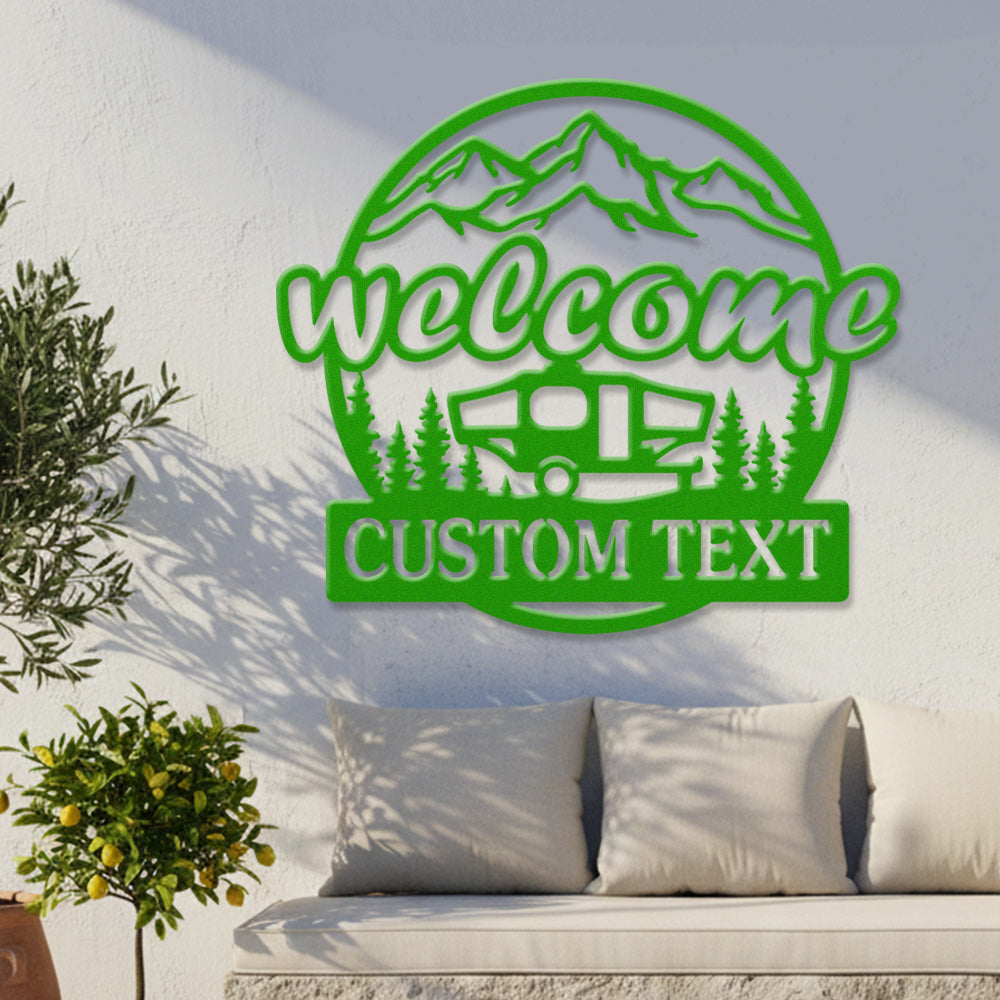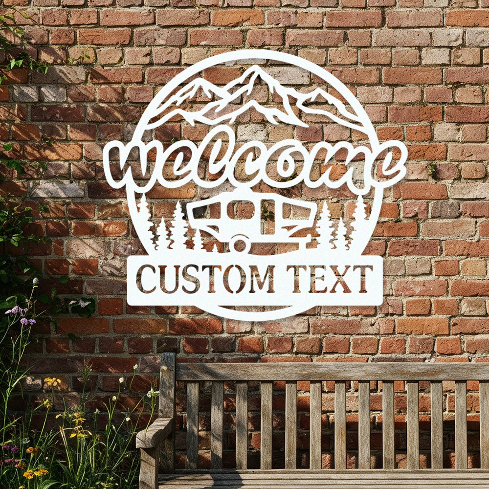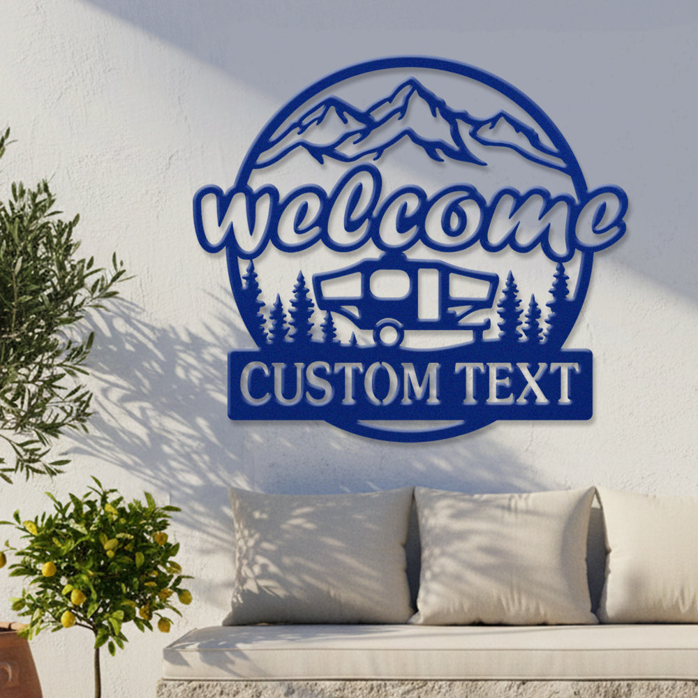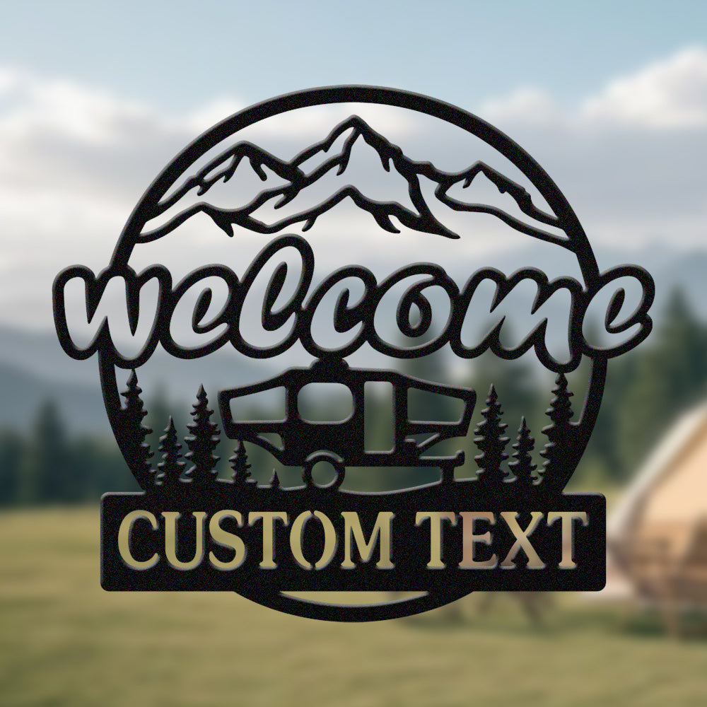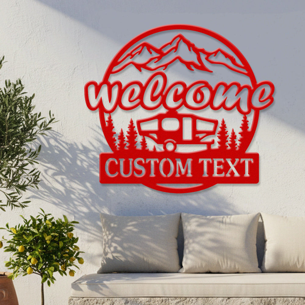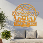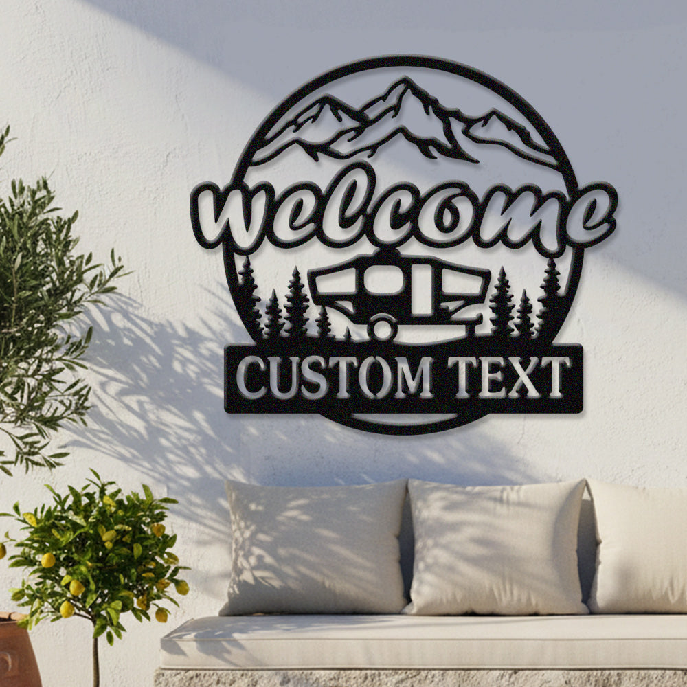 Mountain RV Welcome Metal Wall Art – Rustic Camping Trailer Outdoor Decor