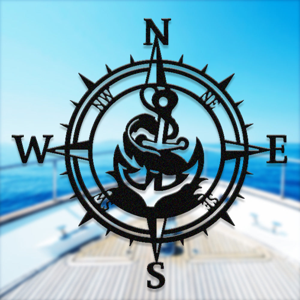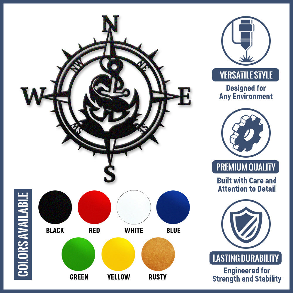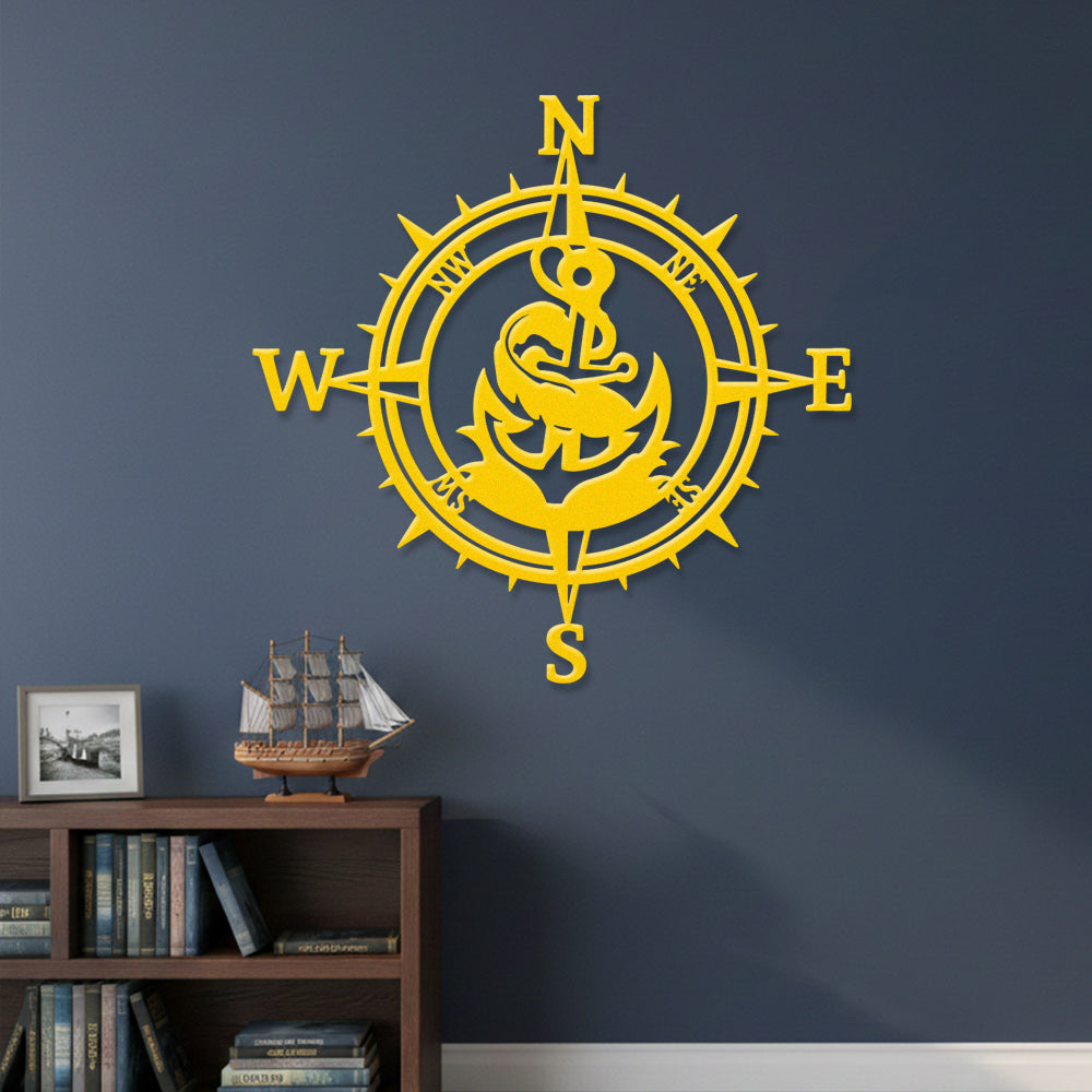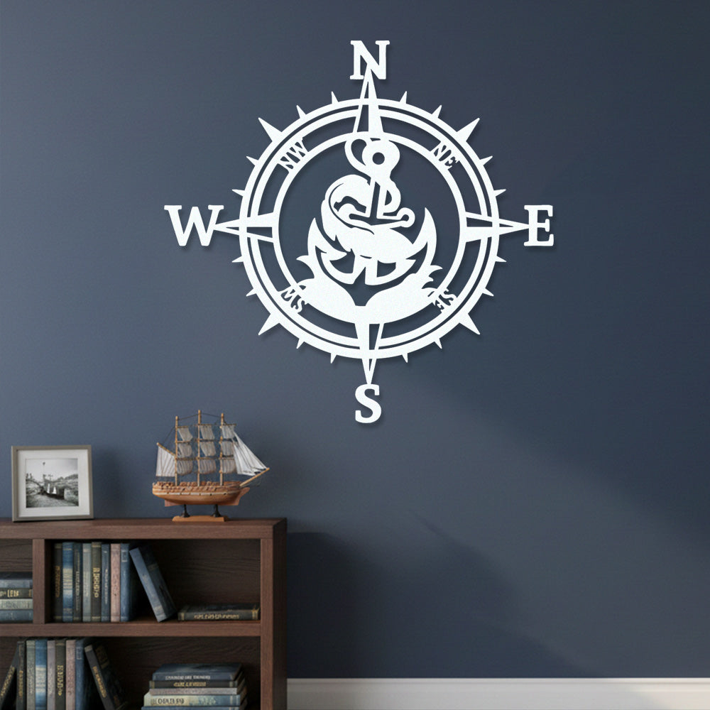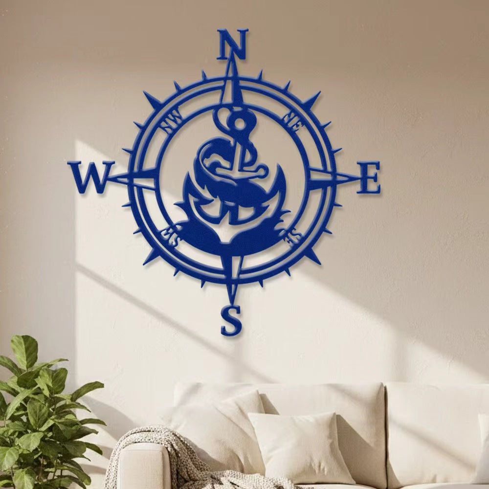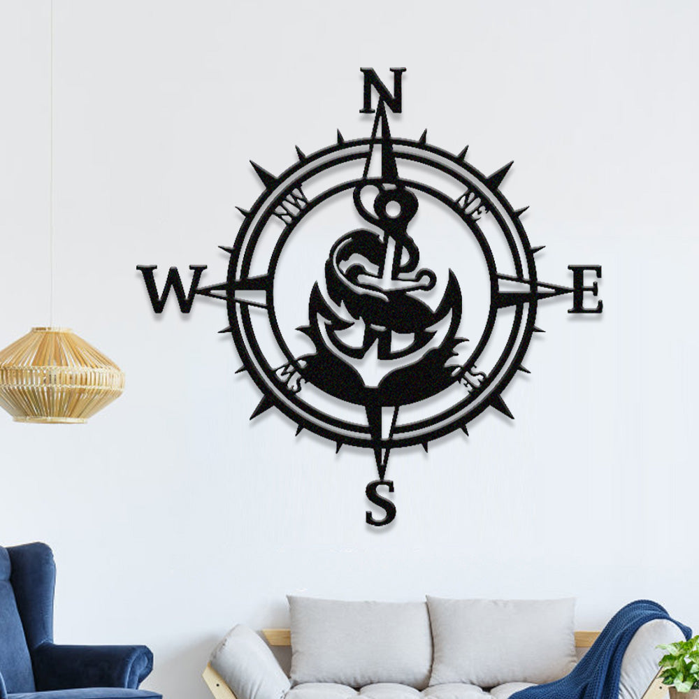 Nautical Compass Anchor Metal Wall Art – Coastal Home Decor