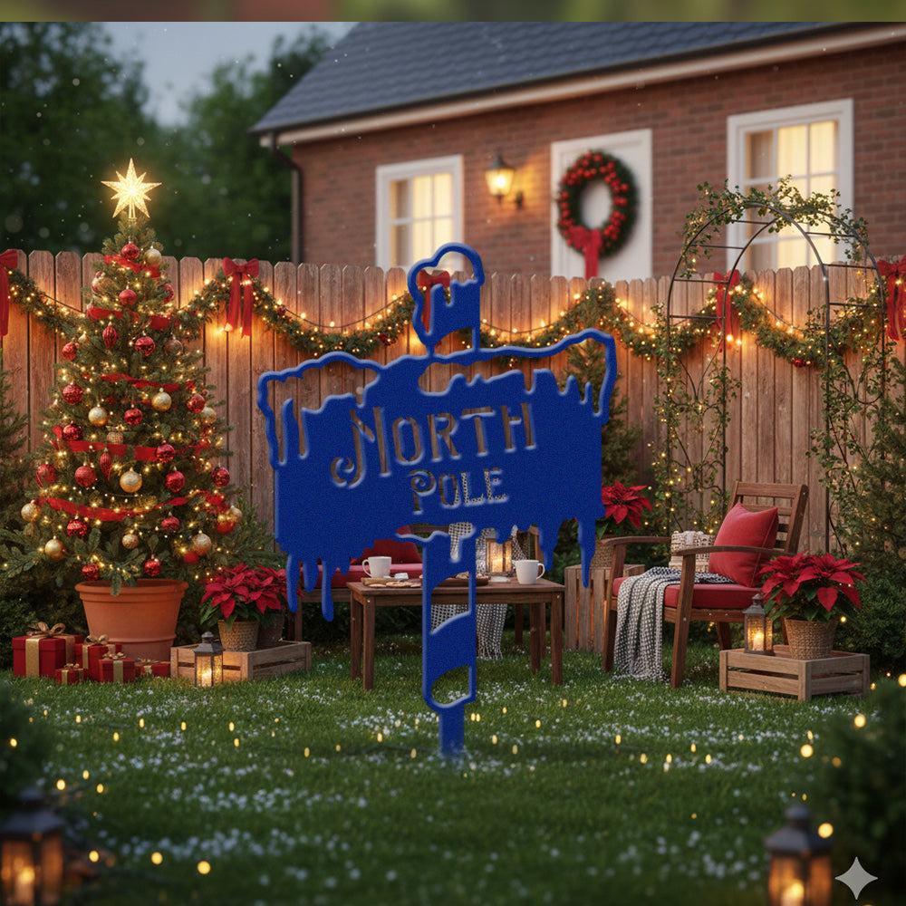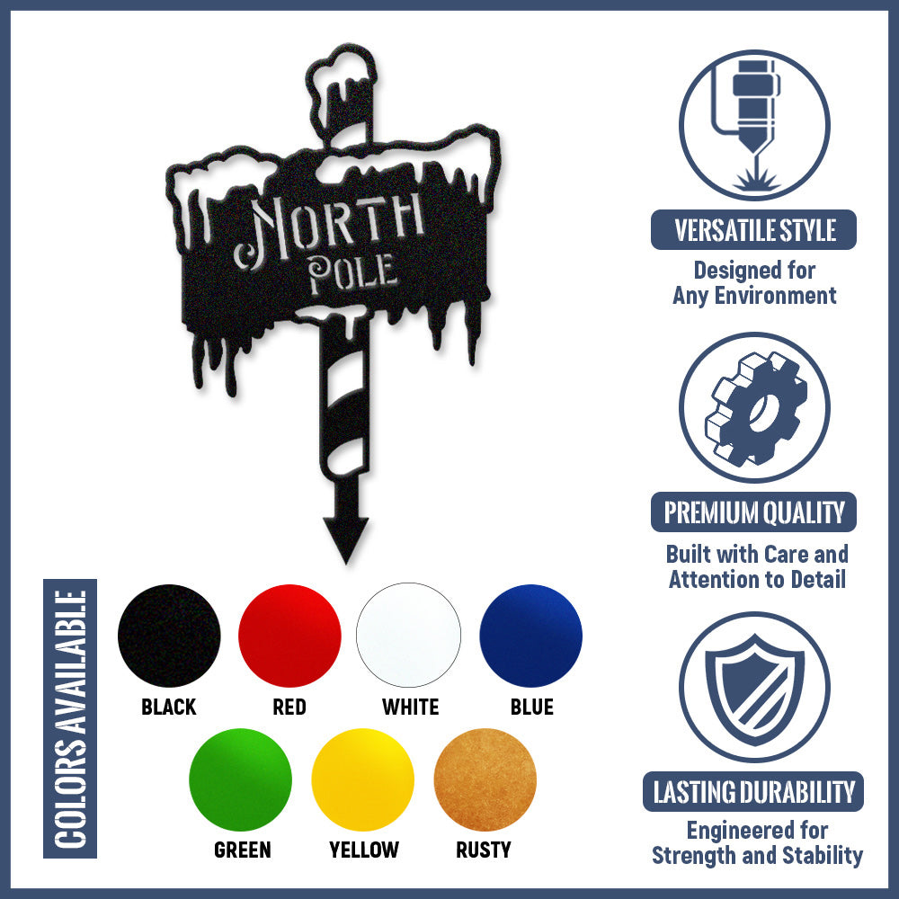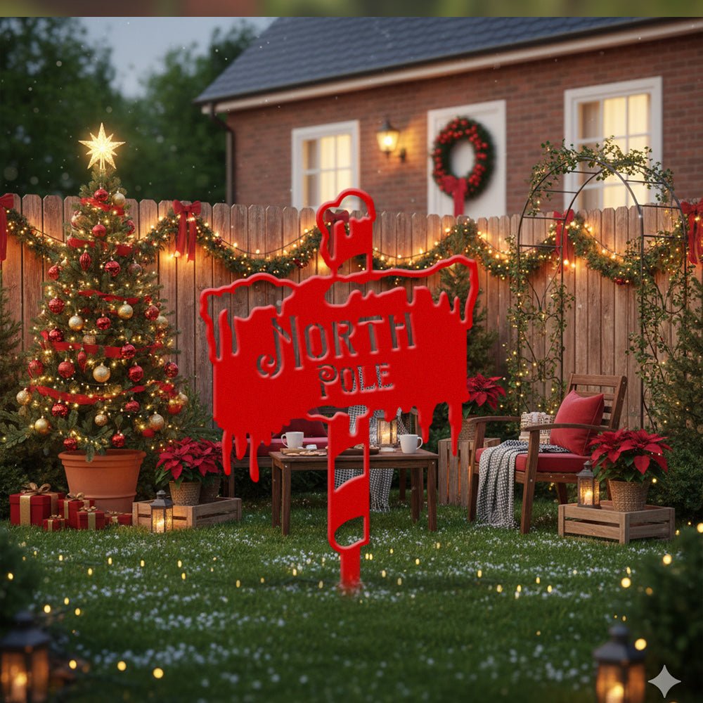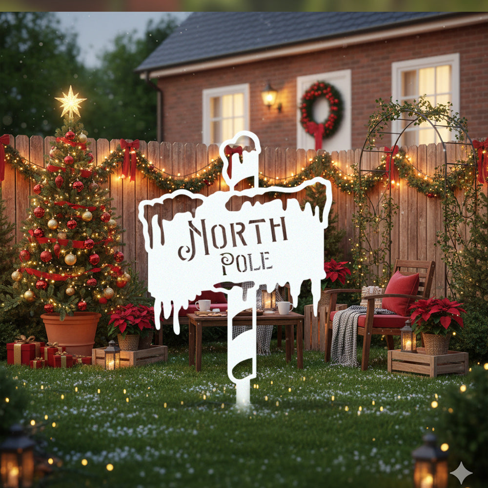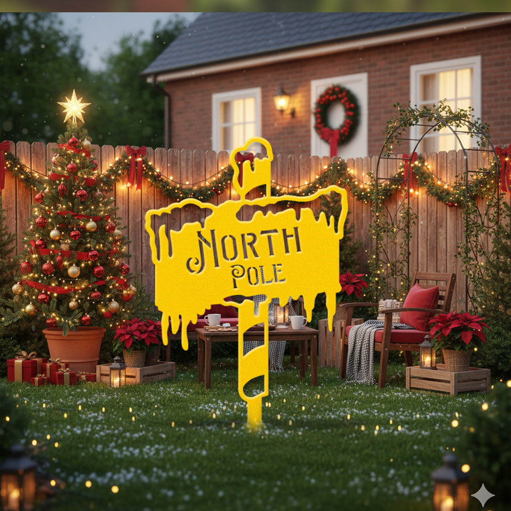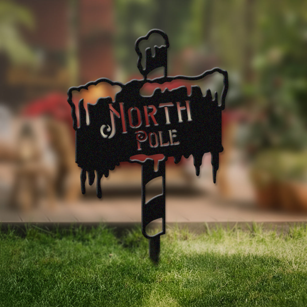 North Pole Metal Wall Art Sign – Winter Holiday Metal Decor