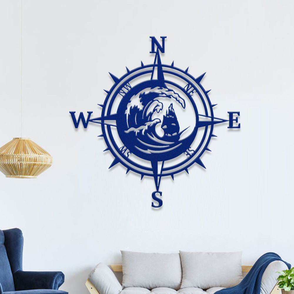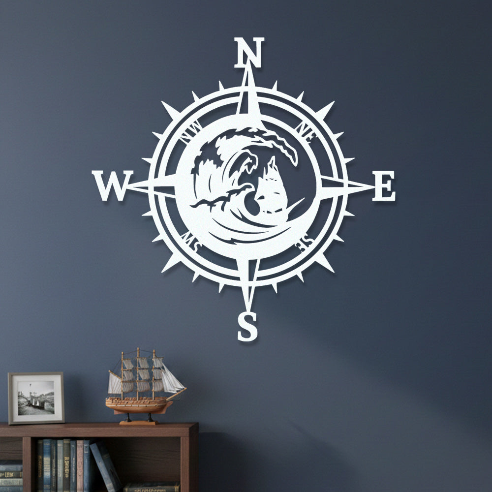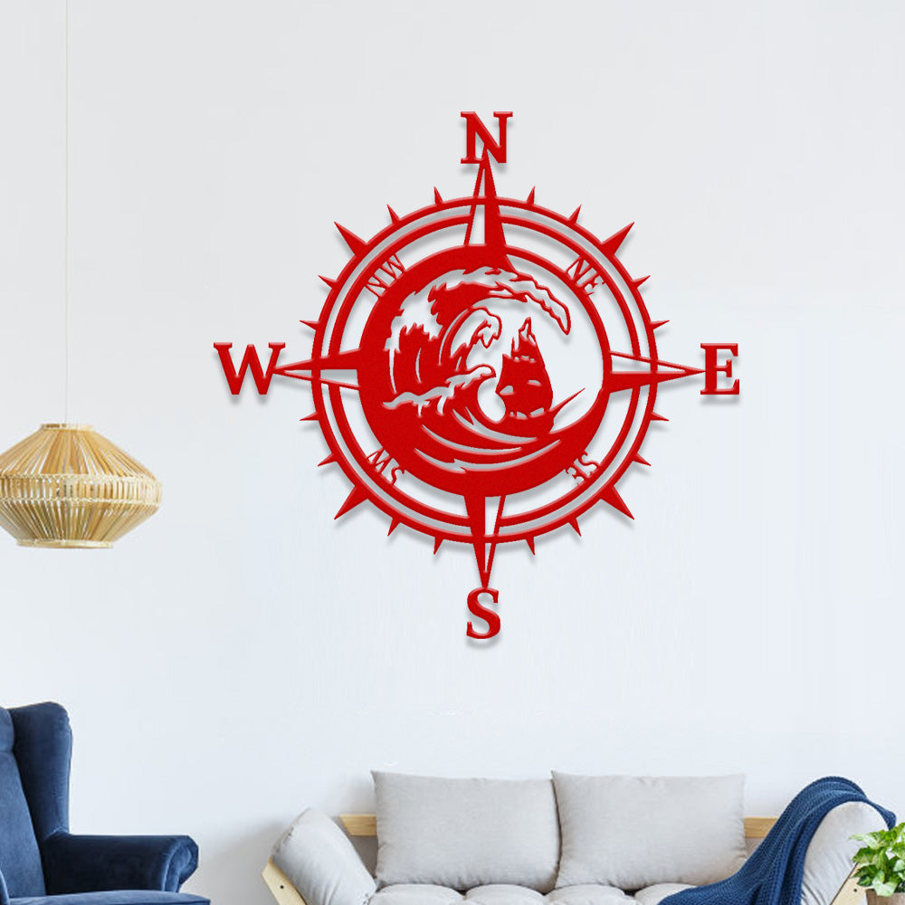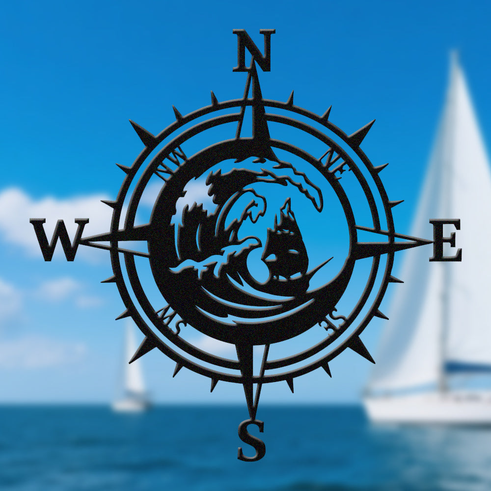 Ocean Wave Sailboat Compass Metal Wall Art – Nautical Iron Decor