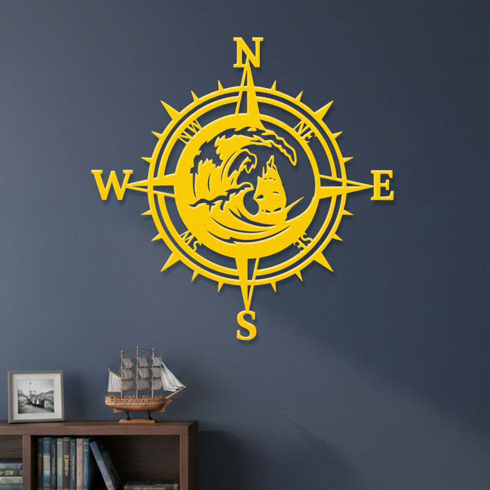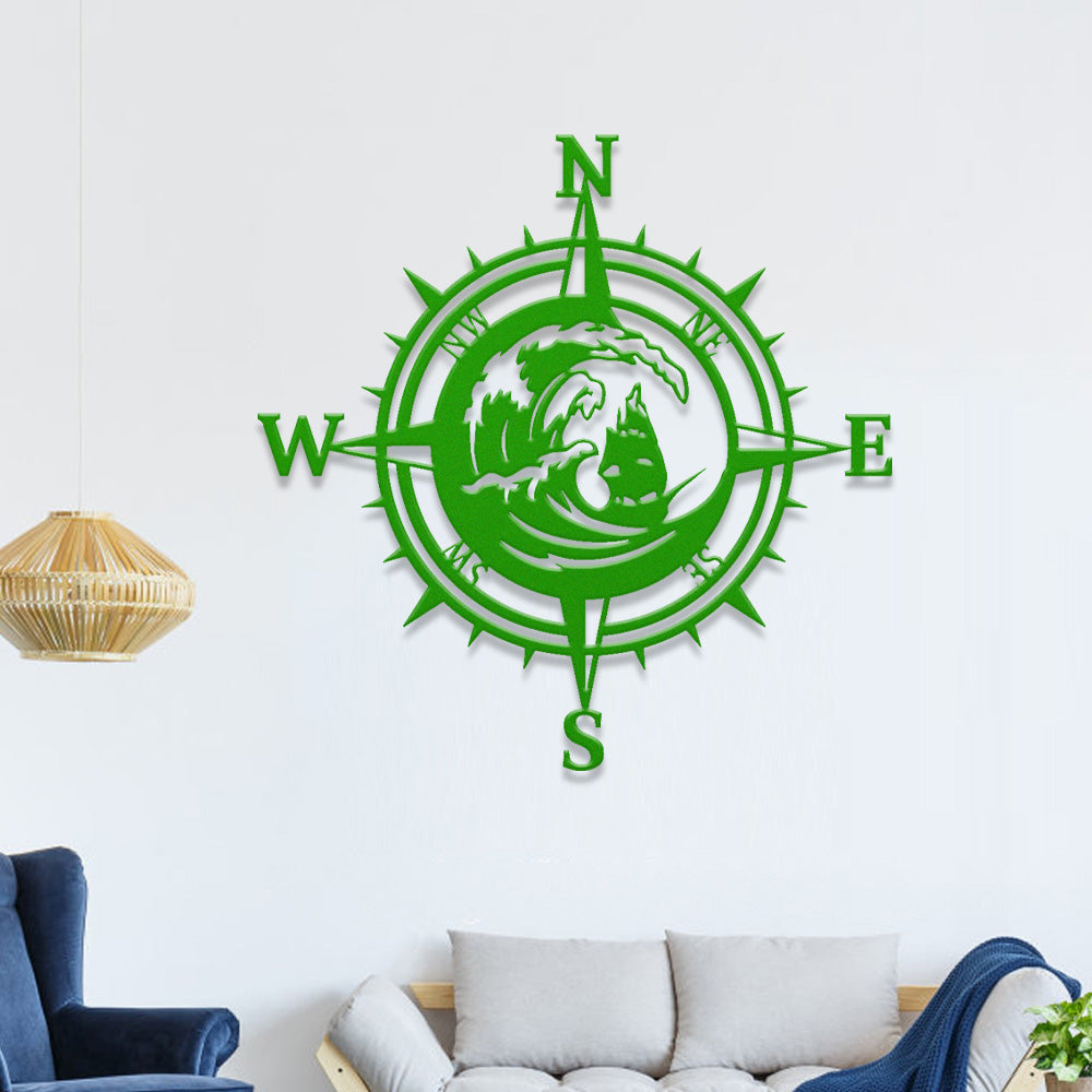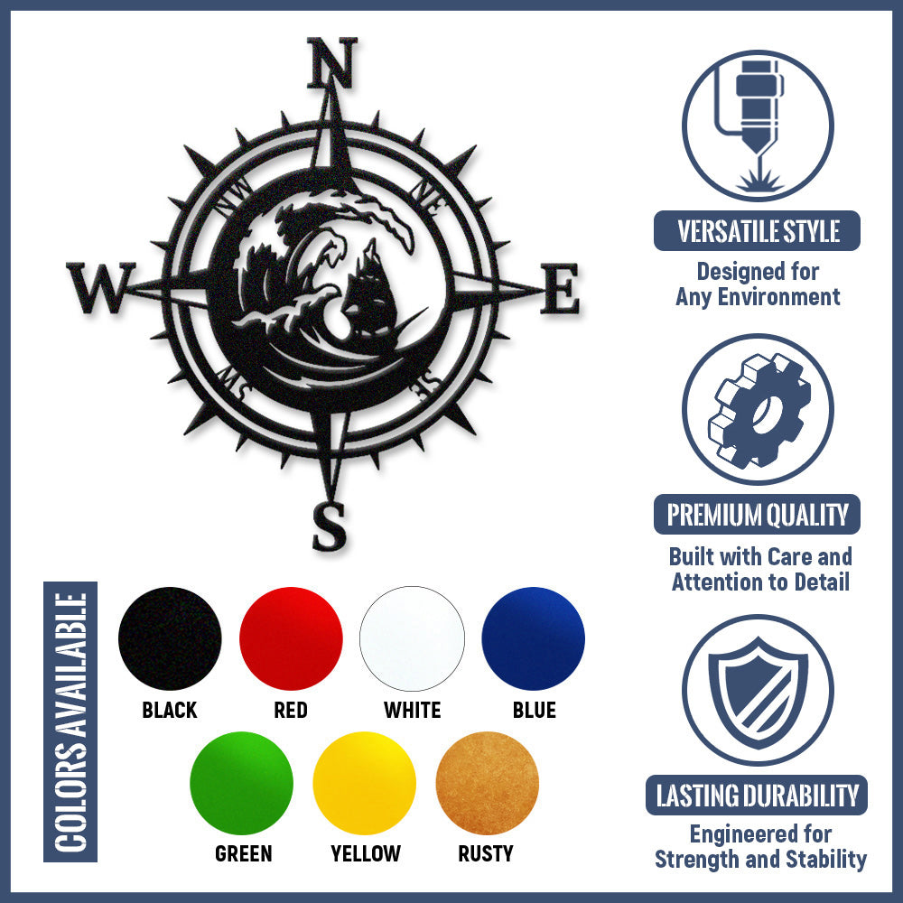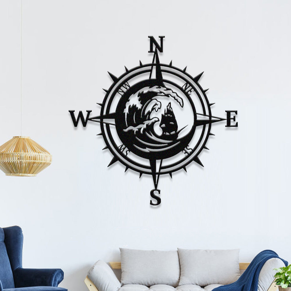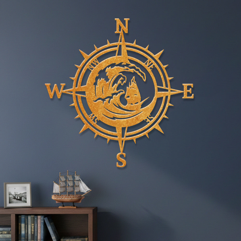 Ocean Wave Sailboat Compass Metal Wall Art – Nautical Iron Decor