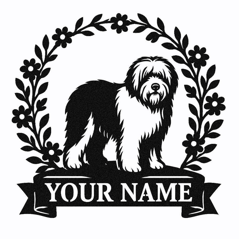 Old English Sheepdog Wreath Metal Wall Art Dog Lover Personalized Memorial Metal Sign