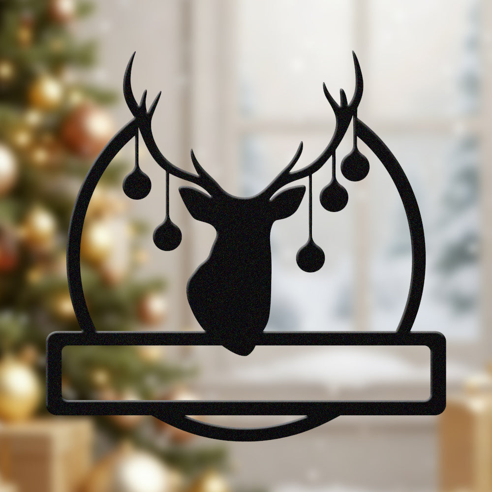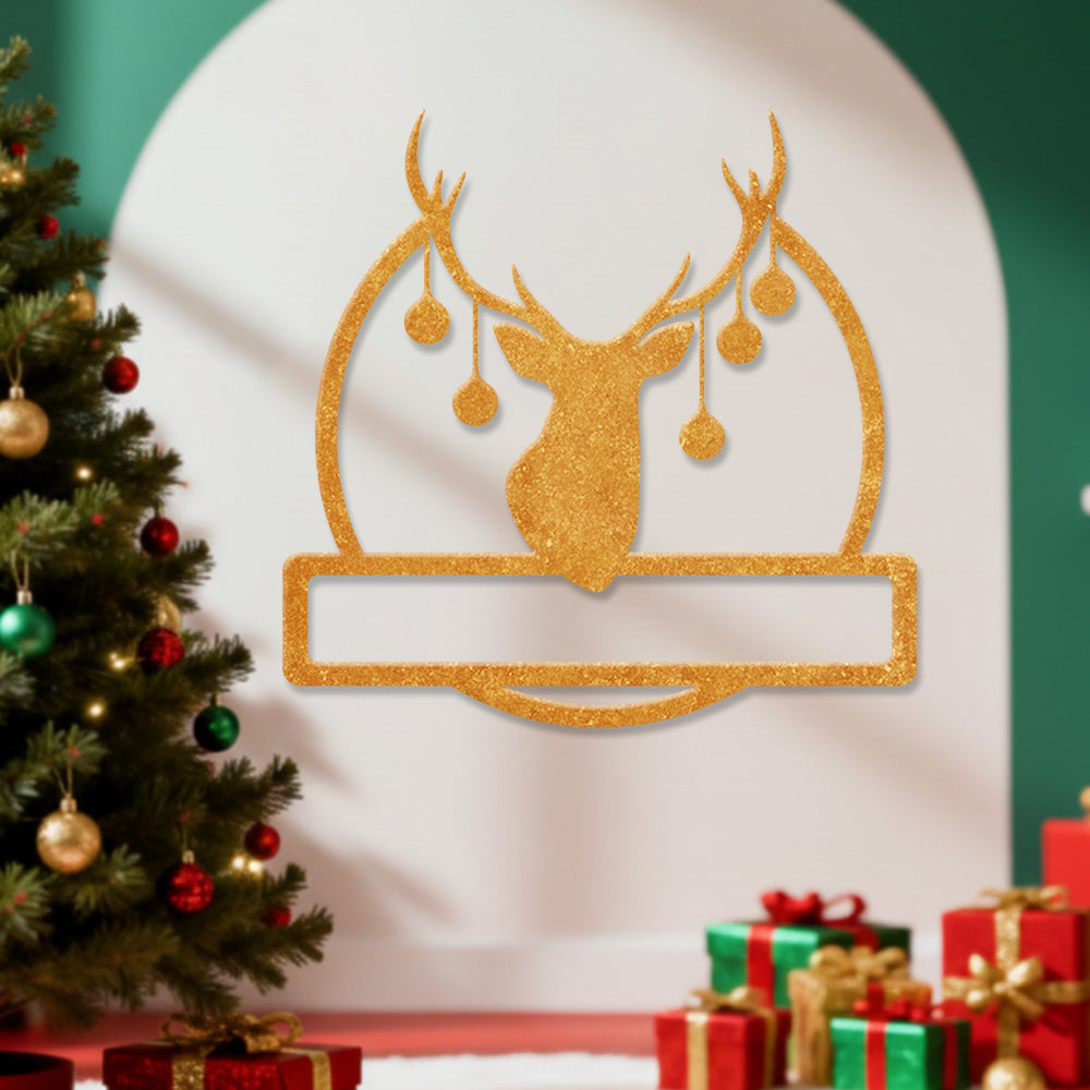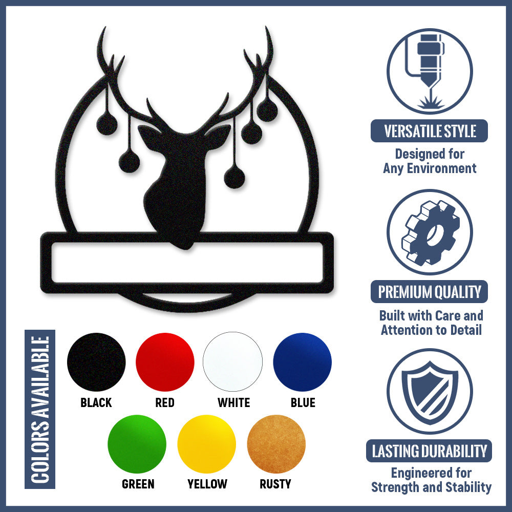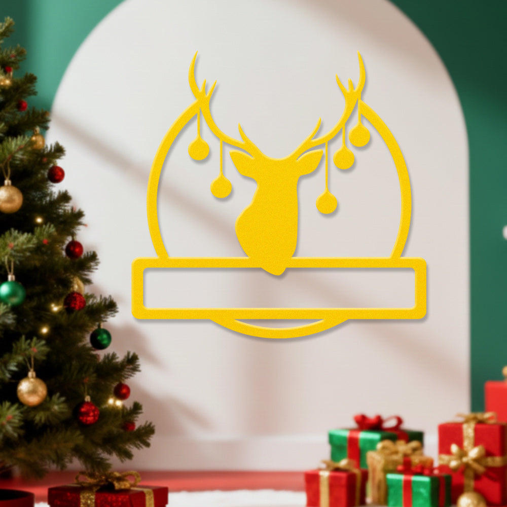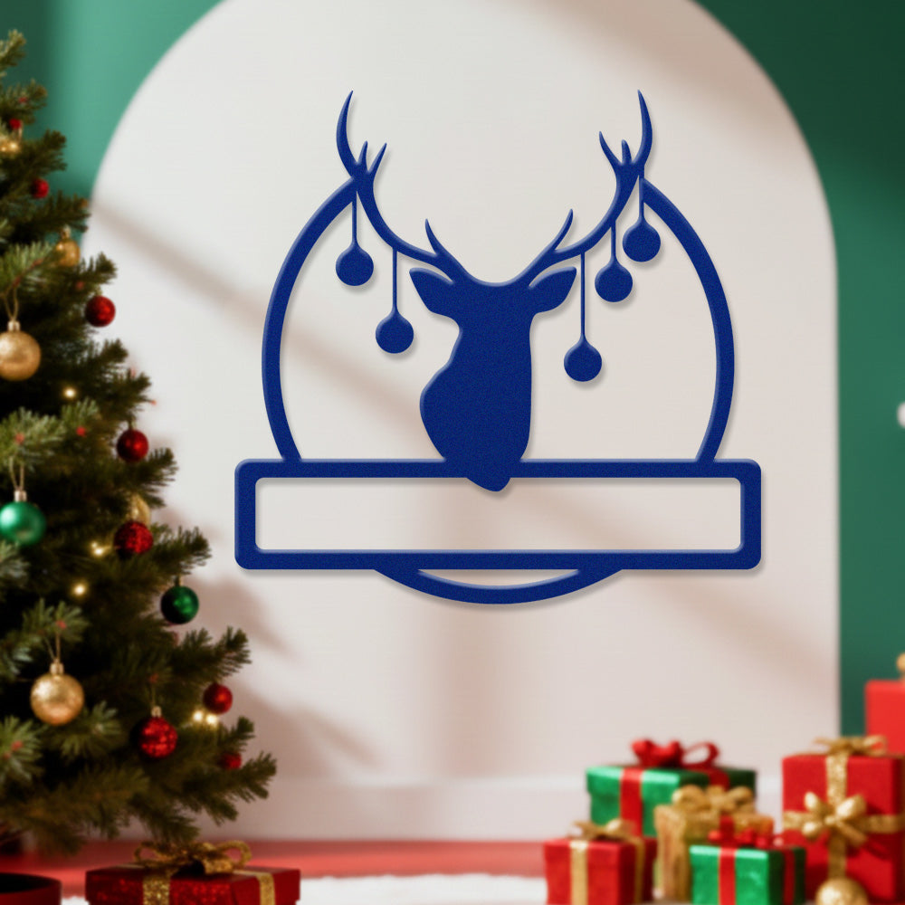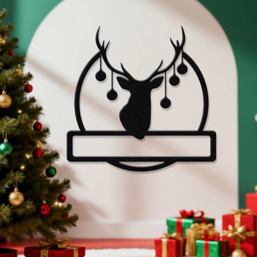 Personalized Reindeer Metal Wall Art – Christmas Deer Head Custom Metal Sign Decor