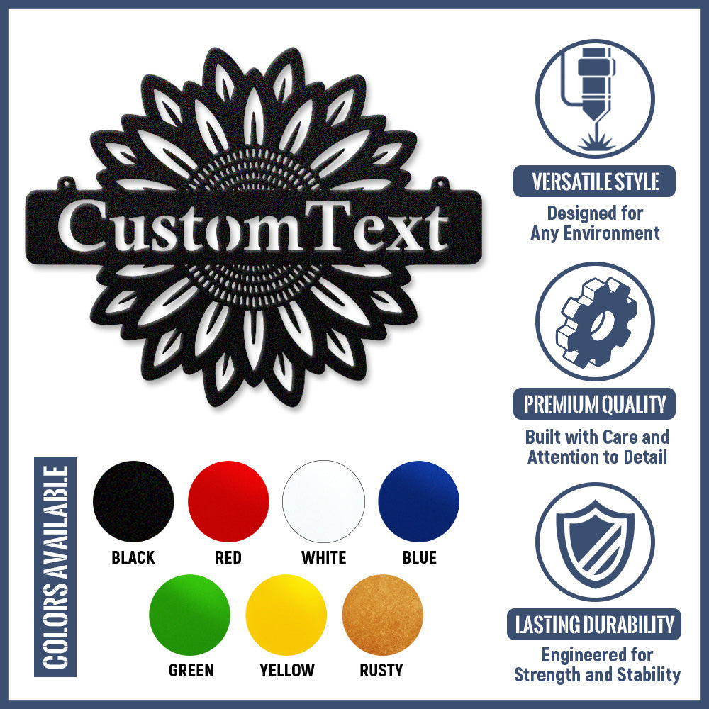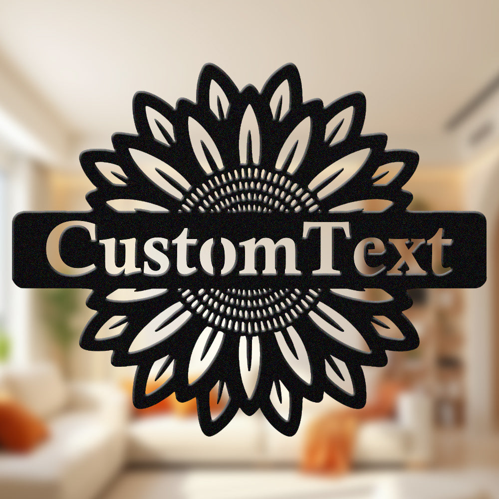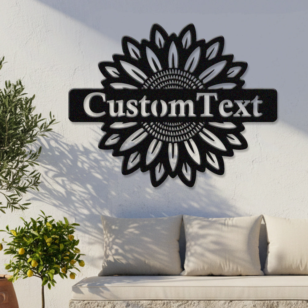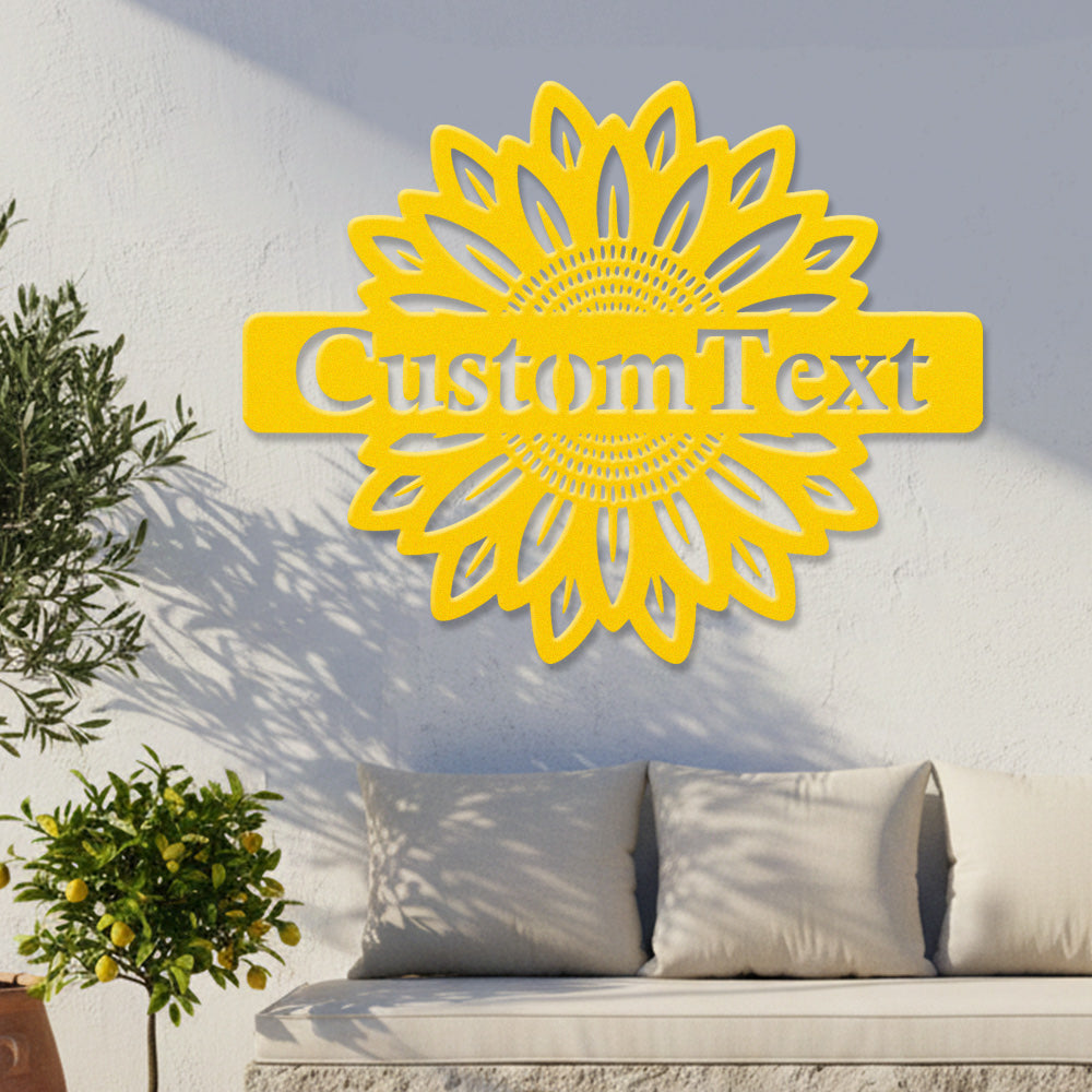 Personalized Sunflower Metal Wall Art – Custom Text Iron Metal Door Sign Decor