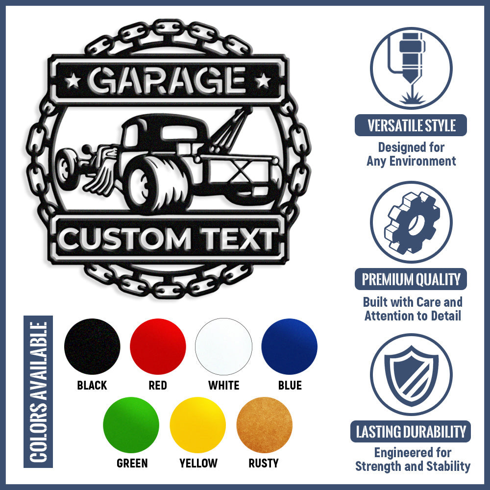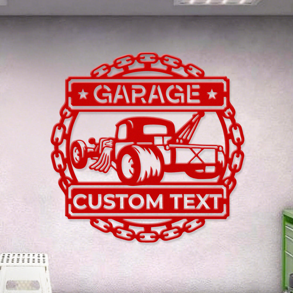Personalized Tow Truck Garage Metal Wall Art Sign