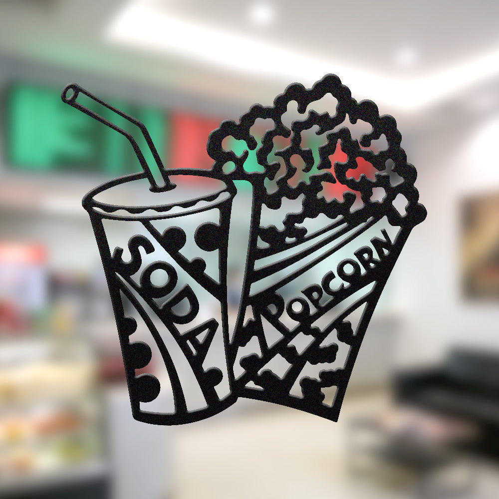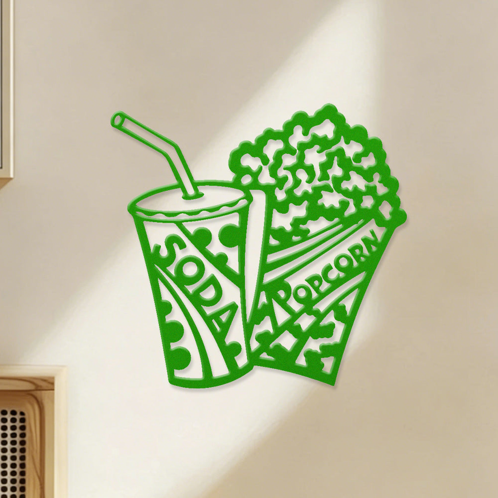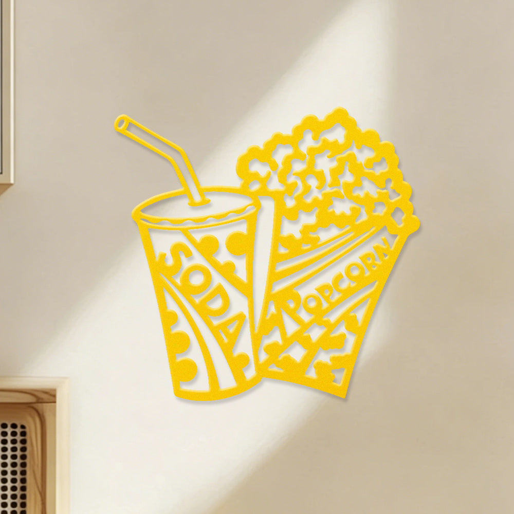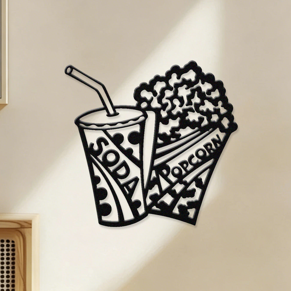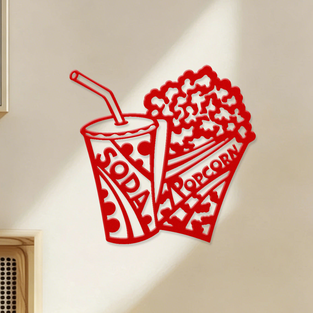 Popcorn & Cola Metal Wall Art – Home Theater Movie Night Wall Decor