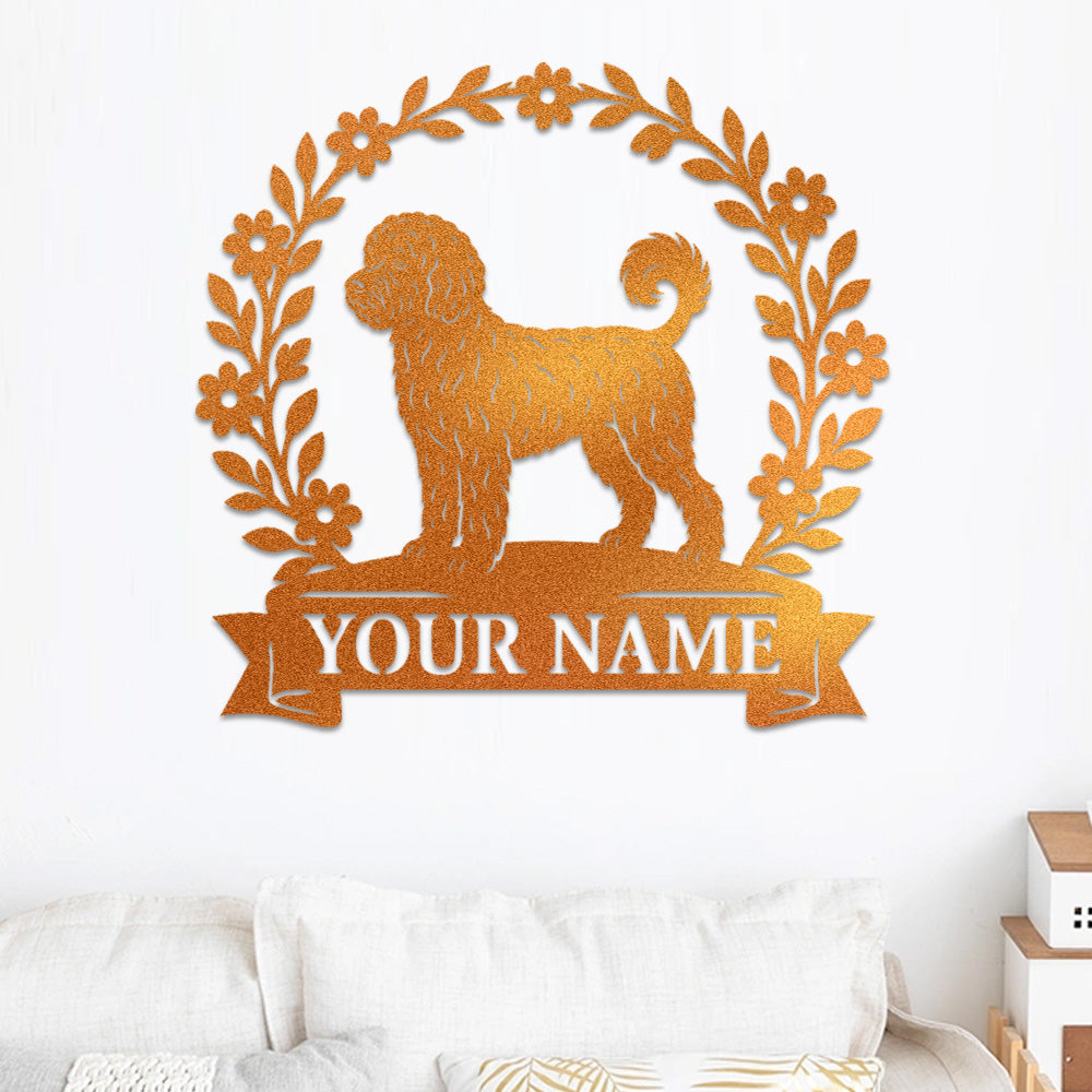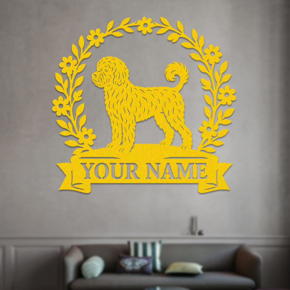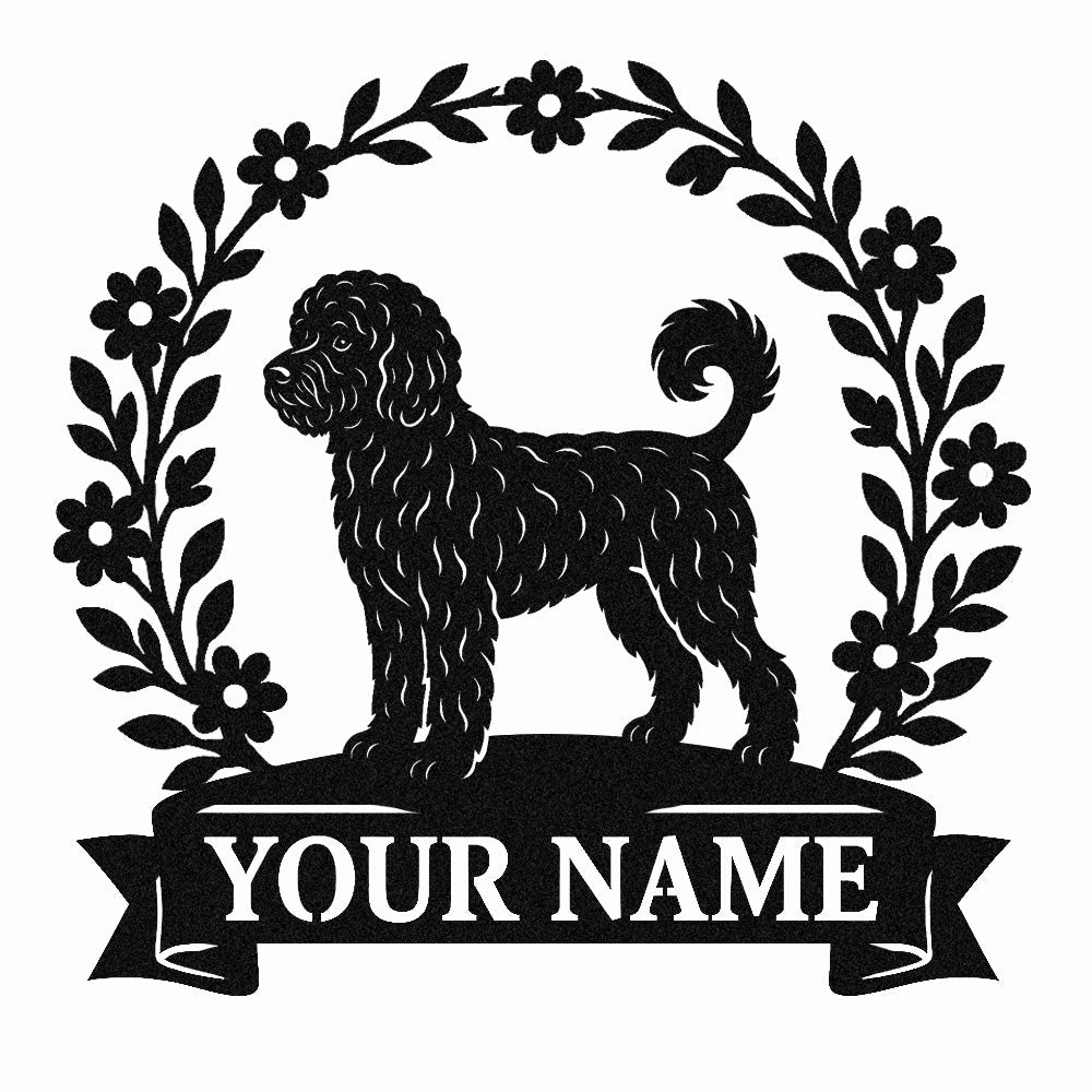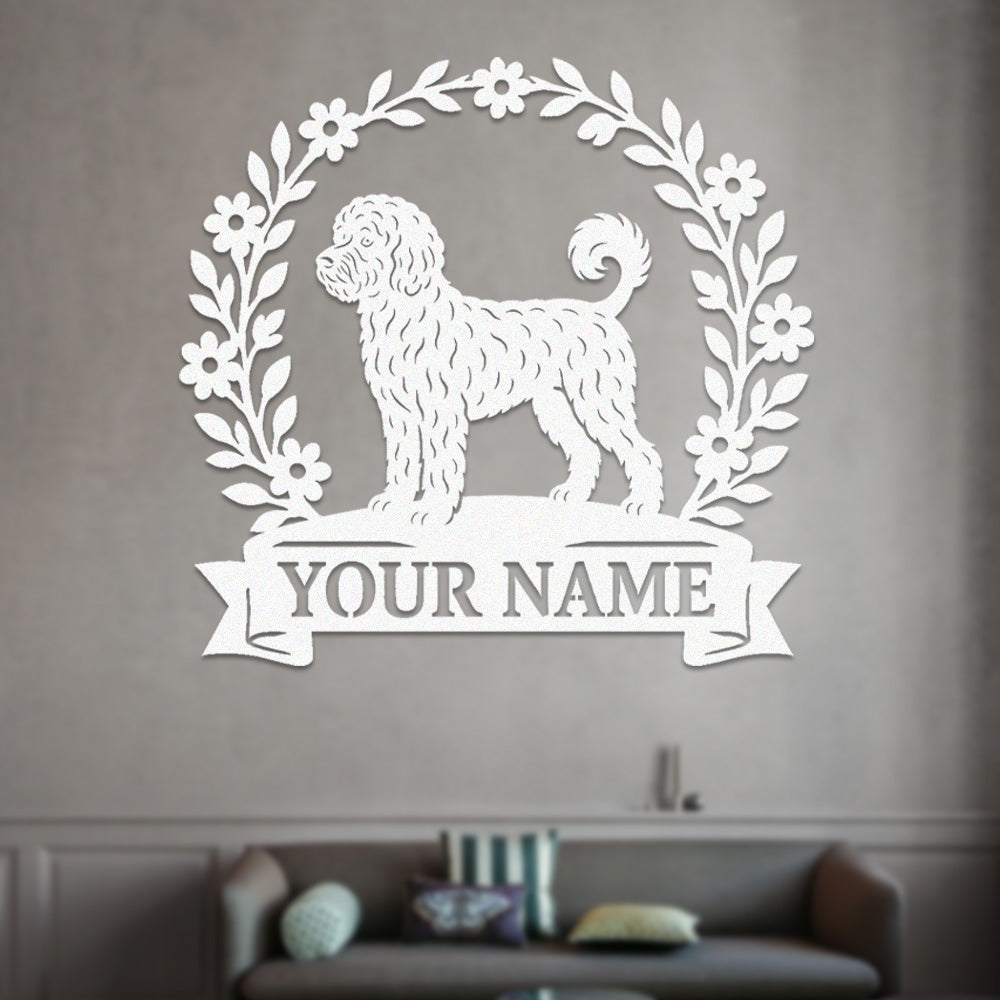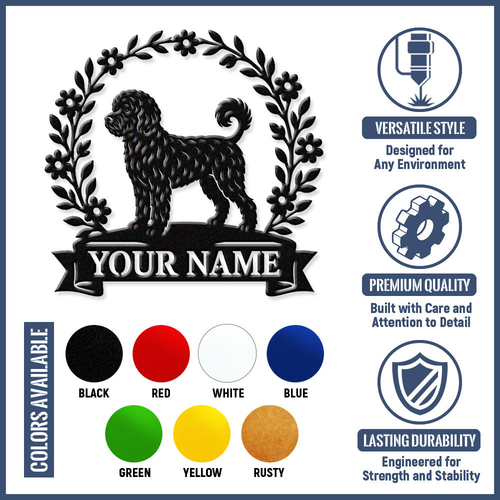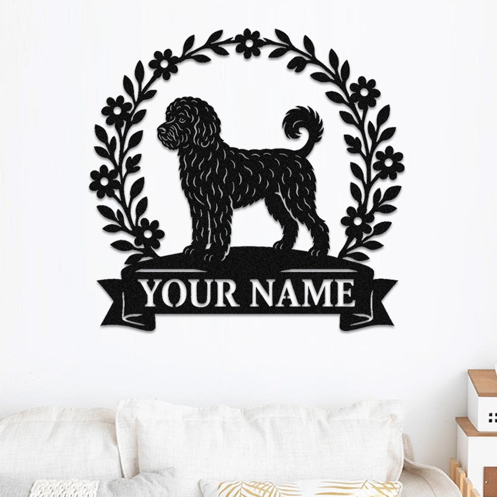 Portuguese Water Dog Wreath Metal Wall Art Dog Lover Personalized Memorial Metal Sign