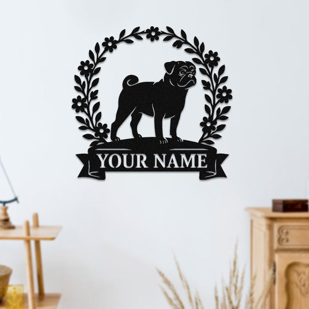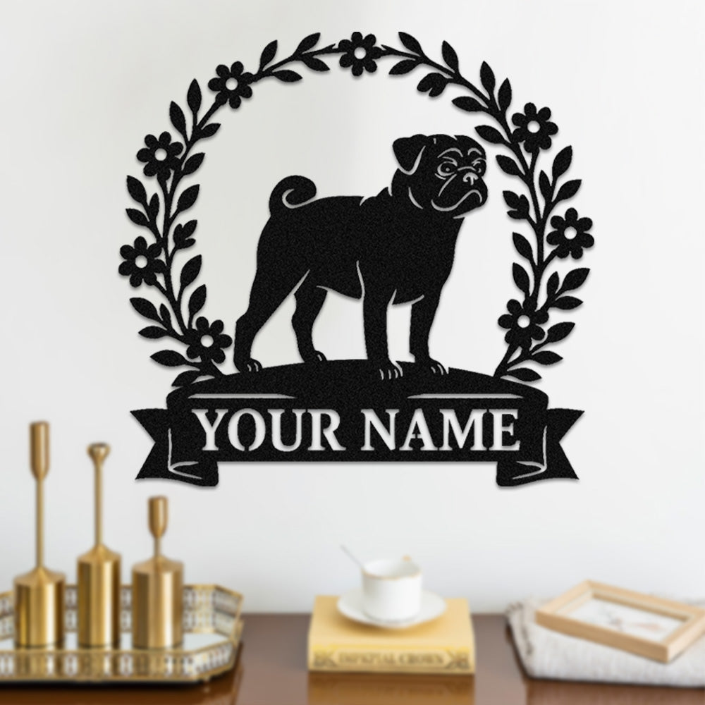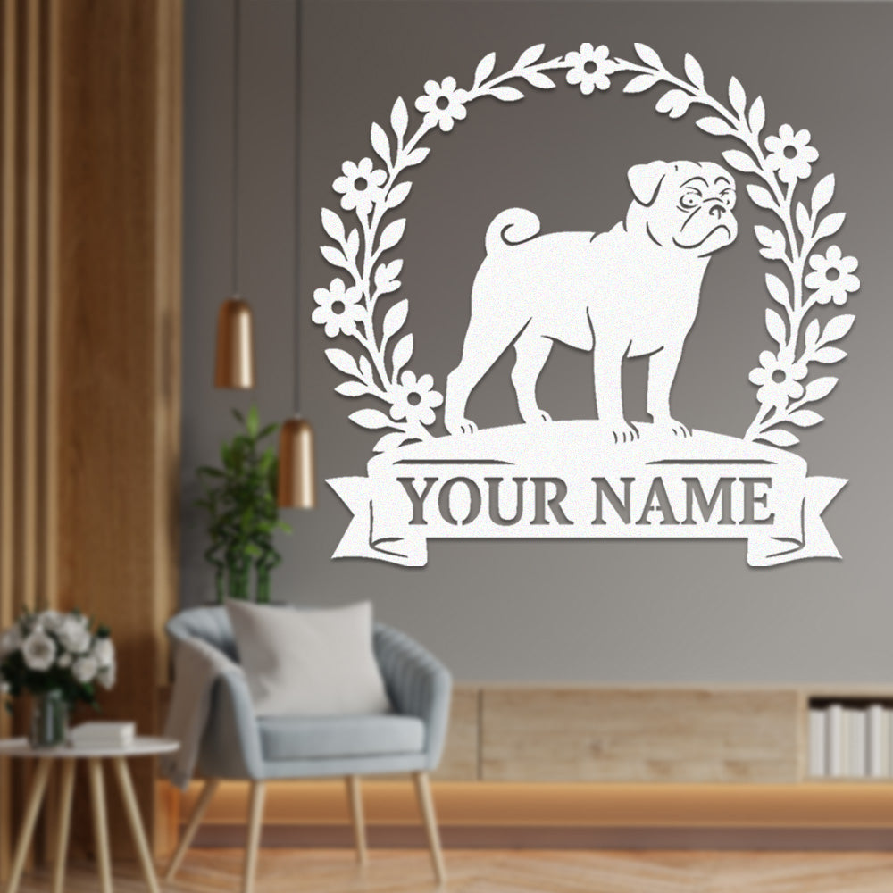 Pug Wreath Metal Wall Art Dog Lover Personalized Memorial Metal Sign