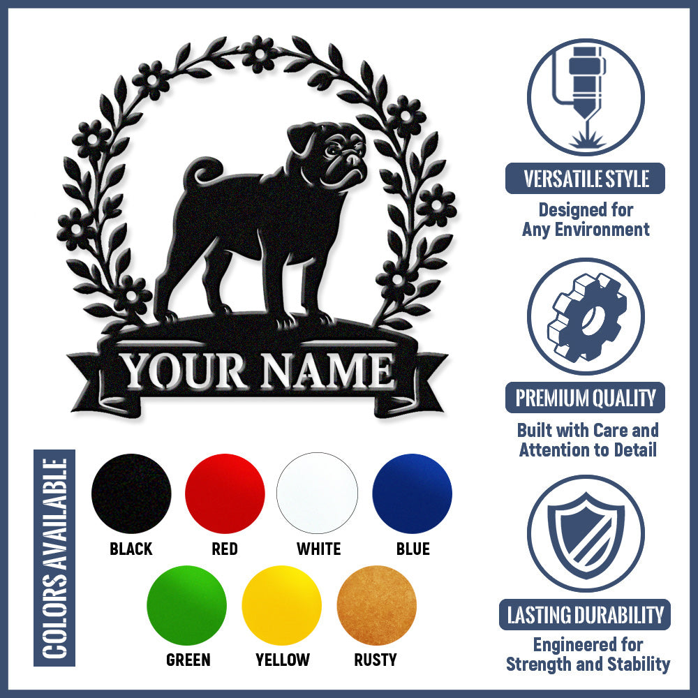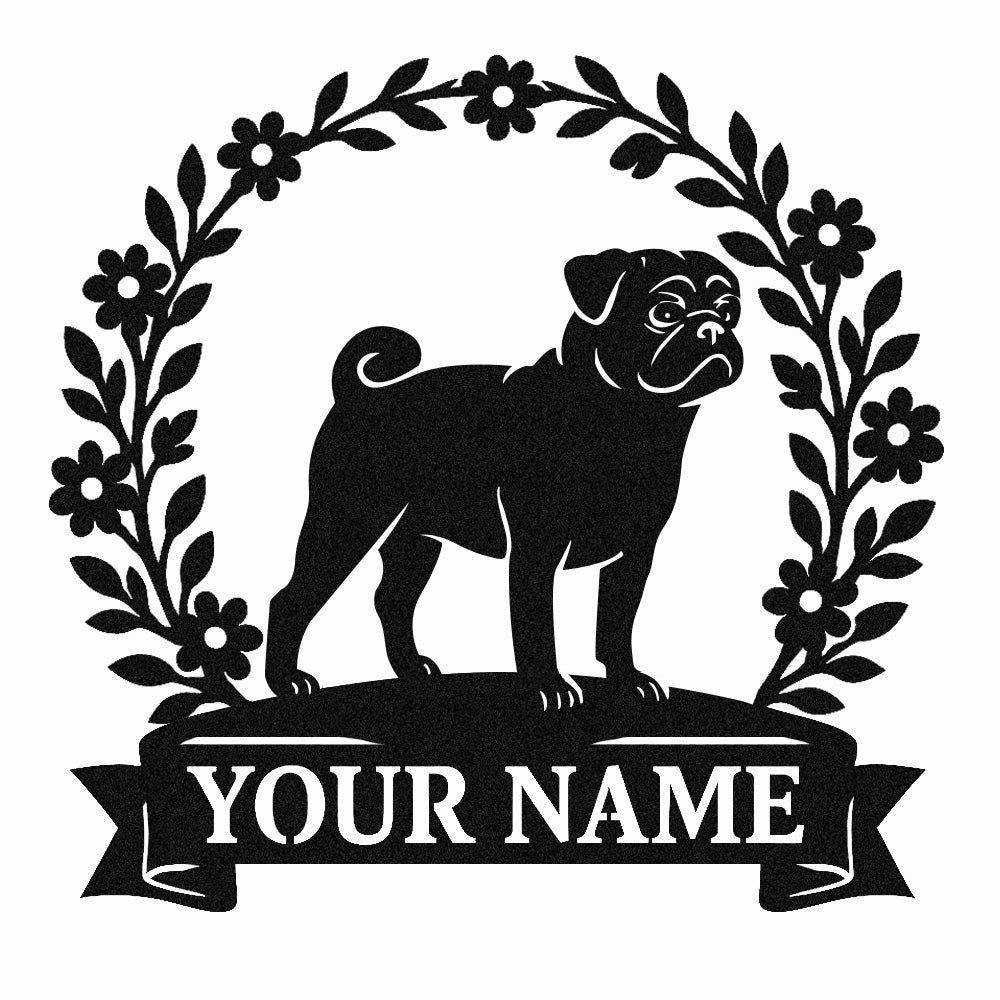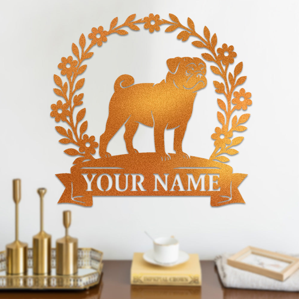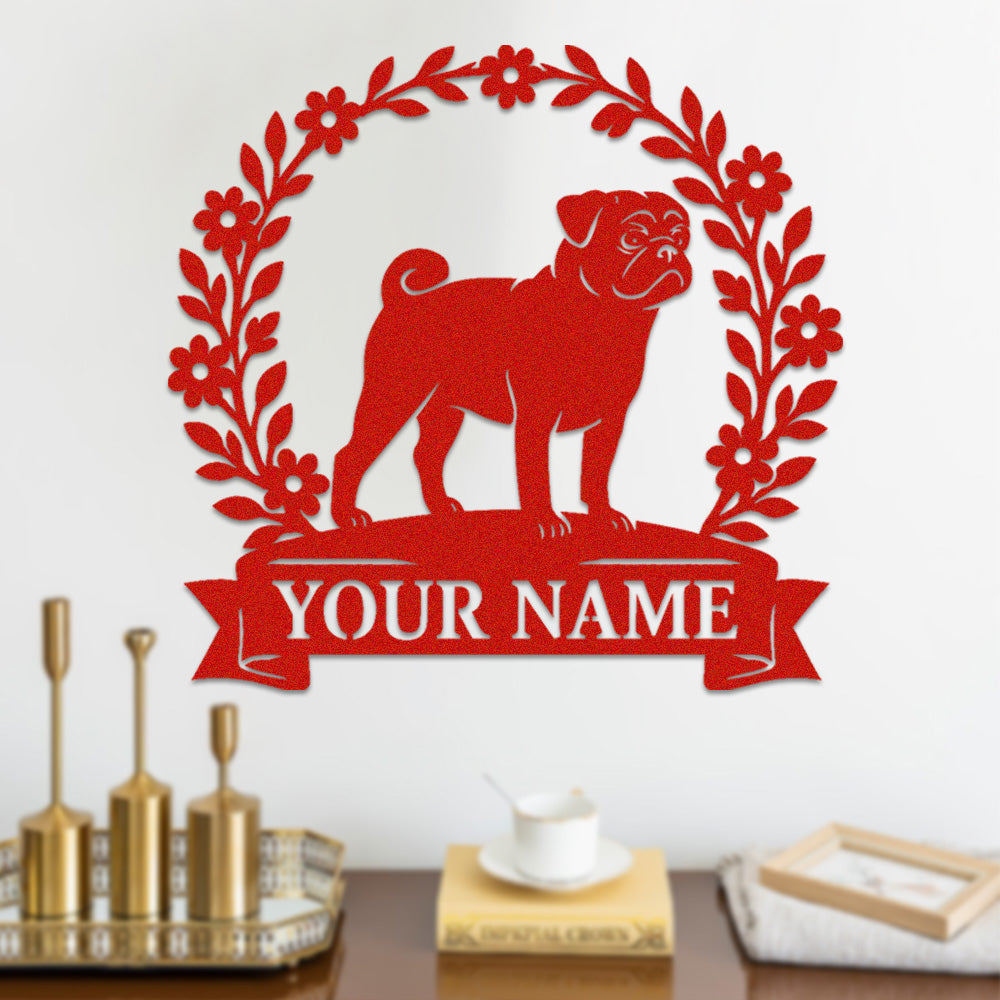 Pug Wreath Metal Wall Art Dog Lover Personalized Memorial Metal Sign