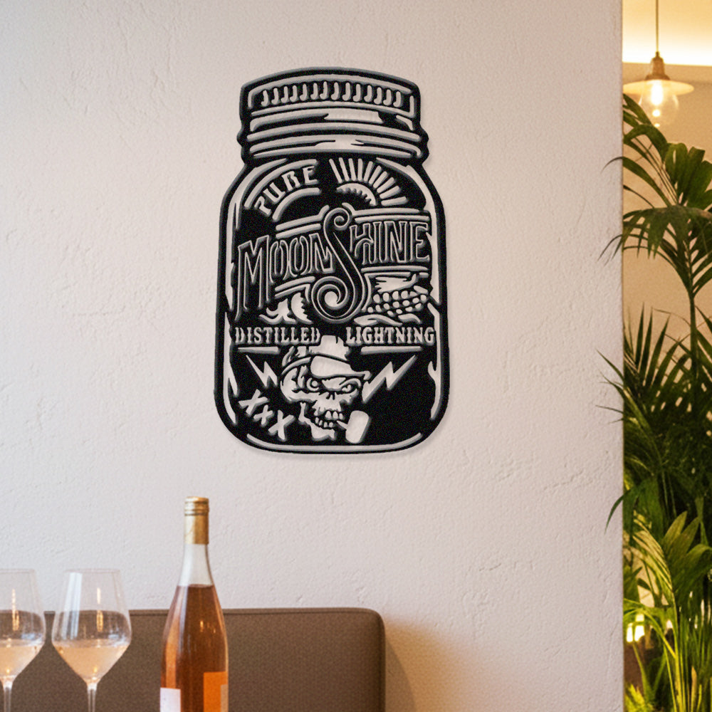 Pure Moonshine Metal Bottle Wall Art - Distilled Lightning Iron Decor